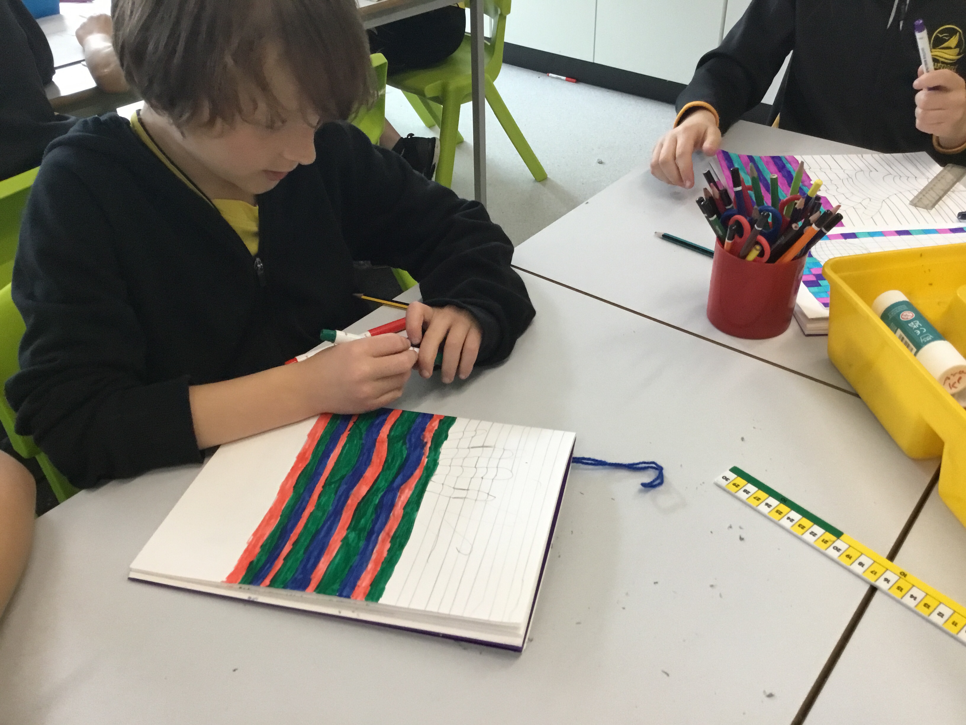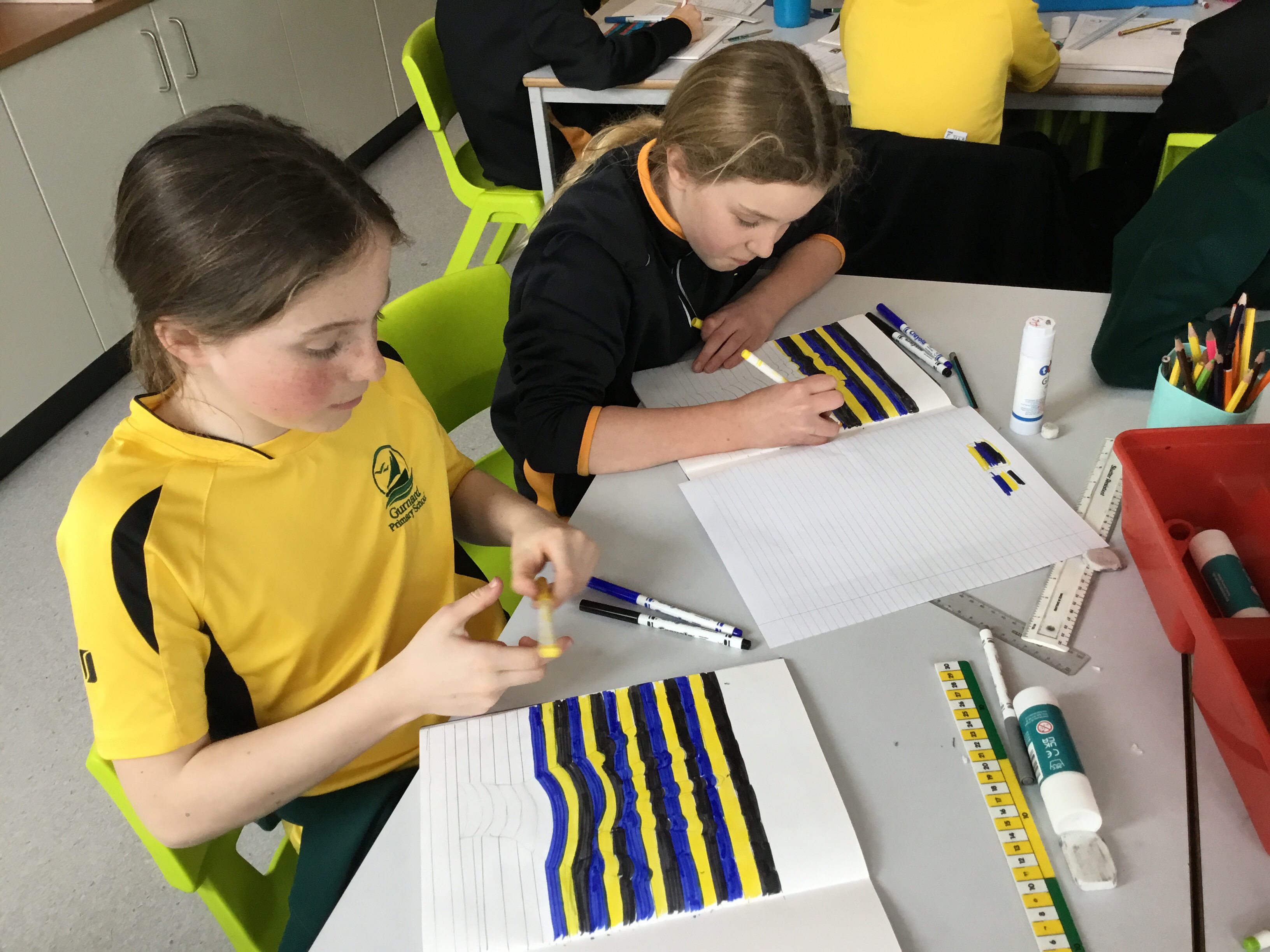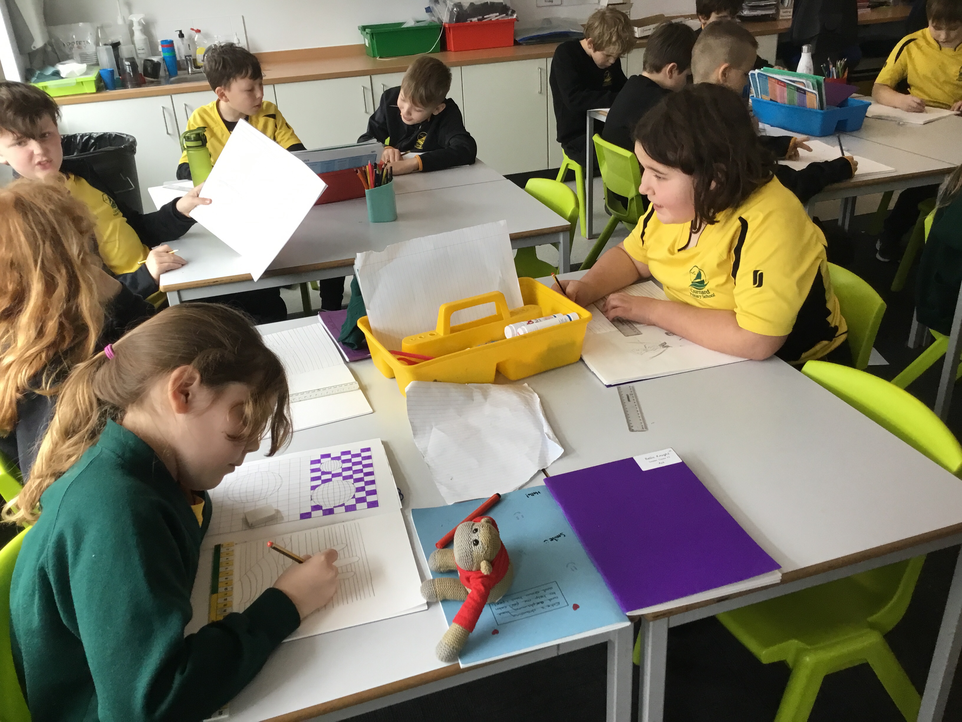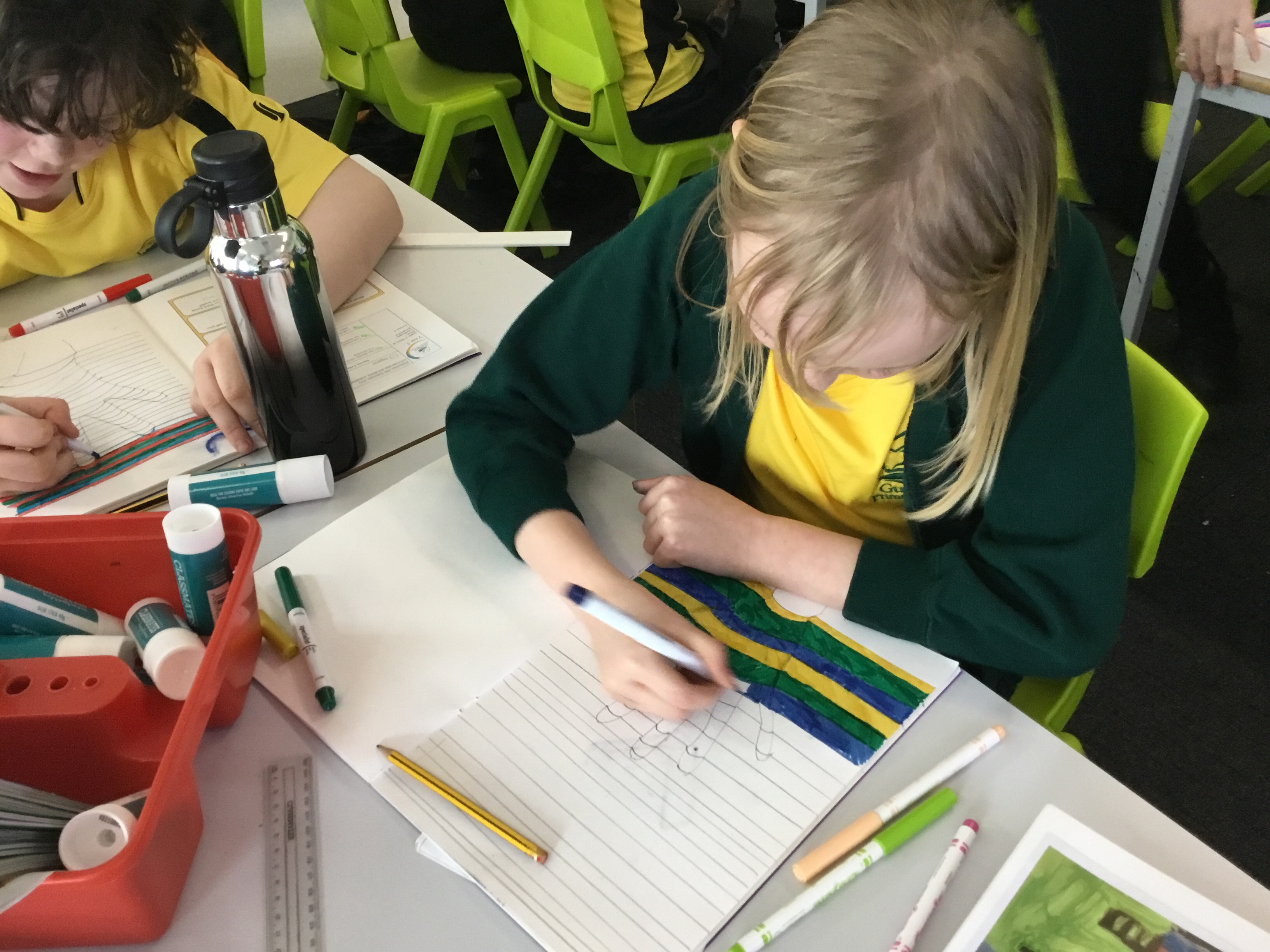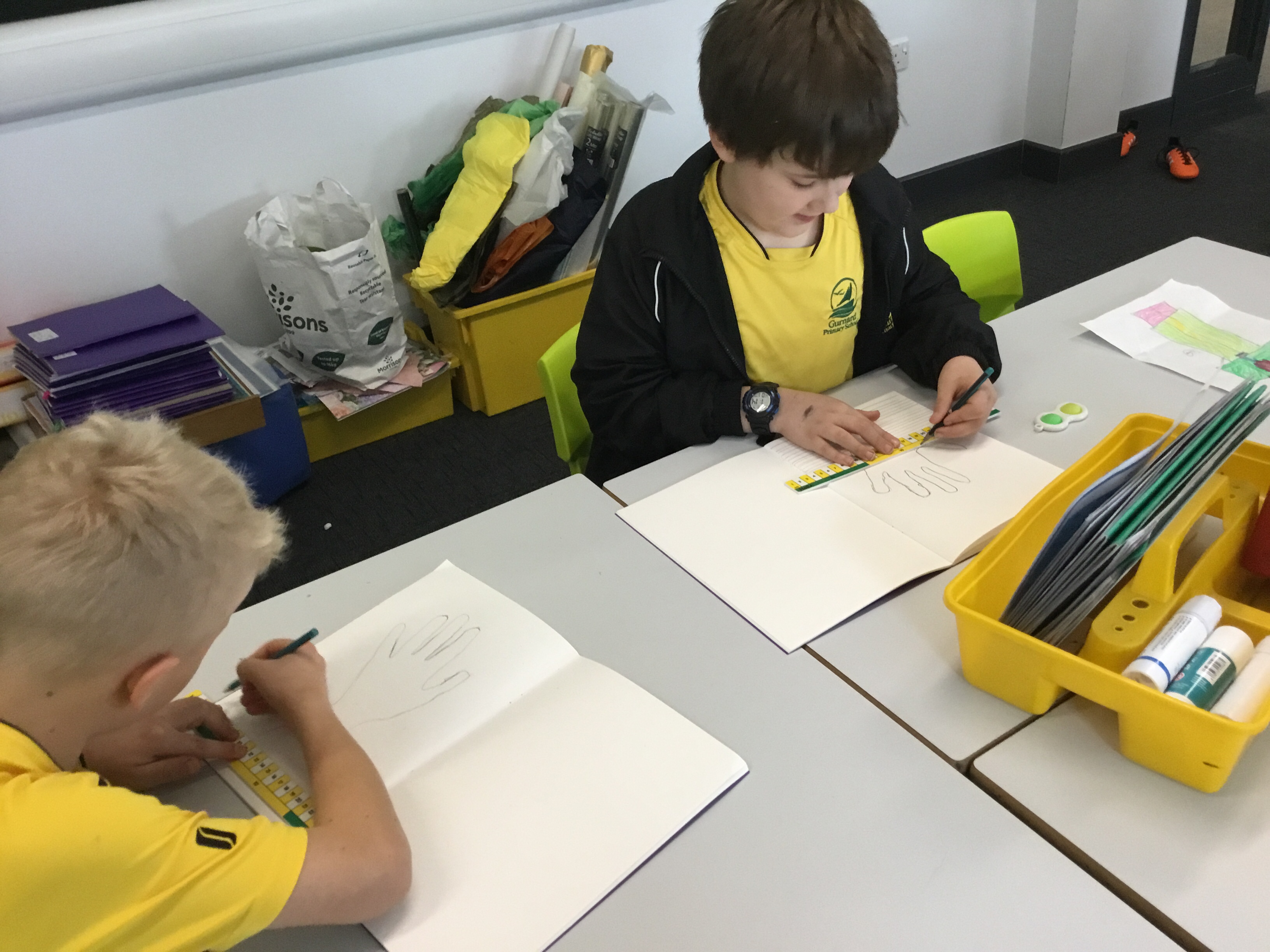 Year 5 contained with creating their own illusion artwork, but this time they traced around their hand, drew in lines and added colour to create their illusions. They are starting to take shape nicely.