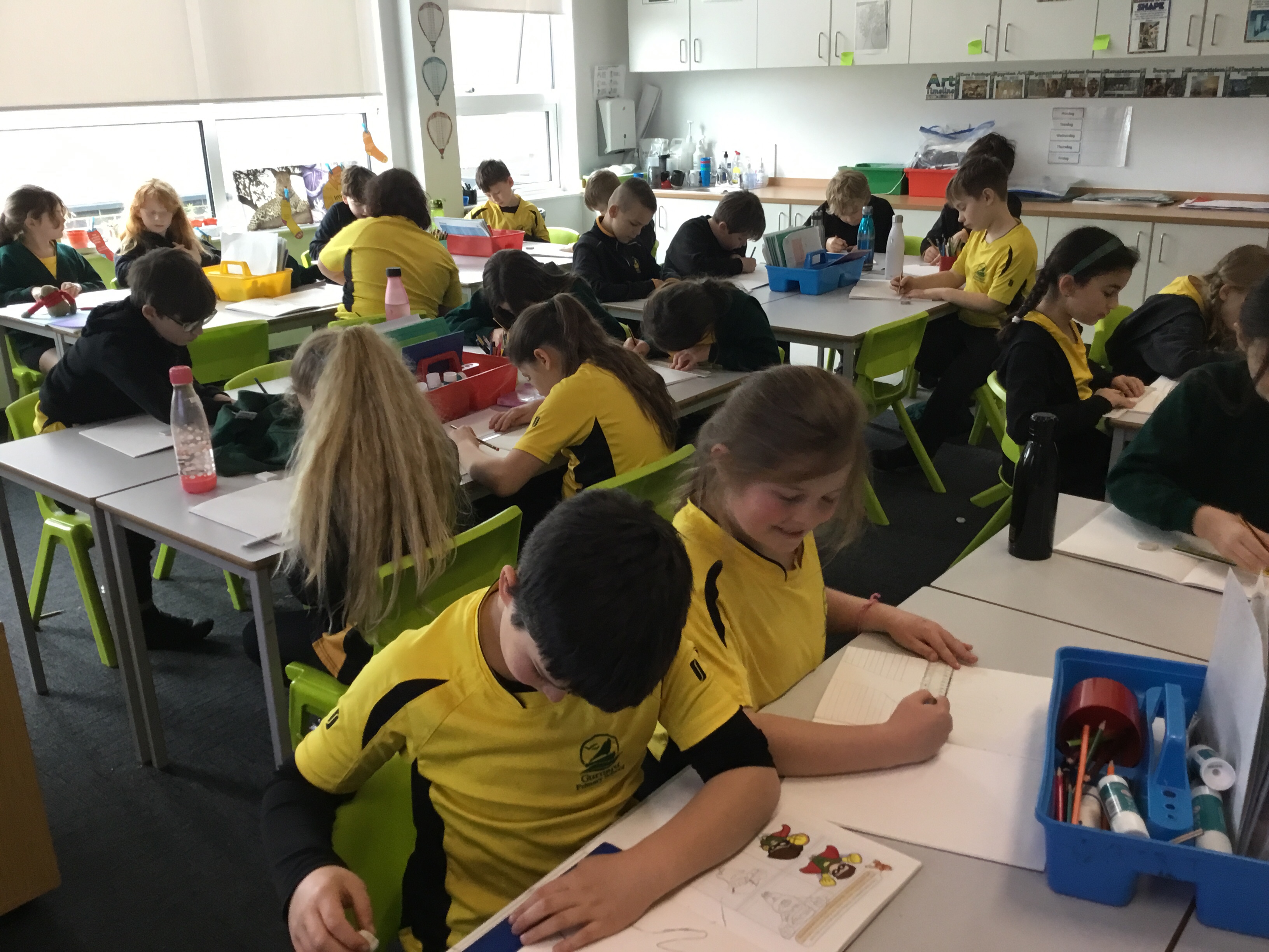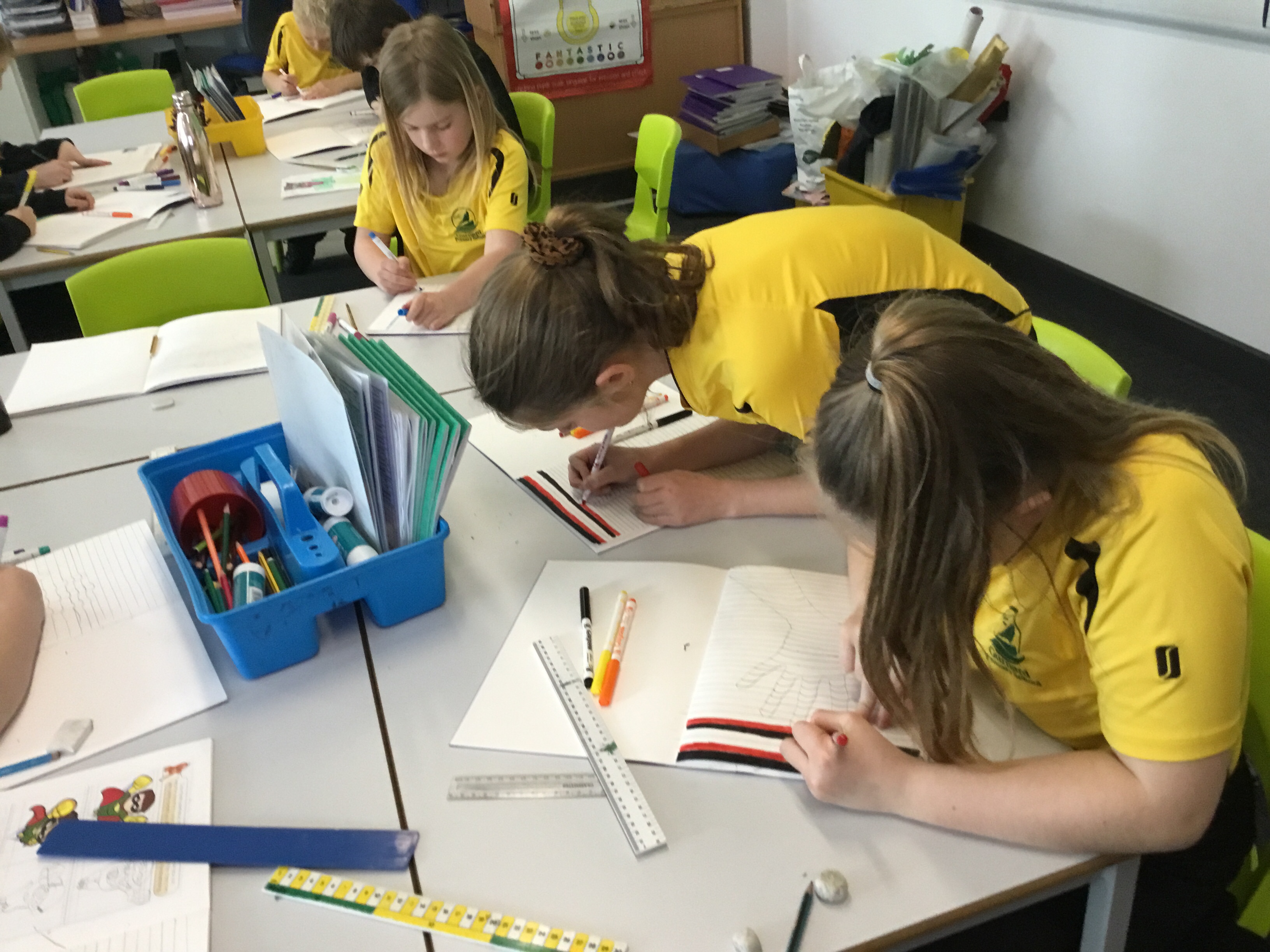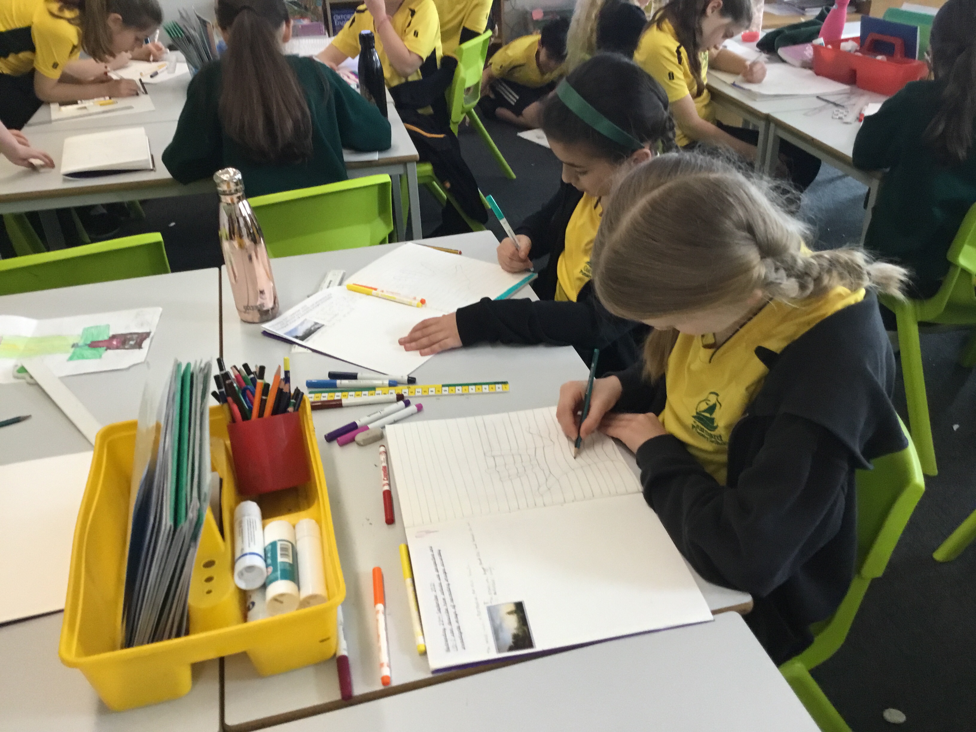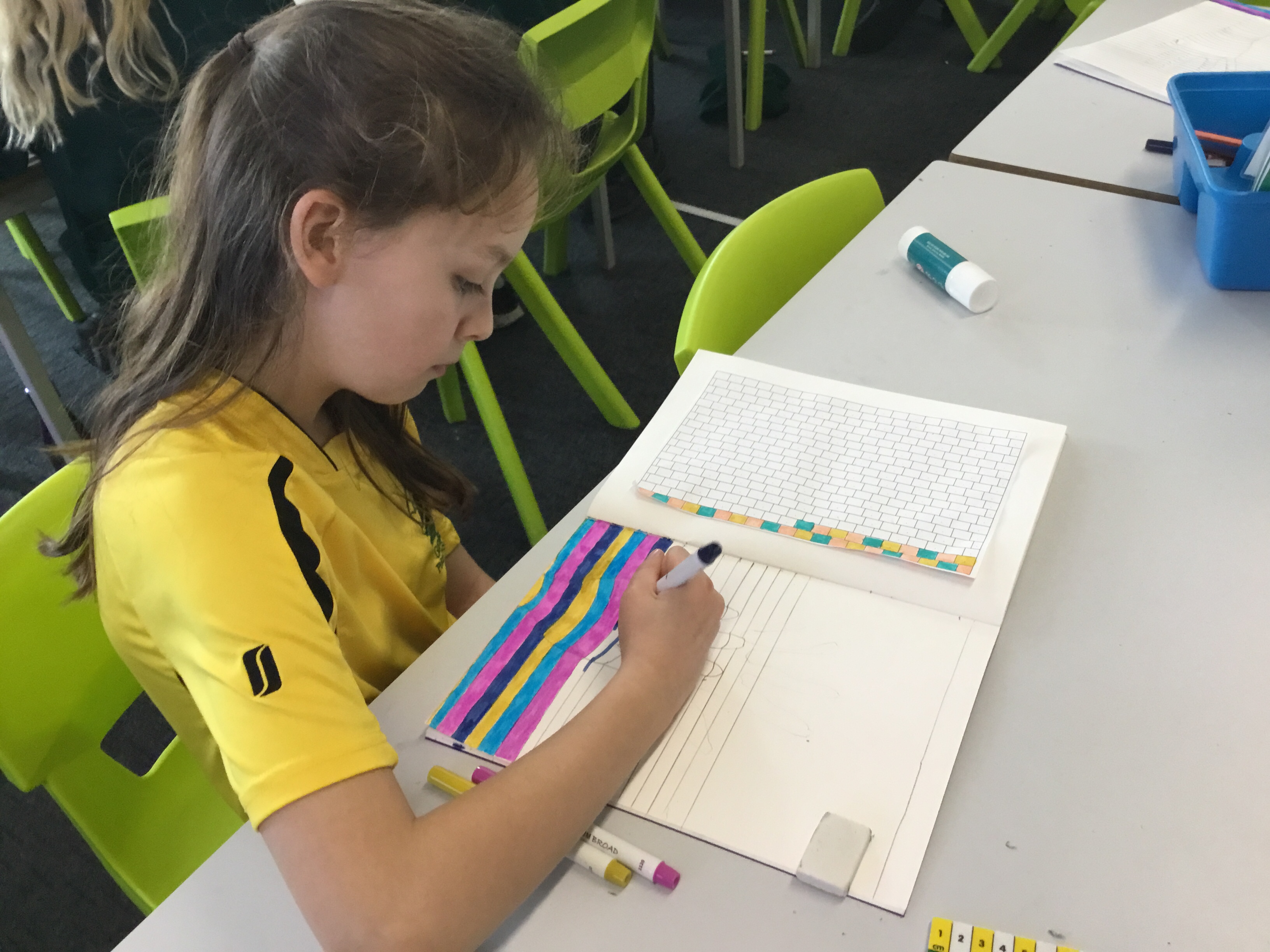 Year 5 contained with creating their own illusion artwork, but this time they traced around their hand, drew in lines and added colour to create their illusions. They are starting to take shape nicely.
