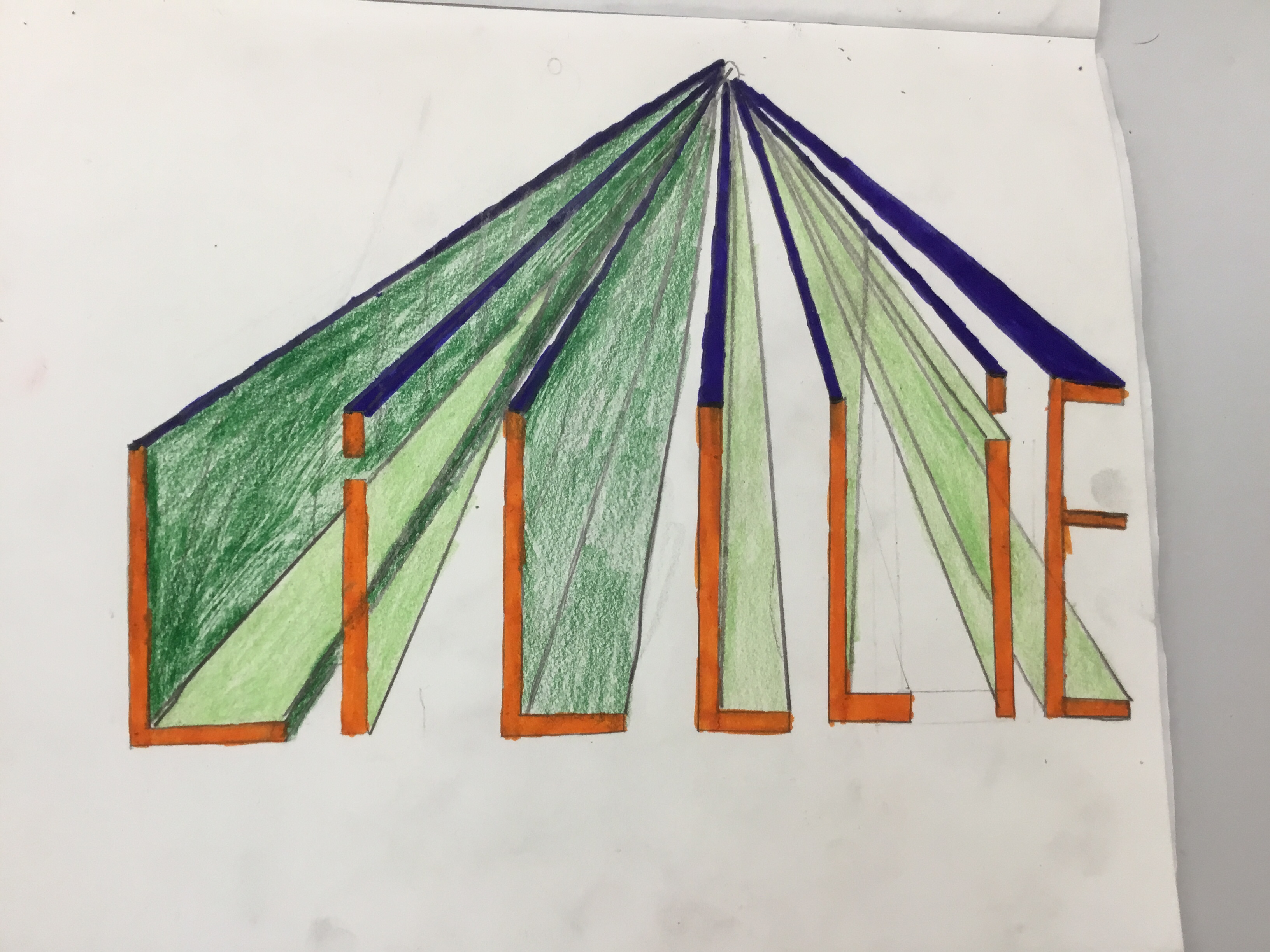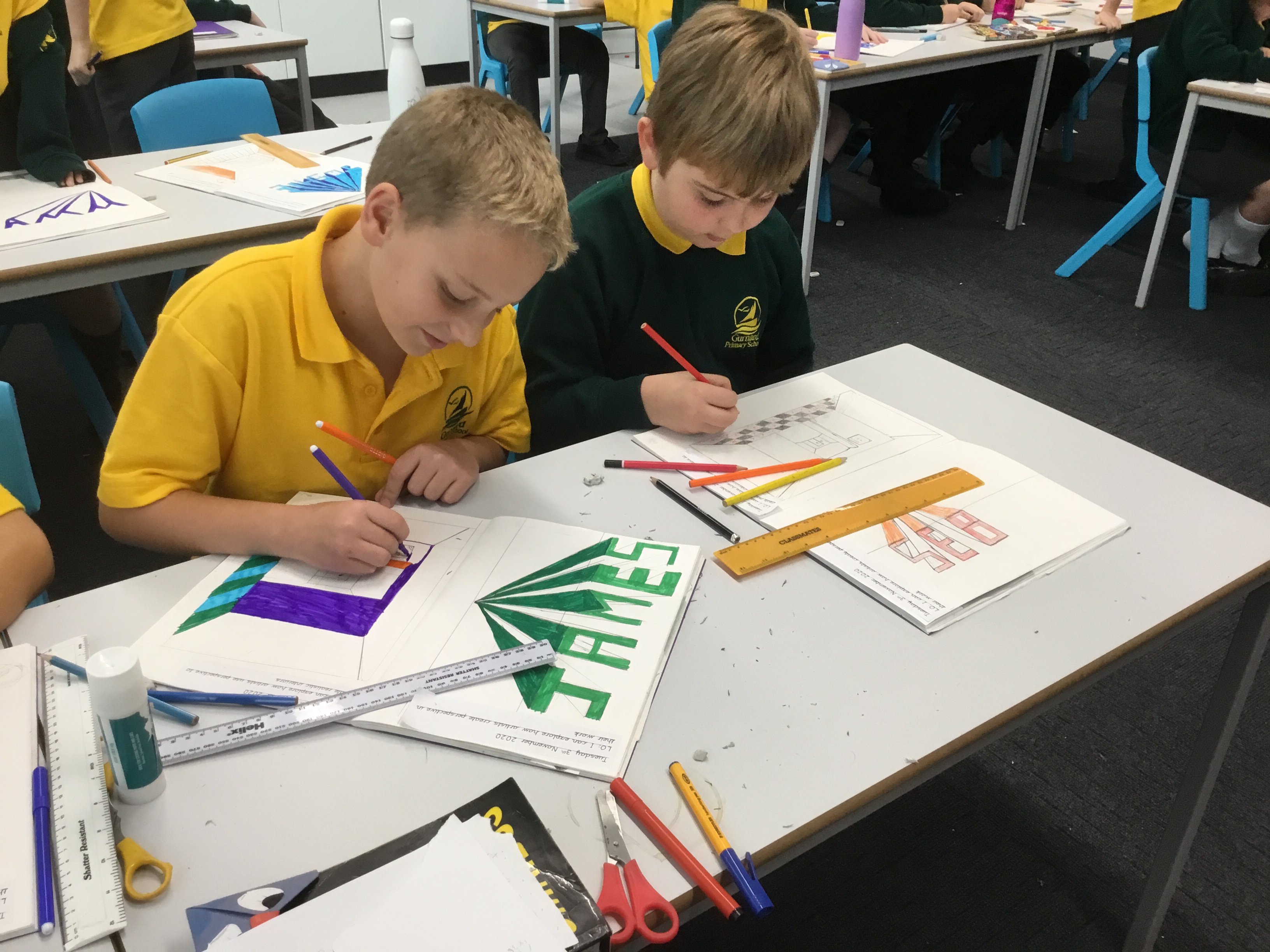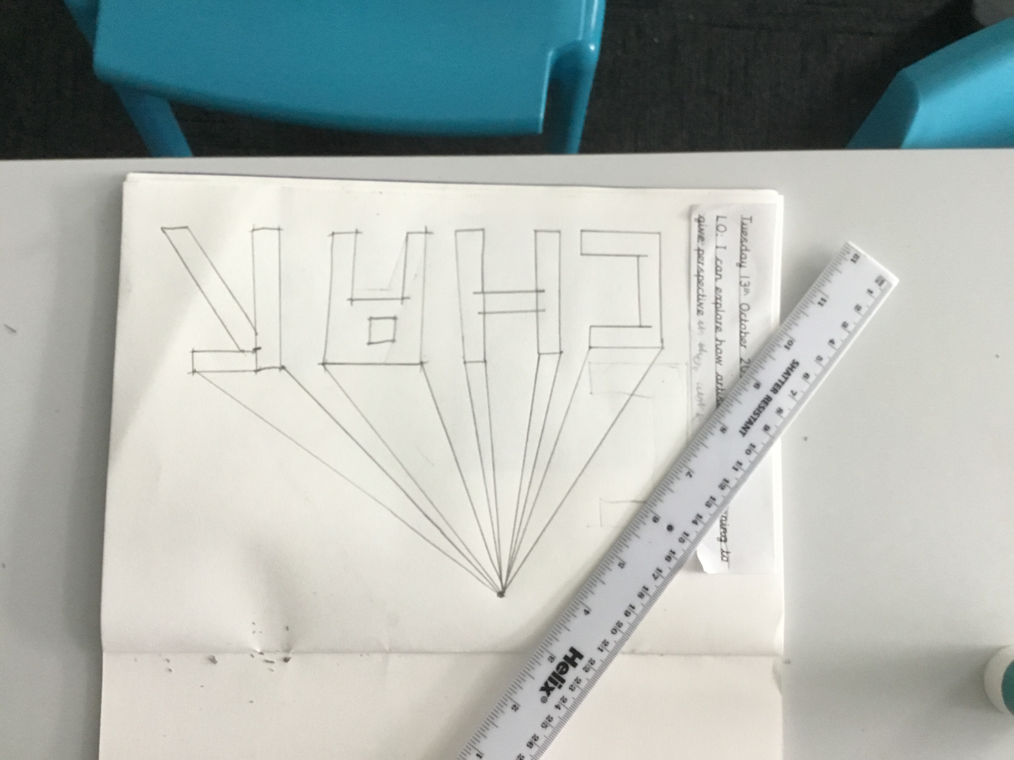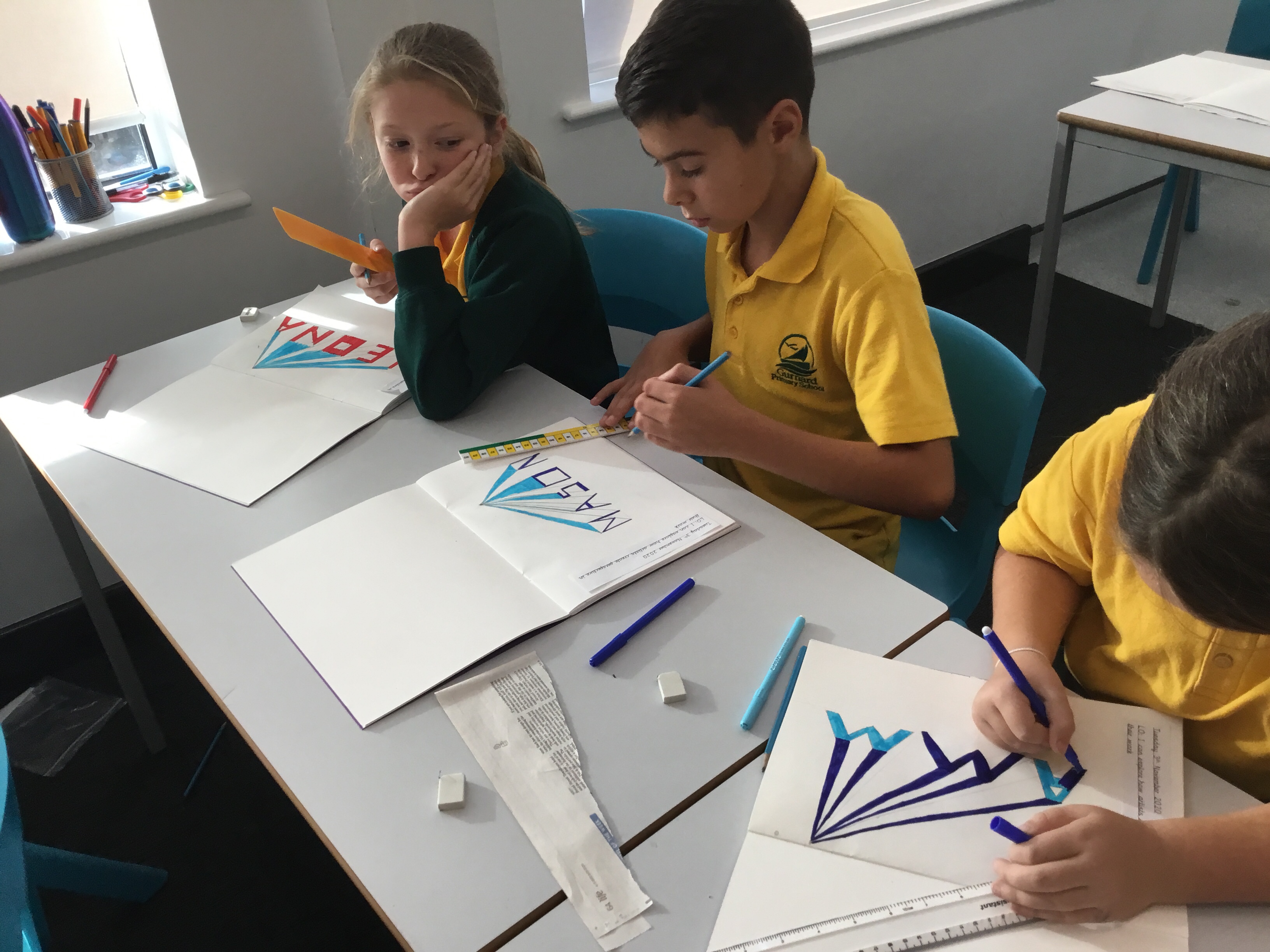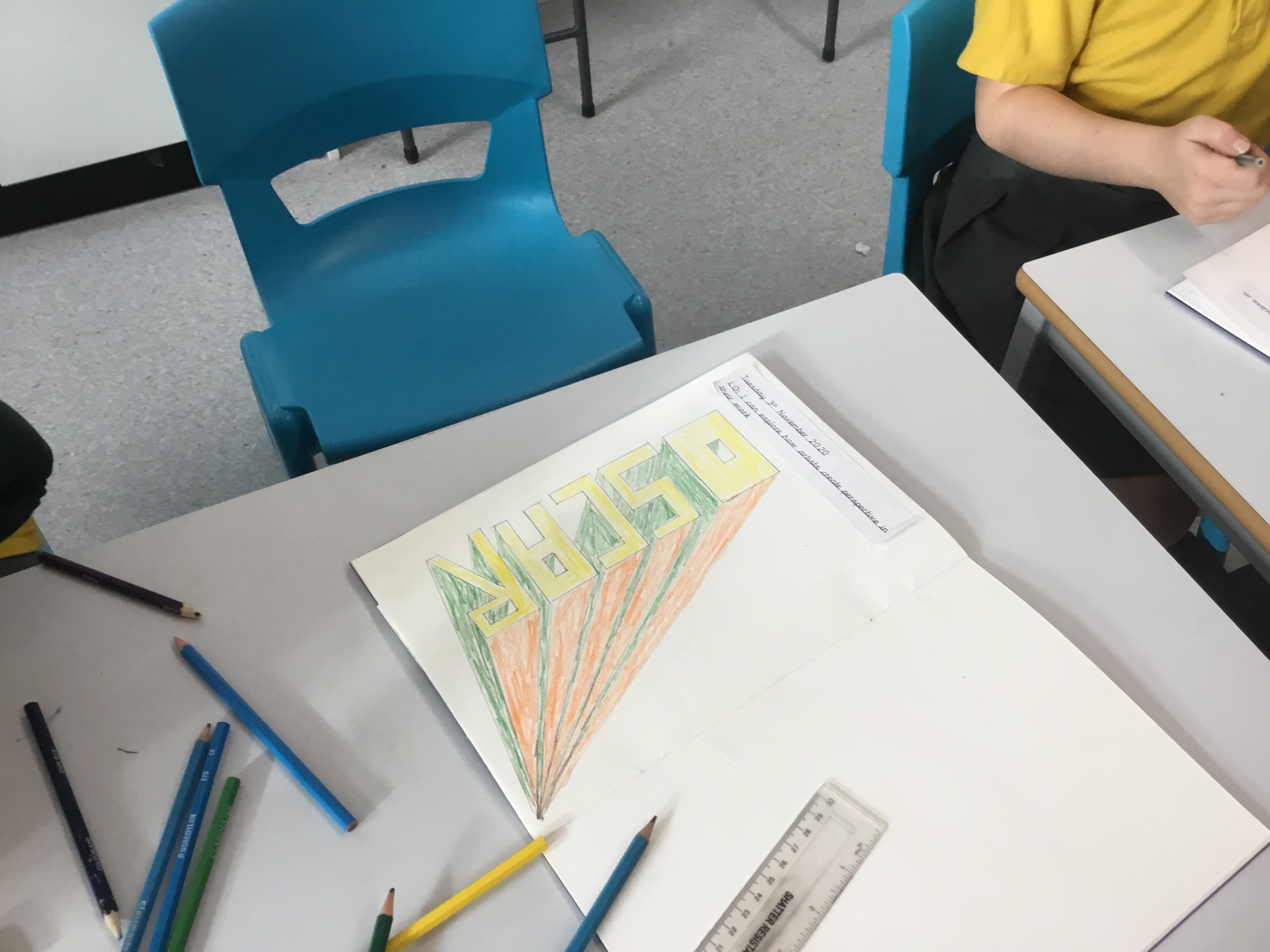 Year 5 continued to explore perspective and how artists use perspective by using vanishing points to create a 3D version of their names. Some fabulous work.