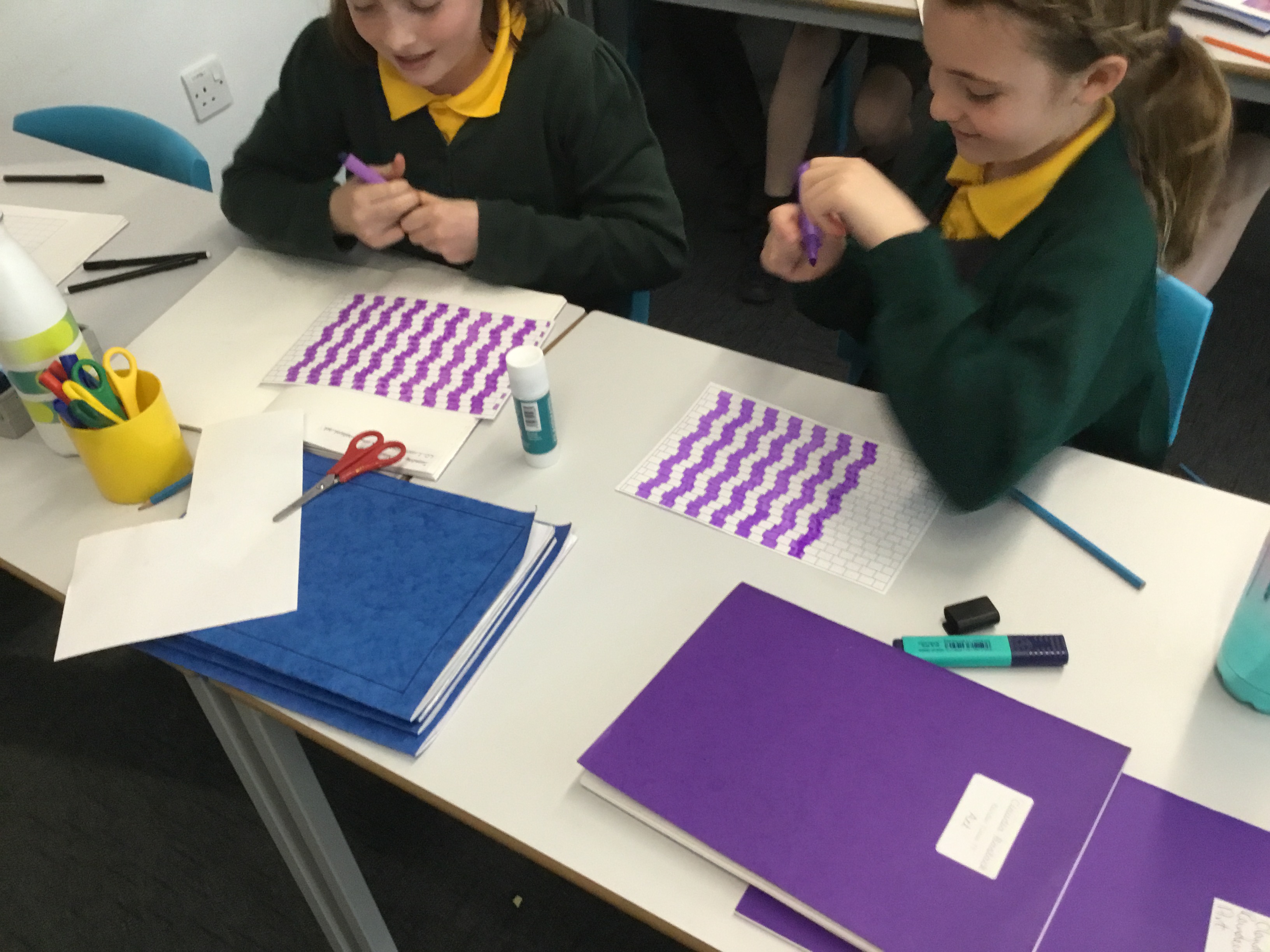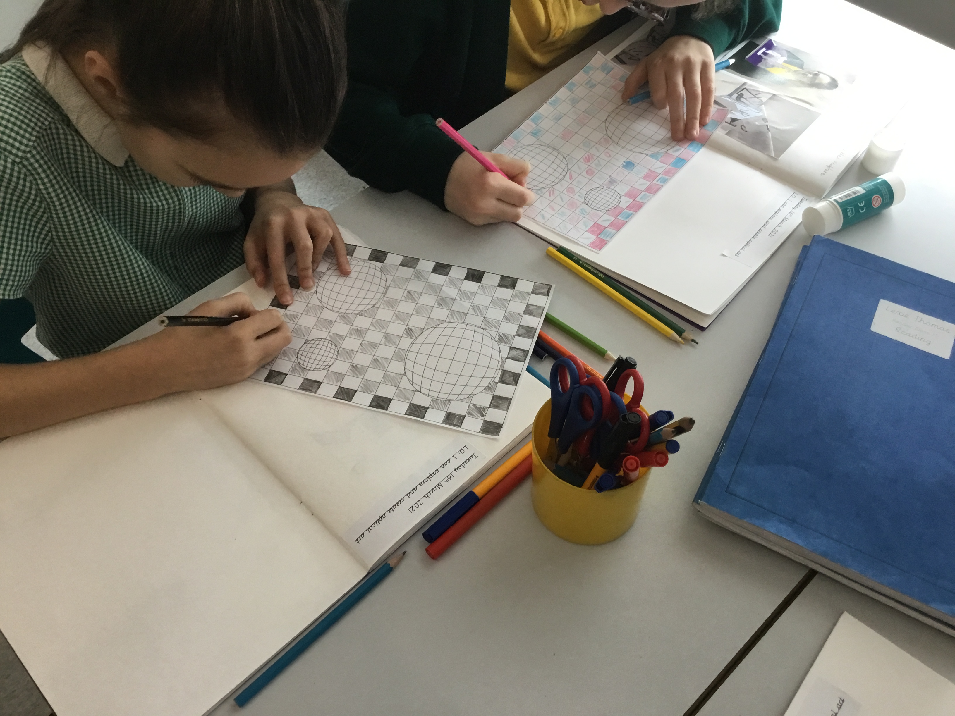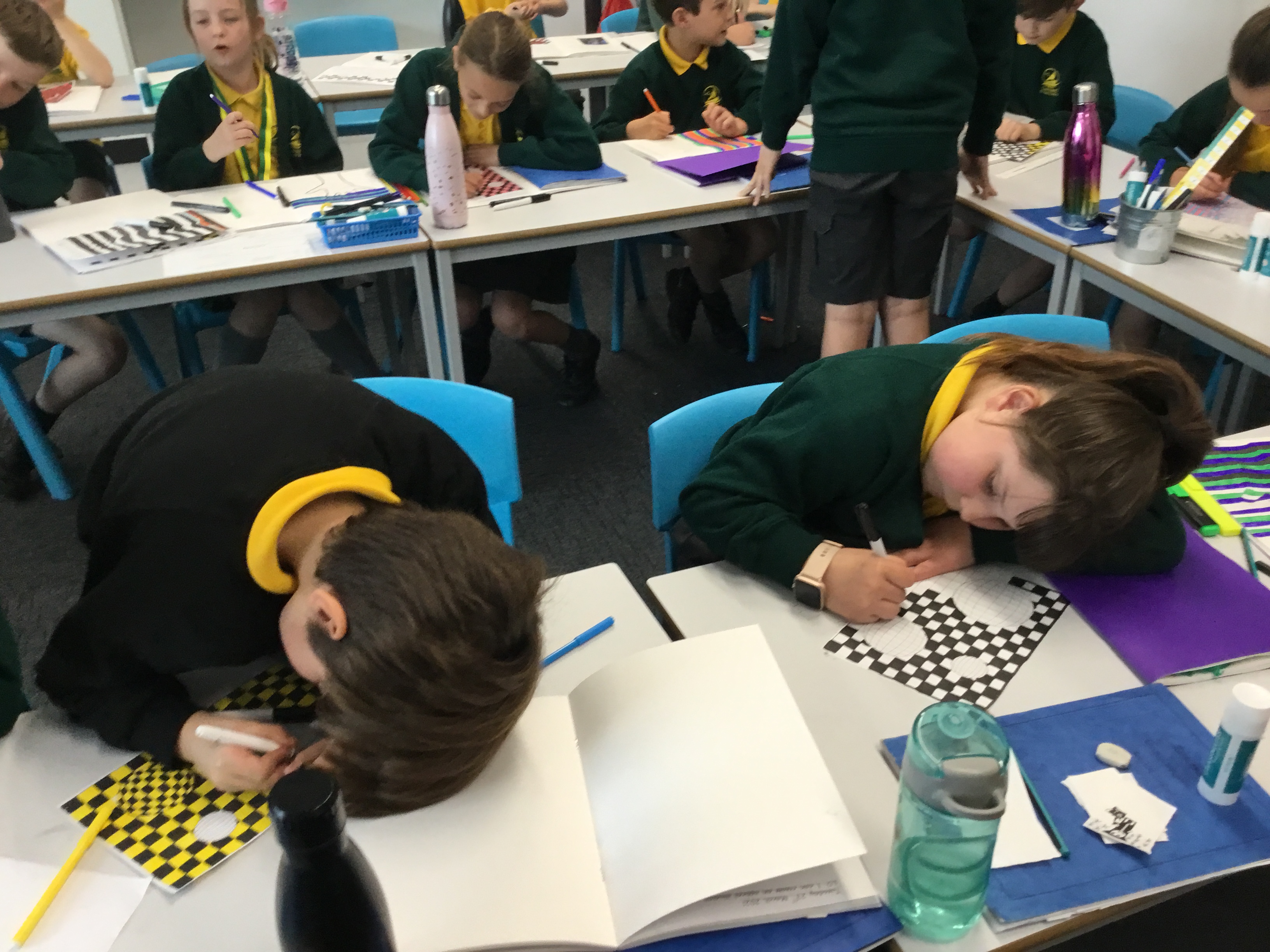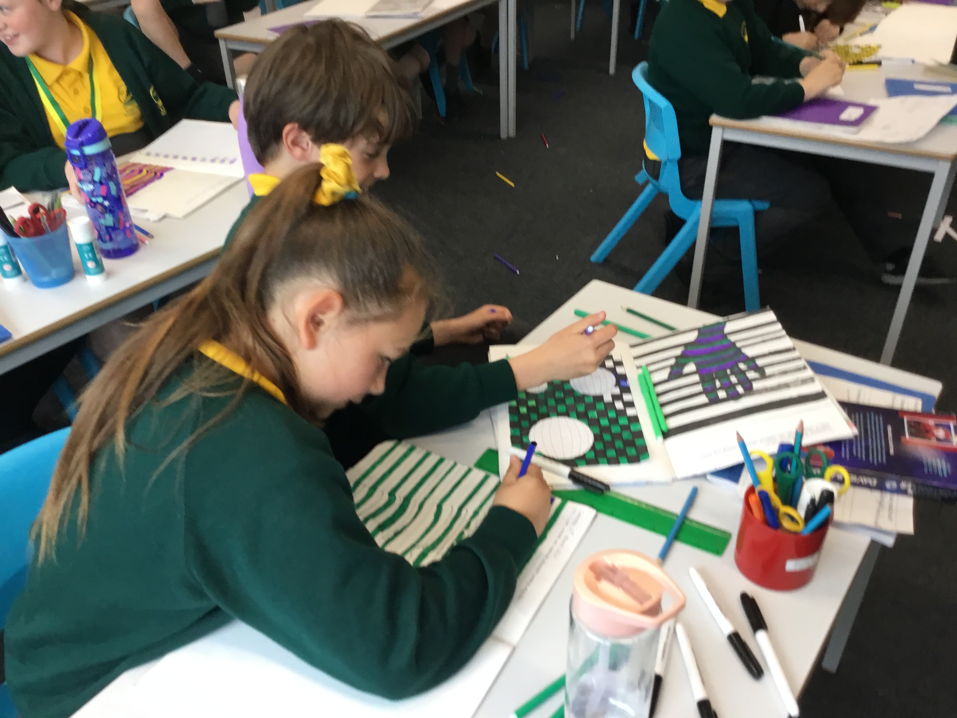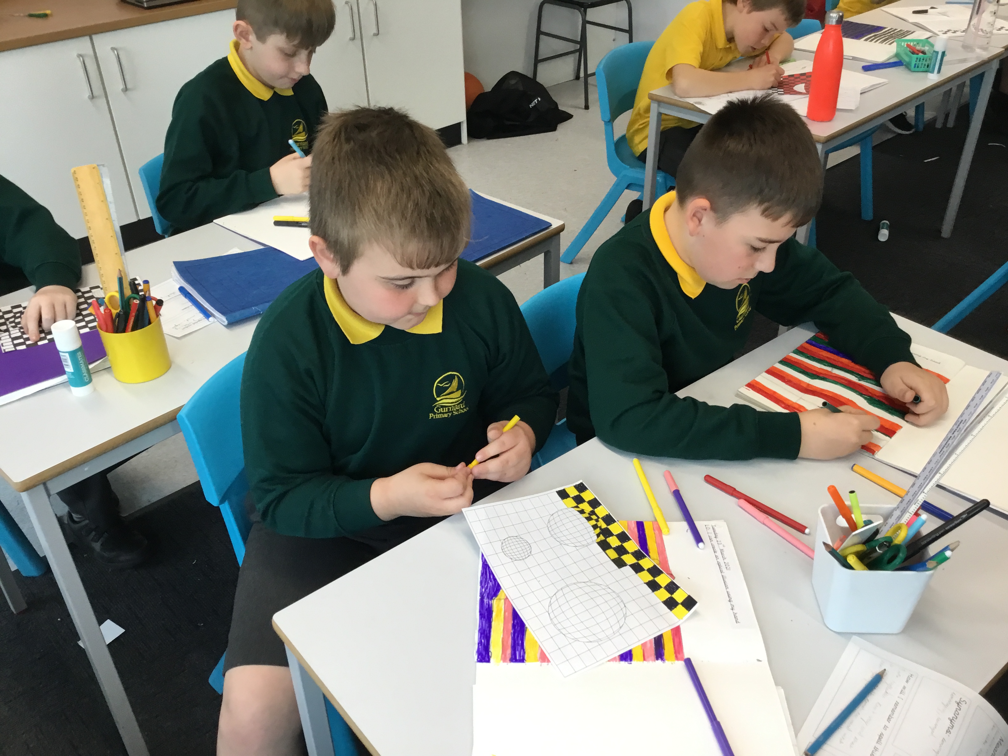 Year 5 enjoyed creating an optical illusion. They chose two different colours, a darker colour and lighter colour to create an effective illusion.