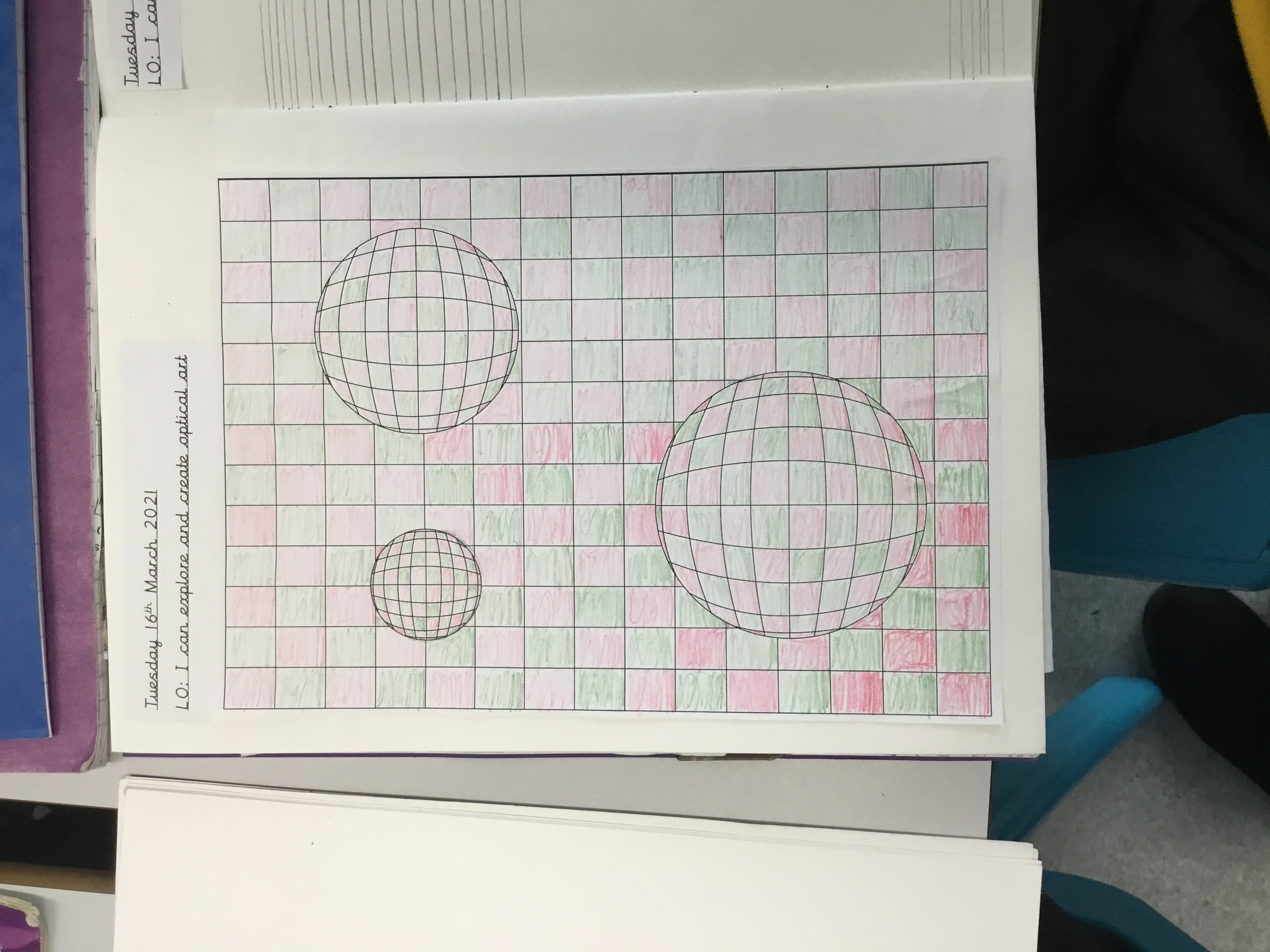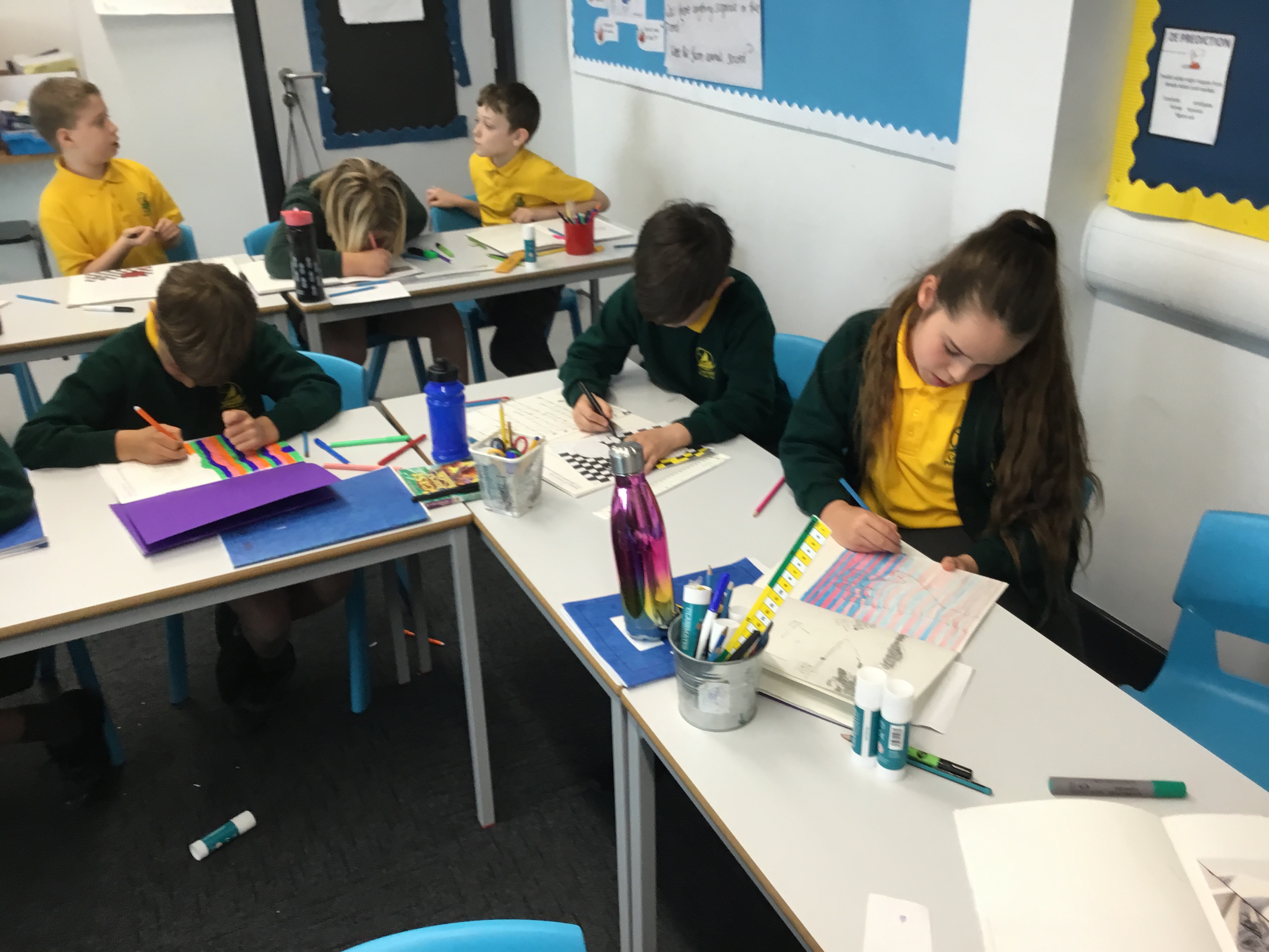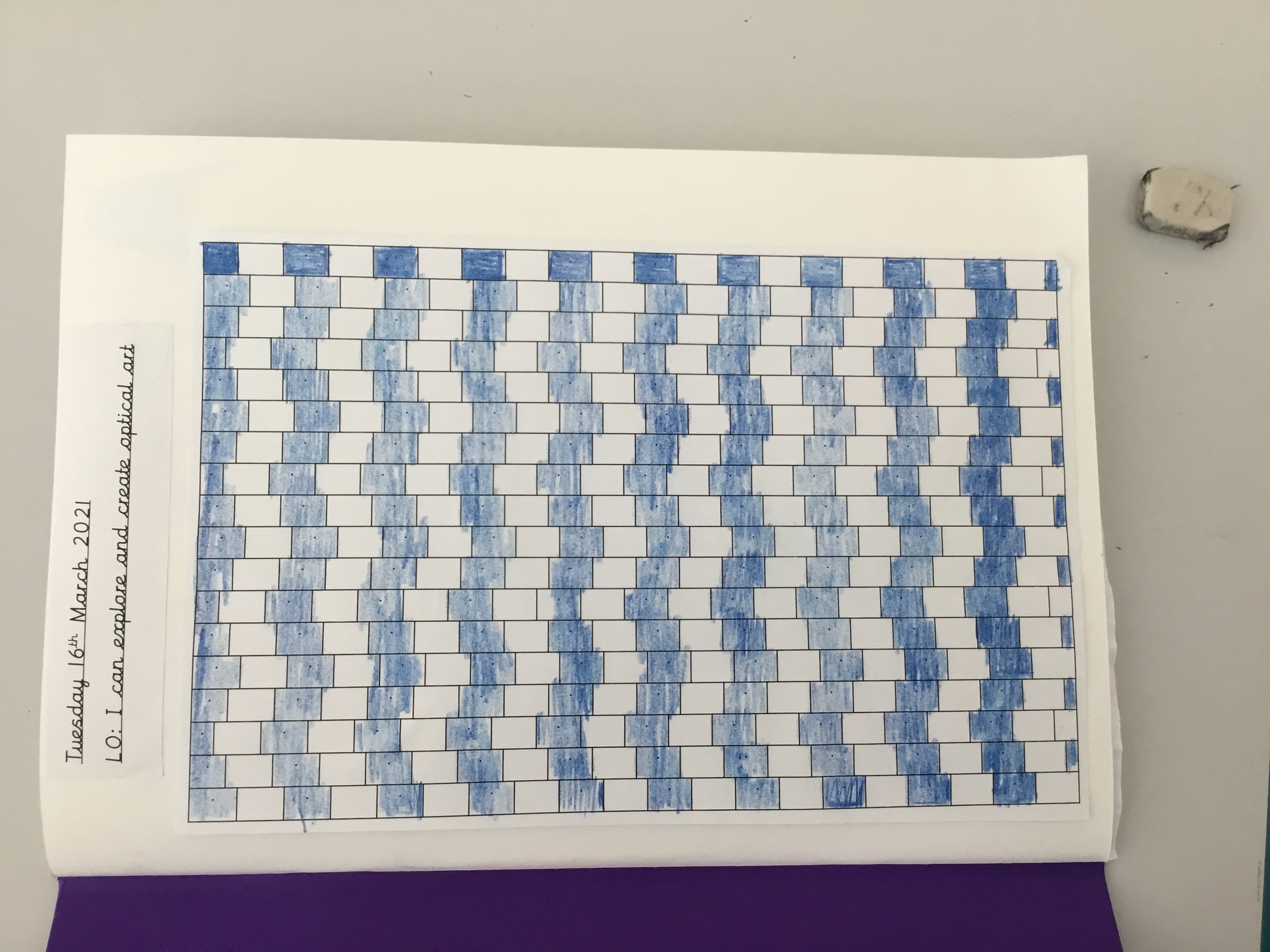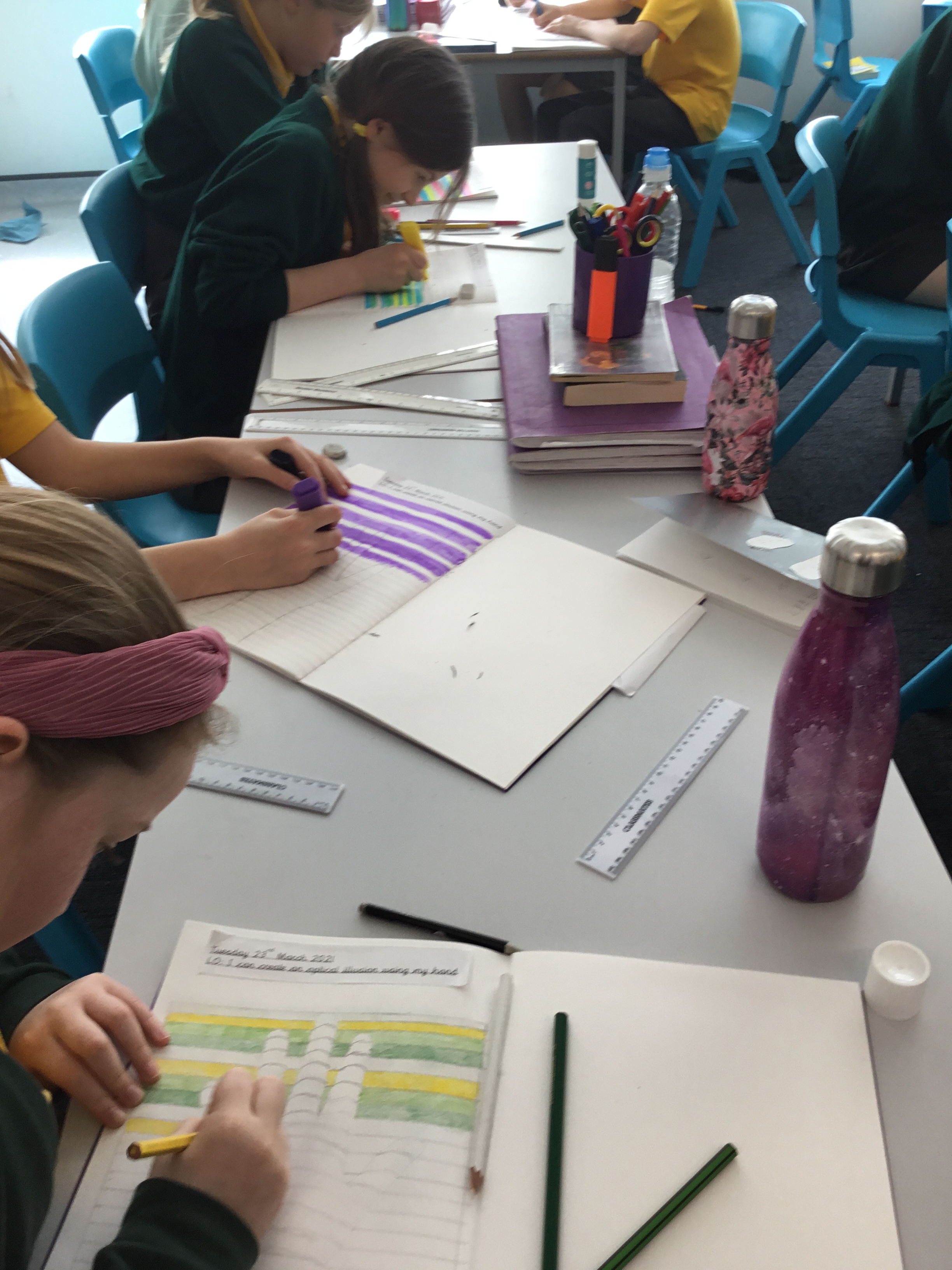 Year 5 enjoyed creating an optical illusion. They chose two different colours, a darker colour and lighter colour to create an effective illusion.