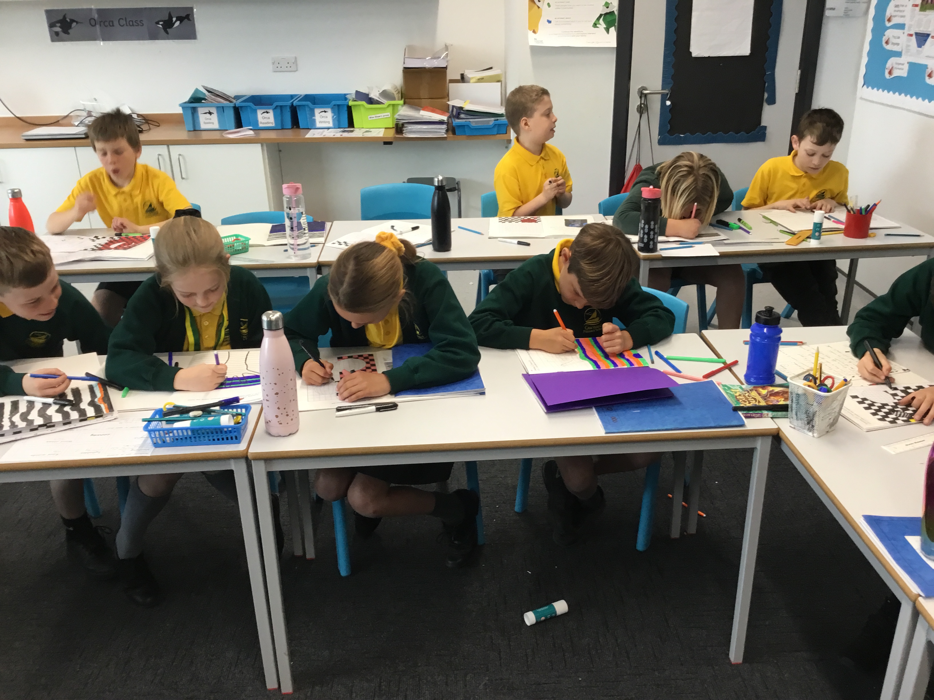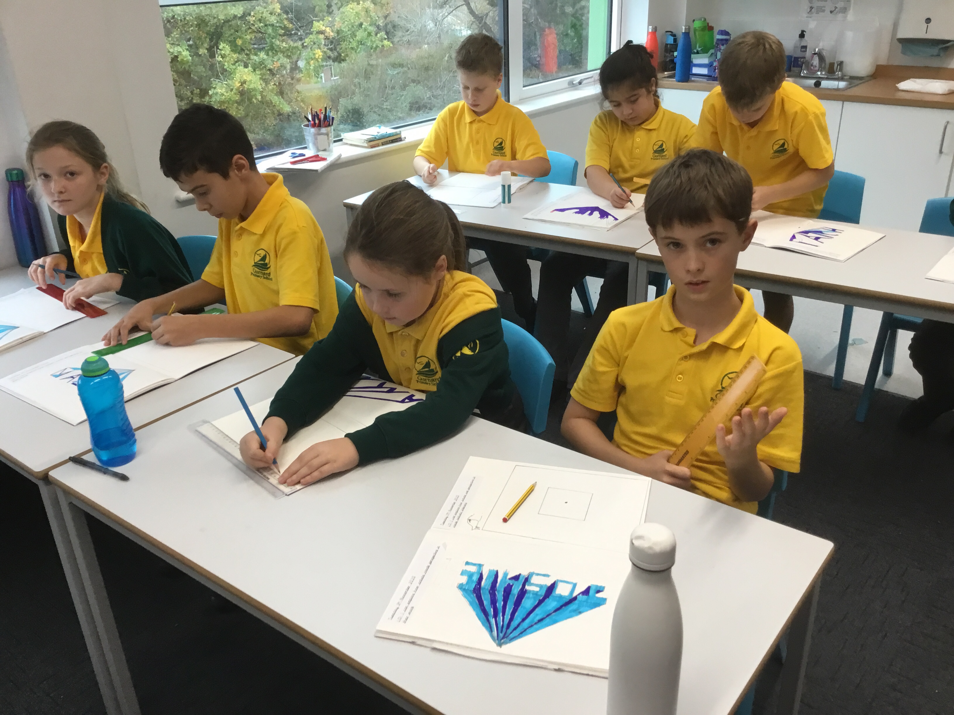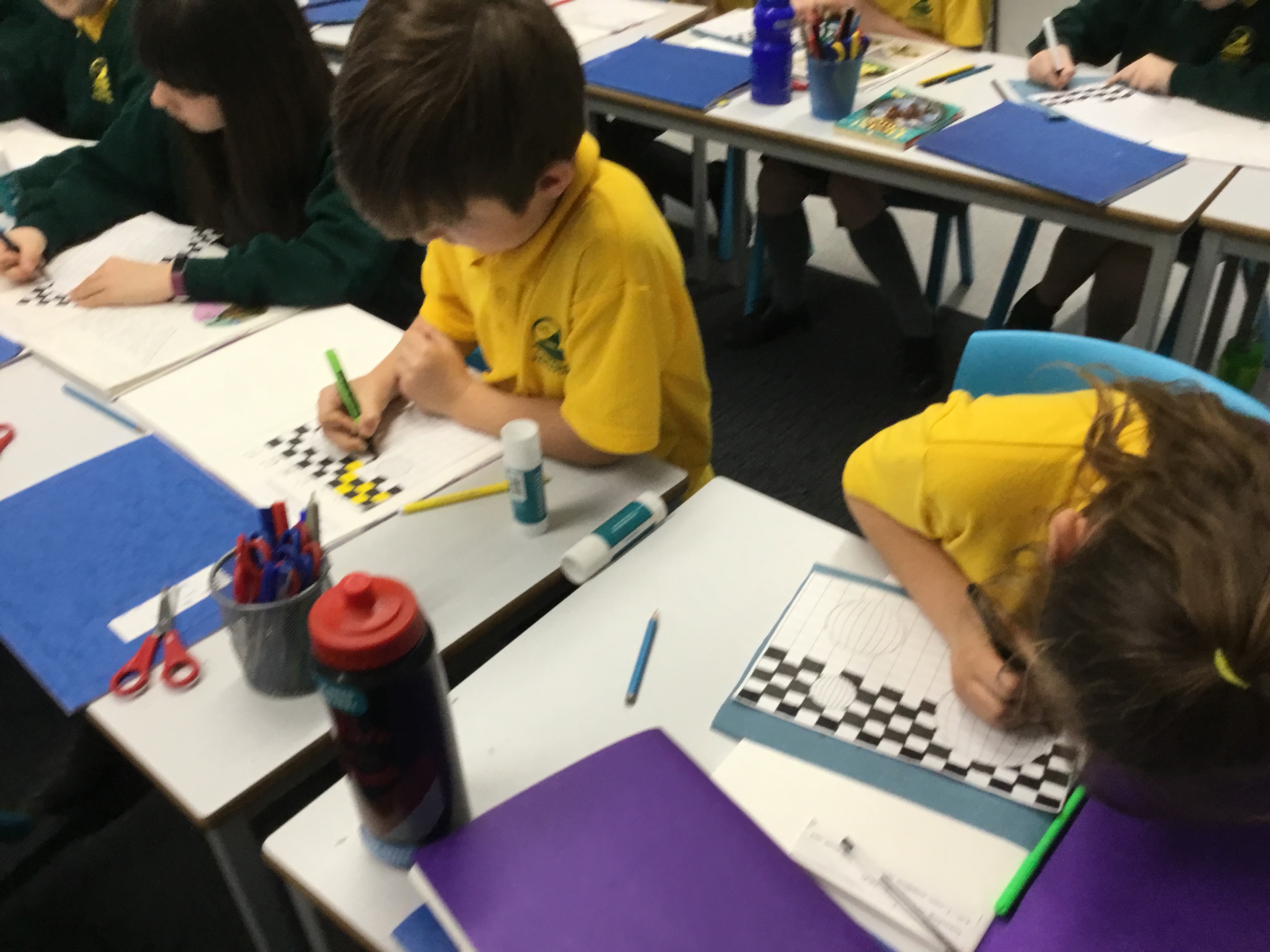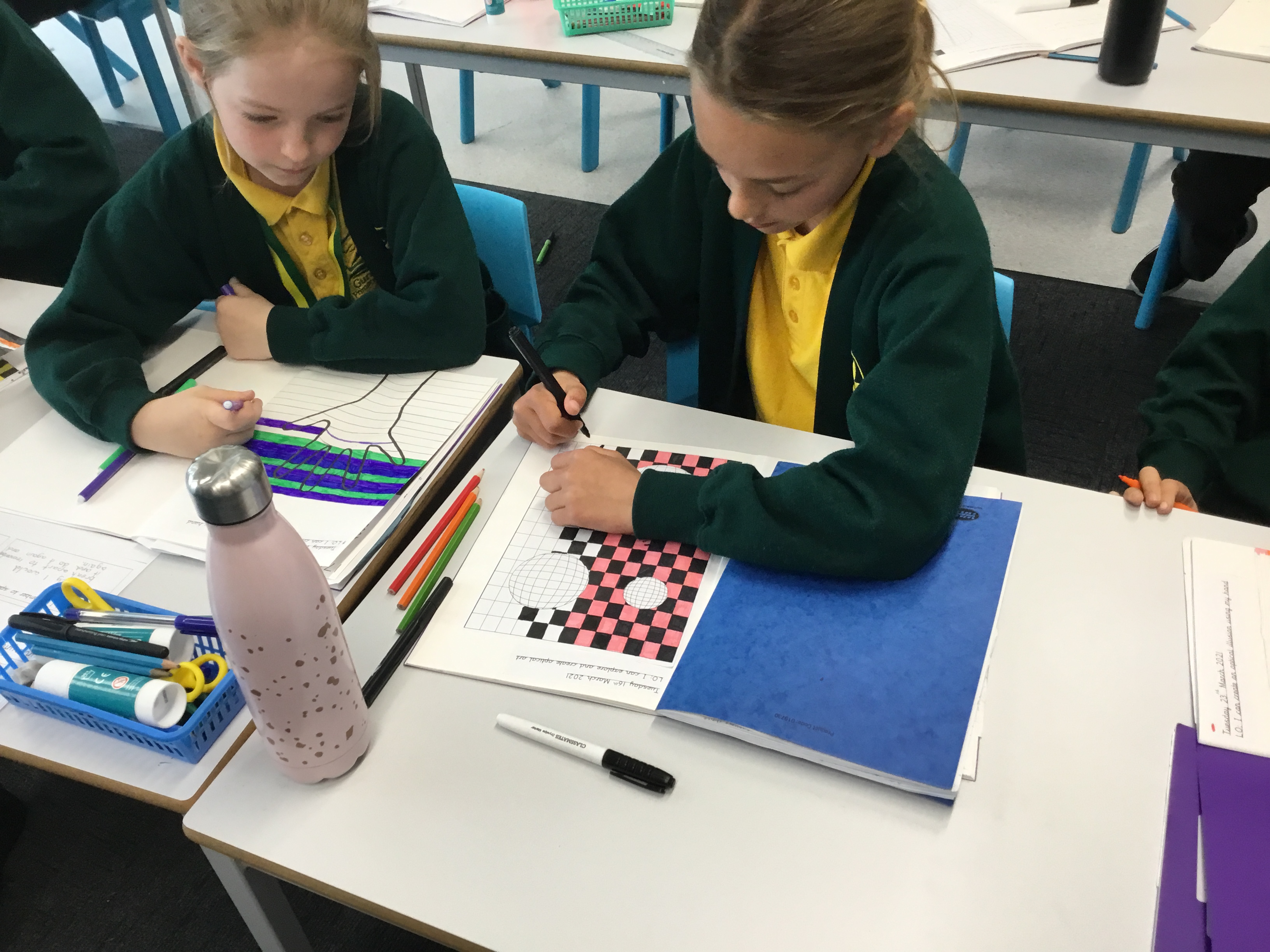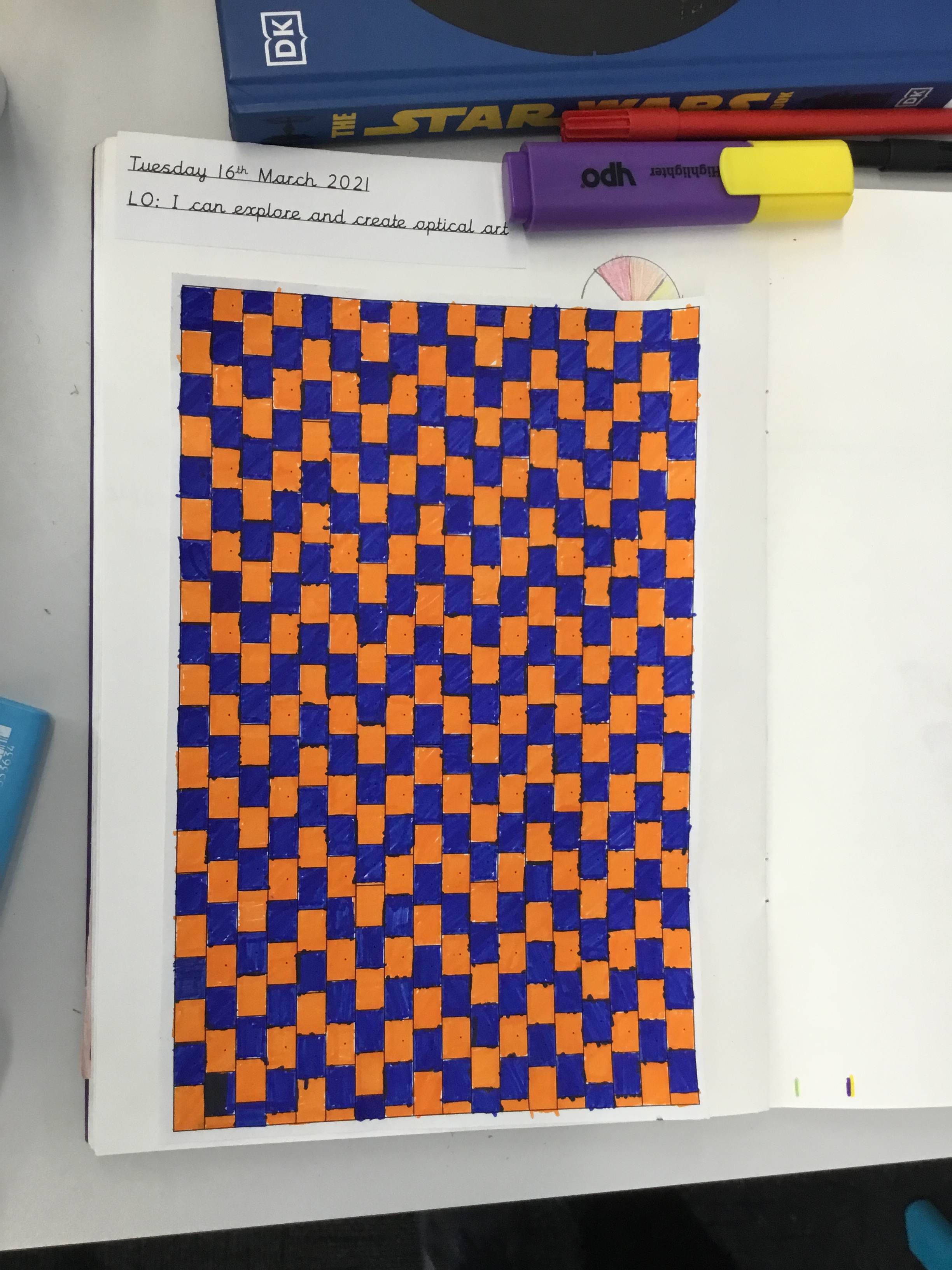 Year 5 enjoyed creating an optical illusion. They chose two different colours, a darker colour and lighter colour to create an effective illusion.