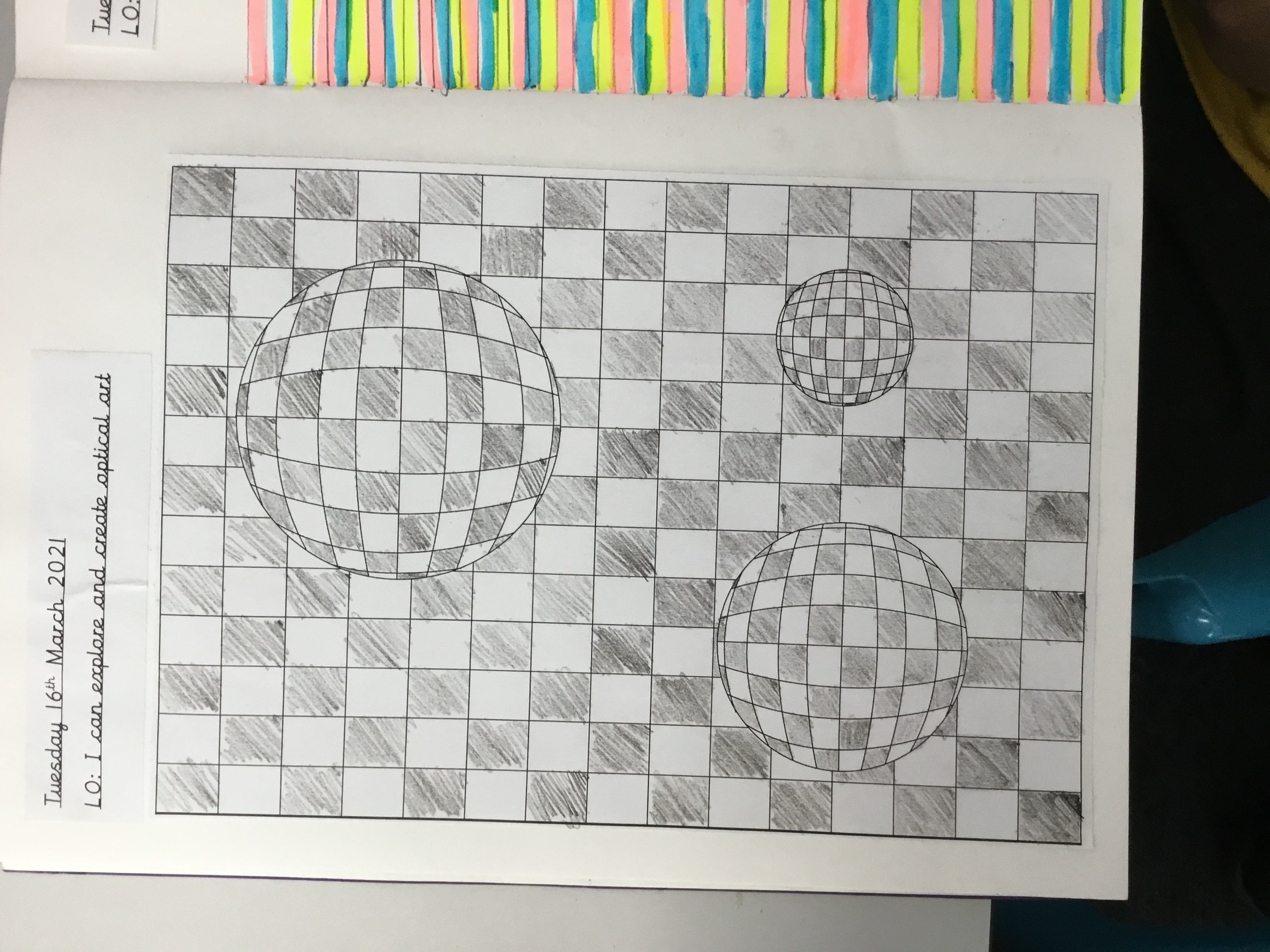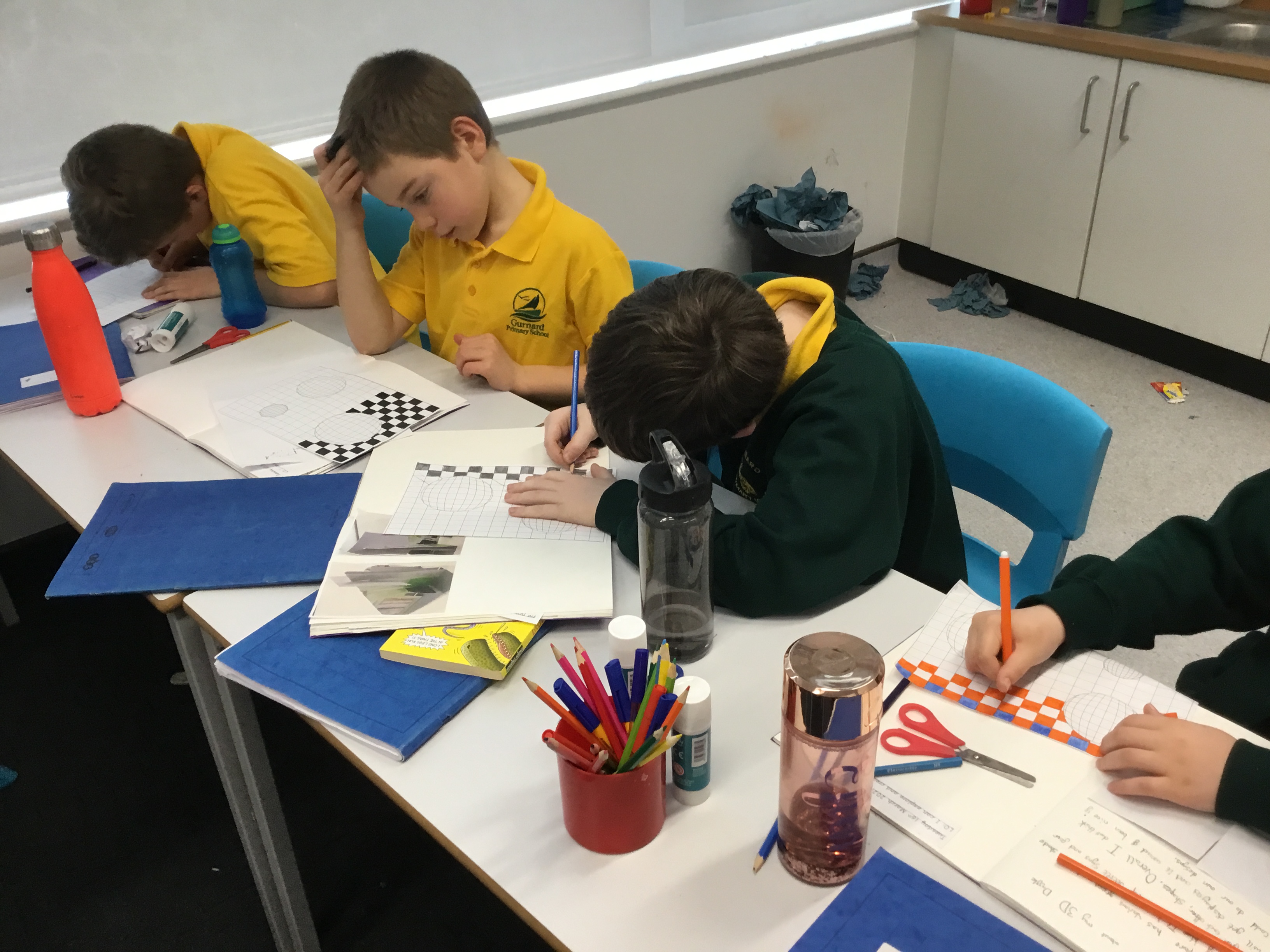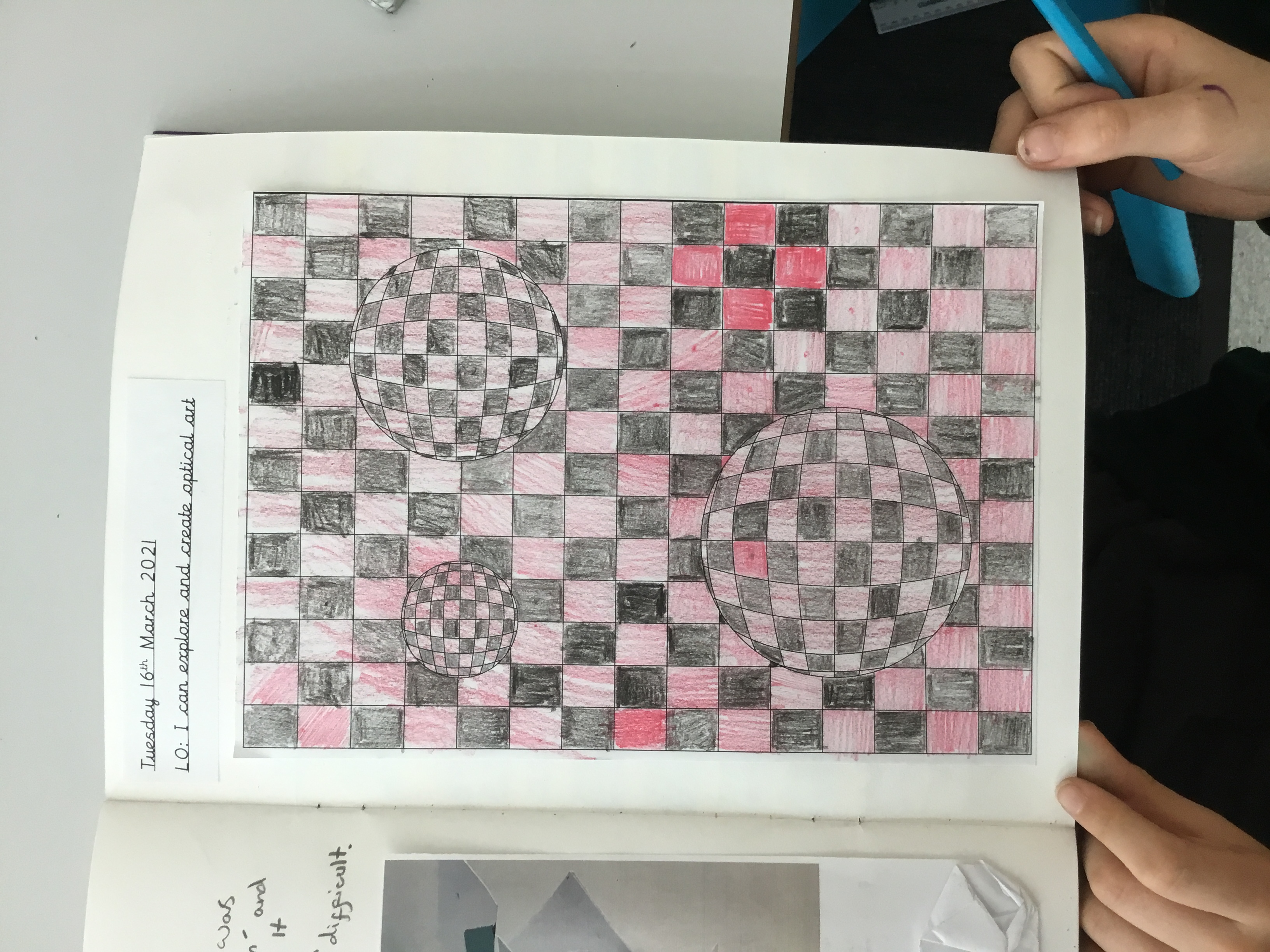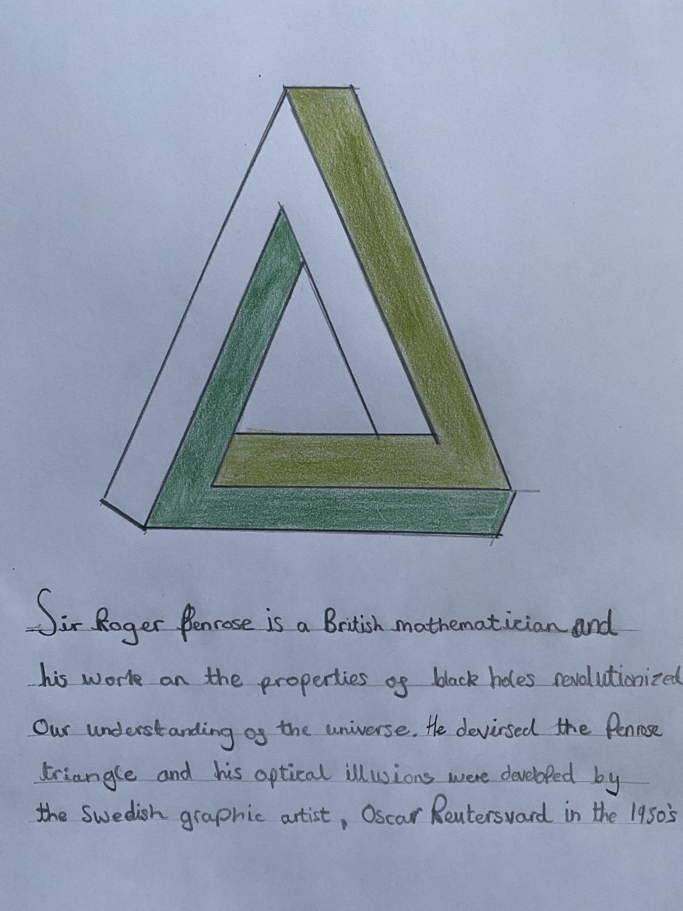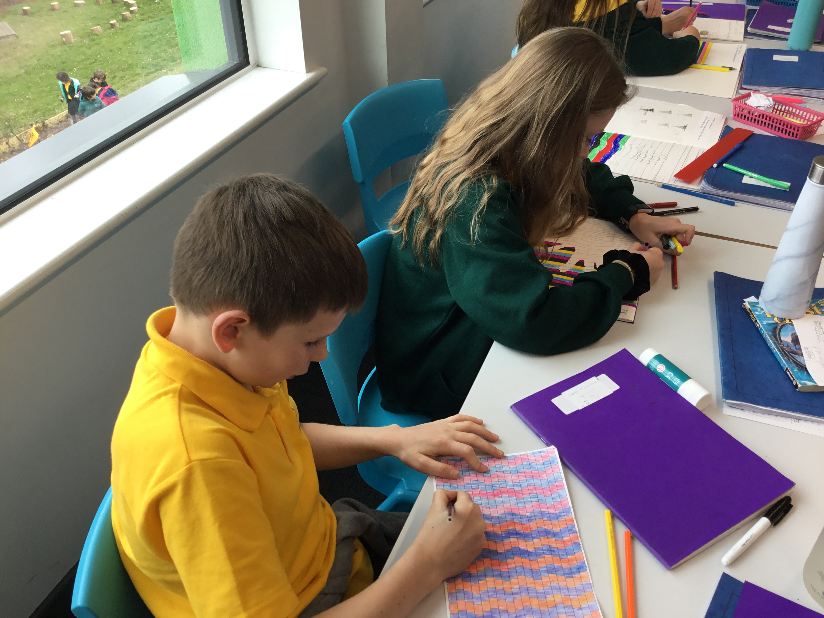 Year 5 enjoyed creating an optical illusion. They chose two different colours, a darker colour and lighter colour to create an effective illusion.
