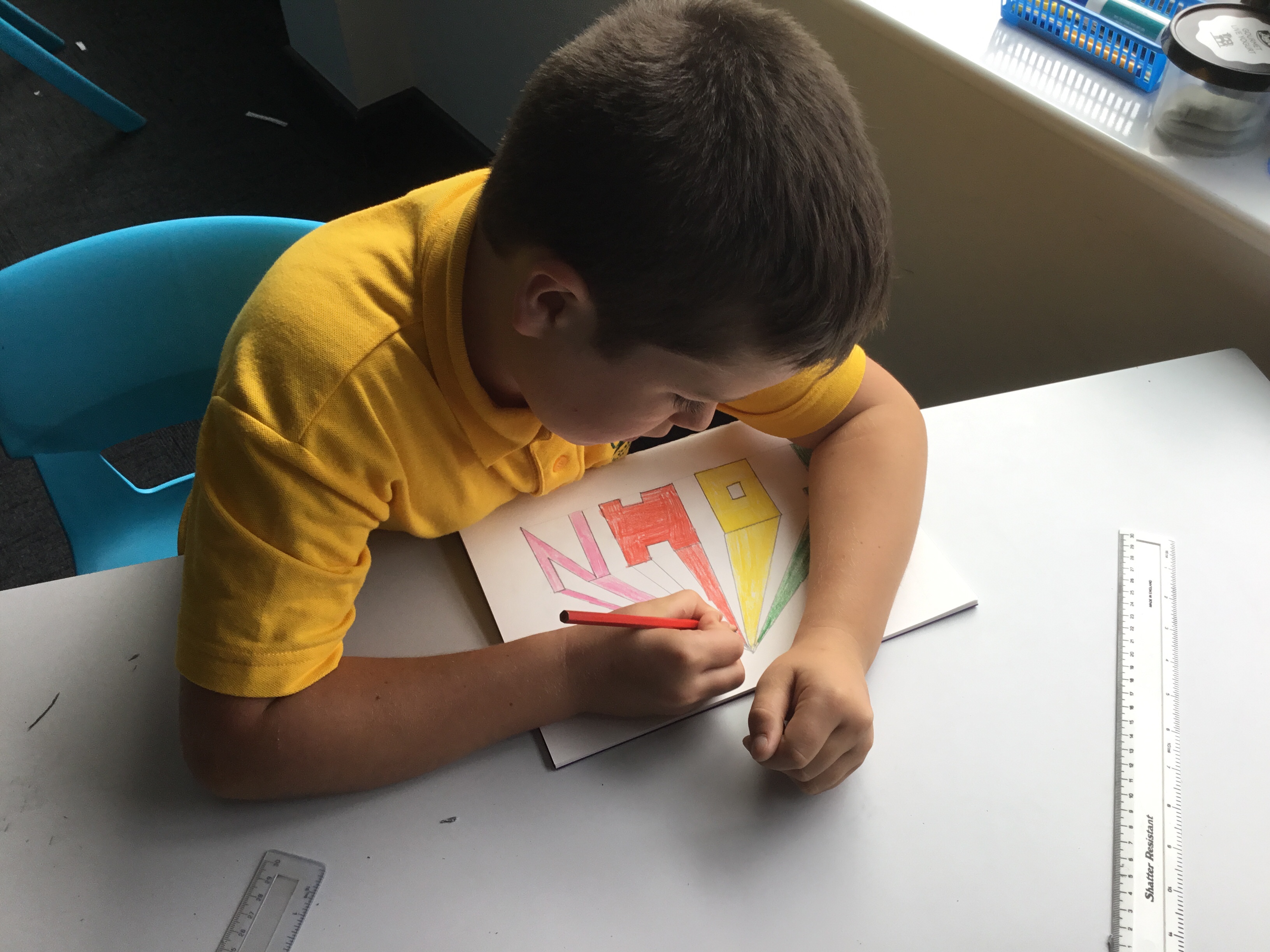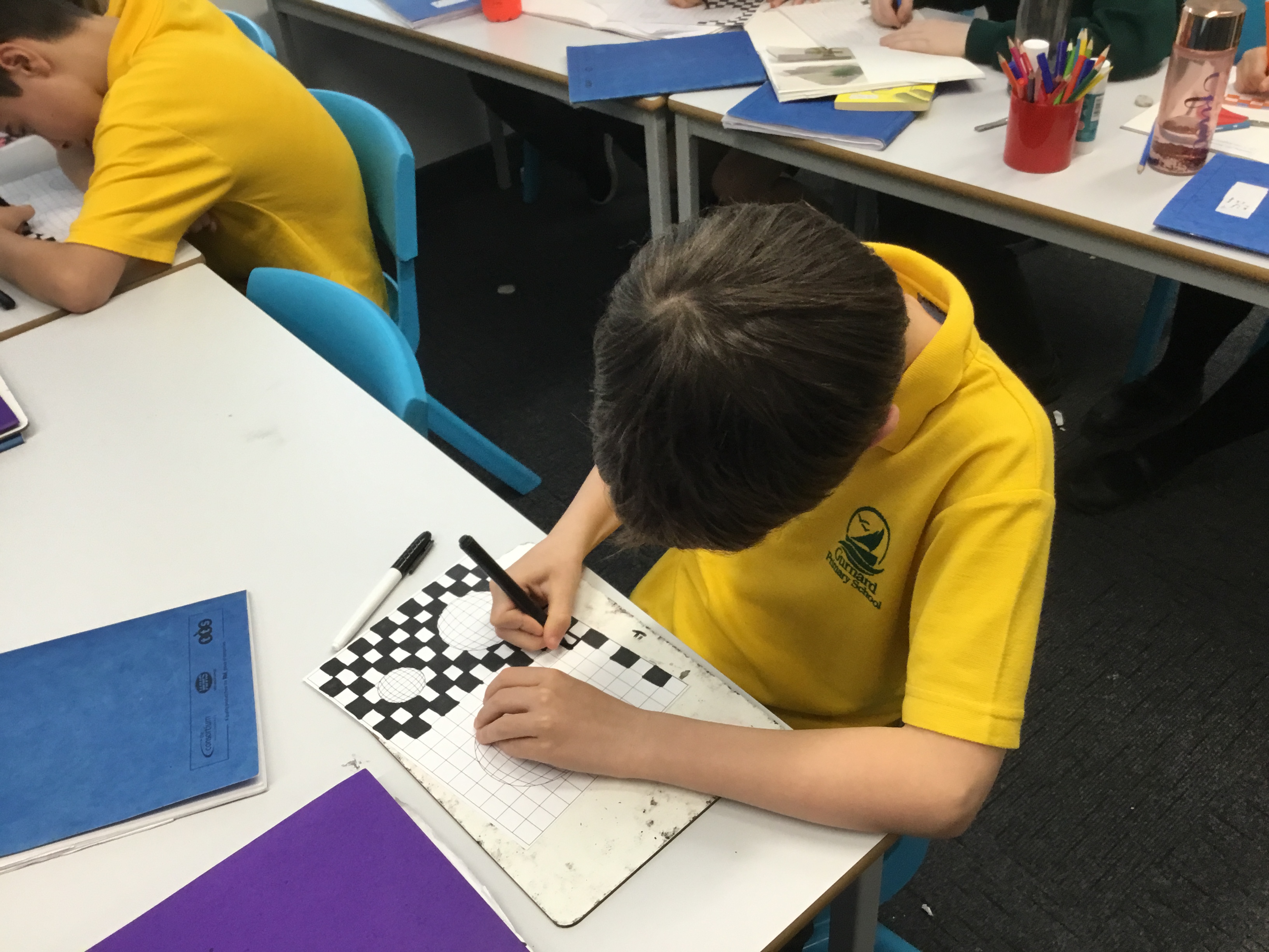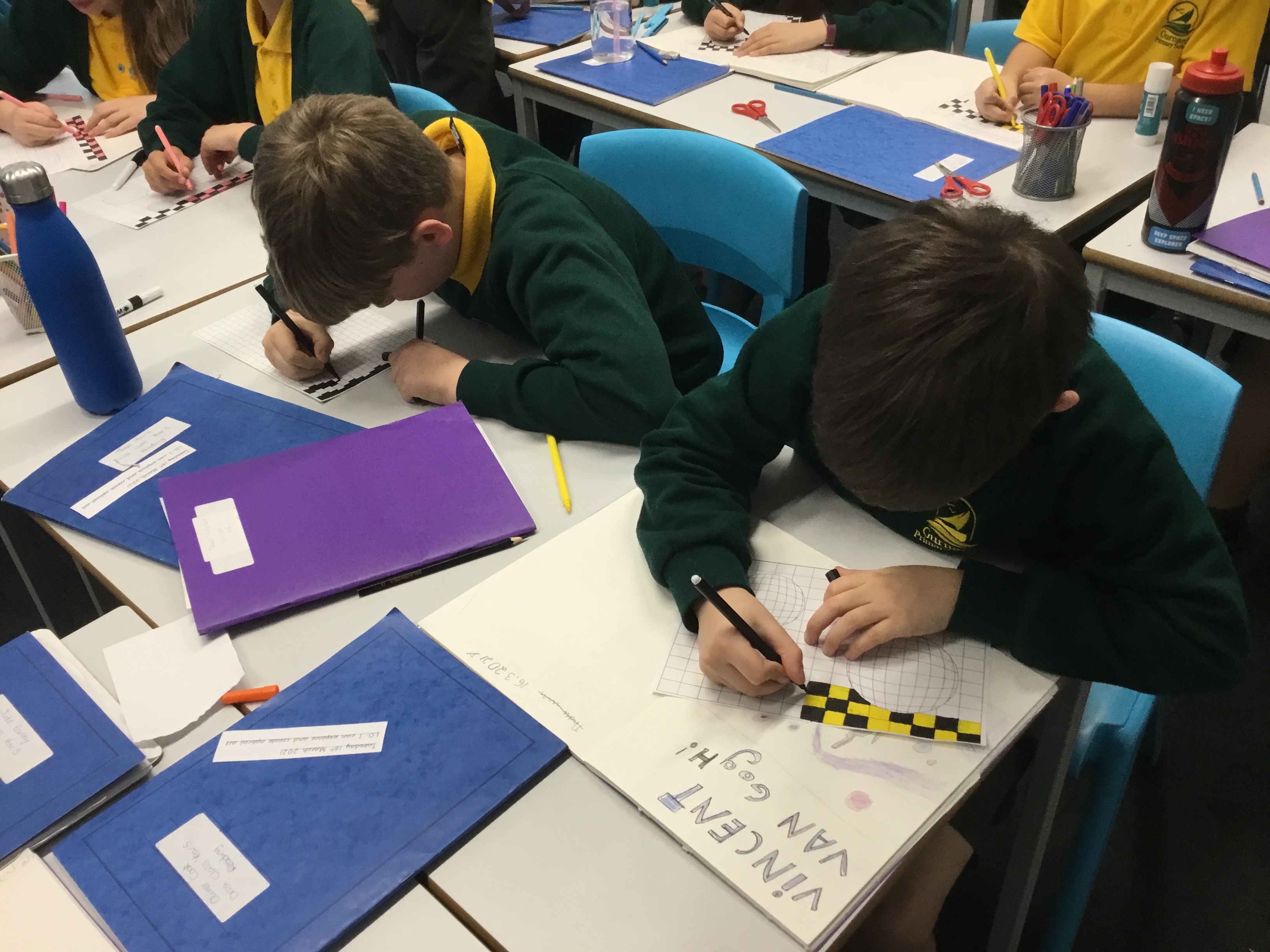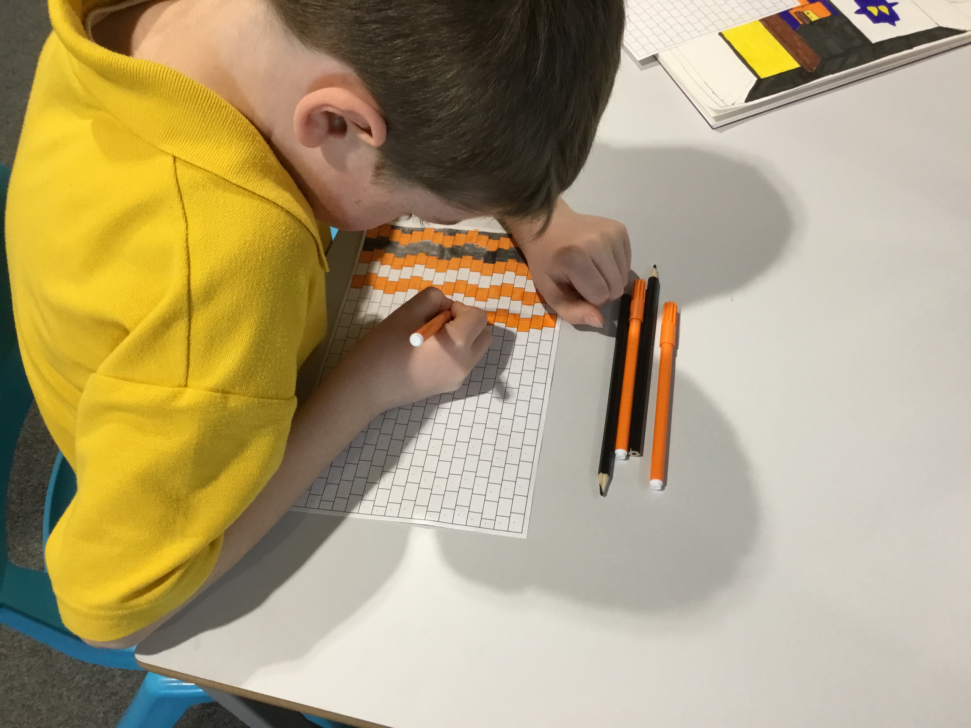 Year 5 enjoyed creating an optical illusion. They chose two different colours, a darker colour and lighter colour to create an effective illusion.