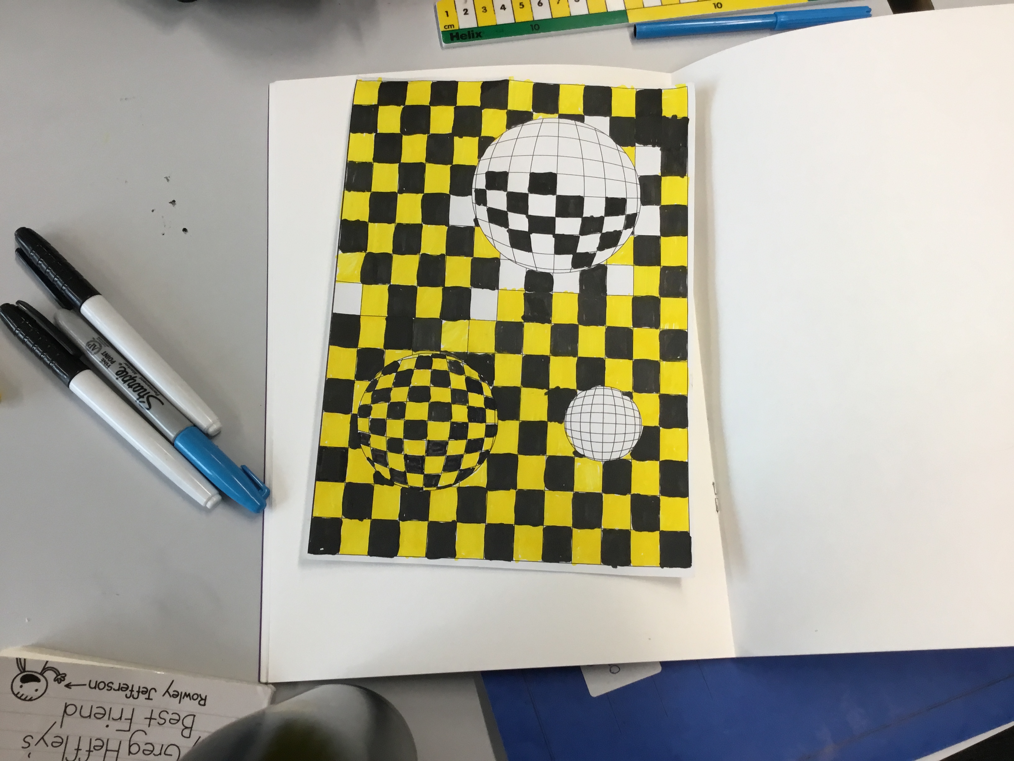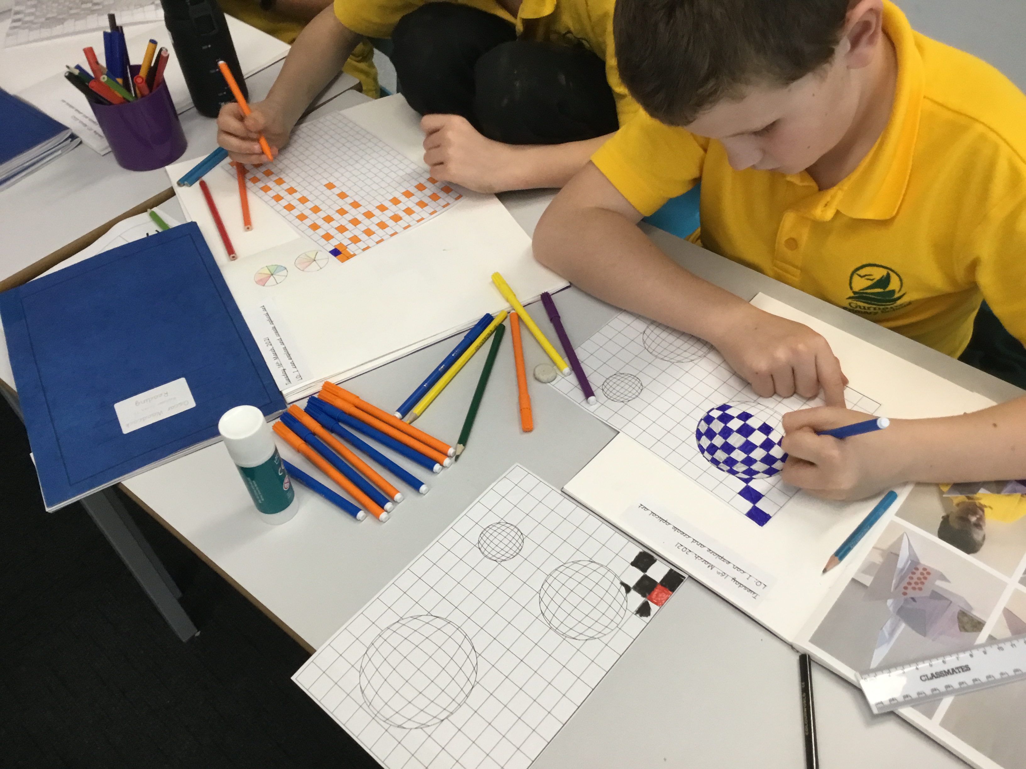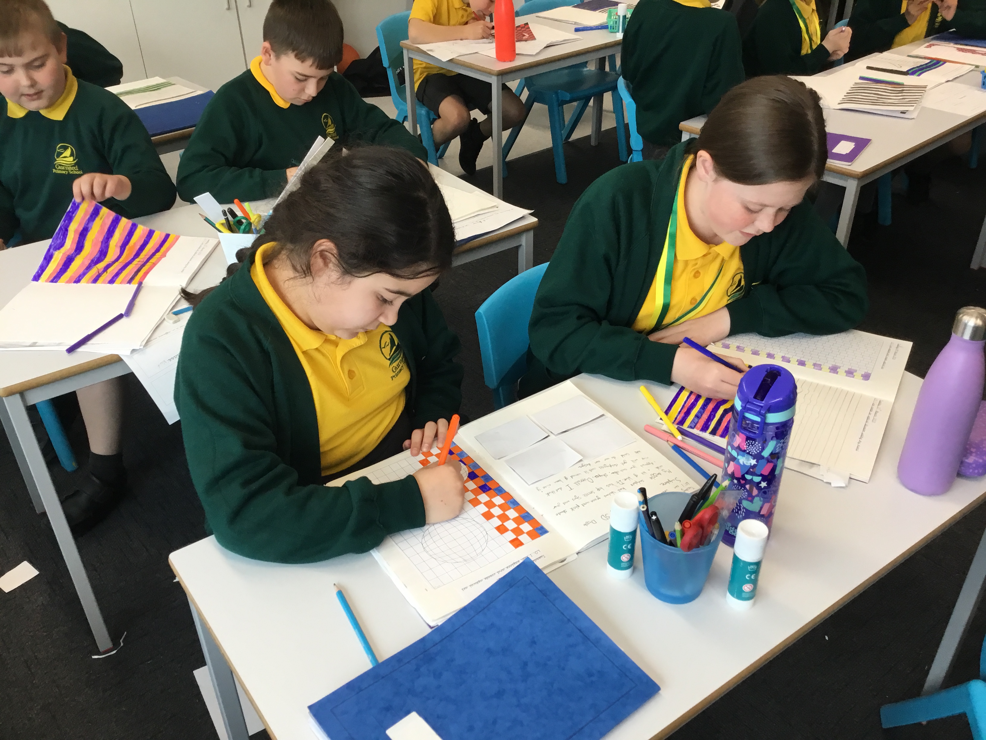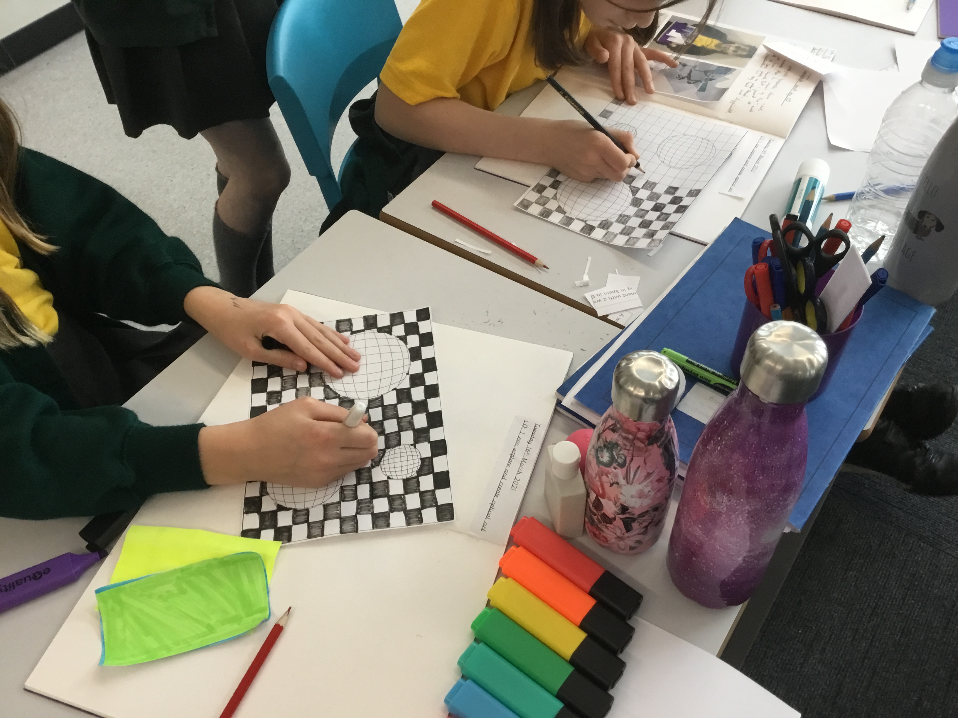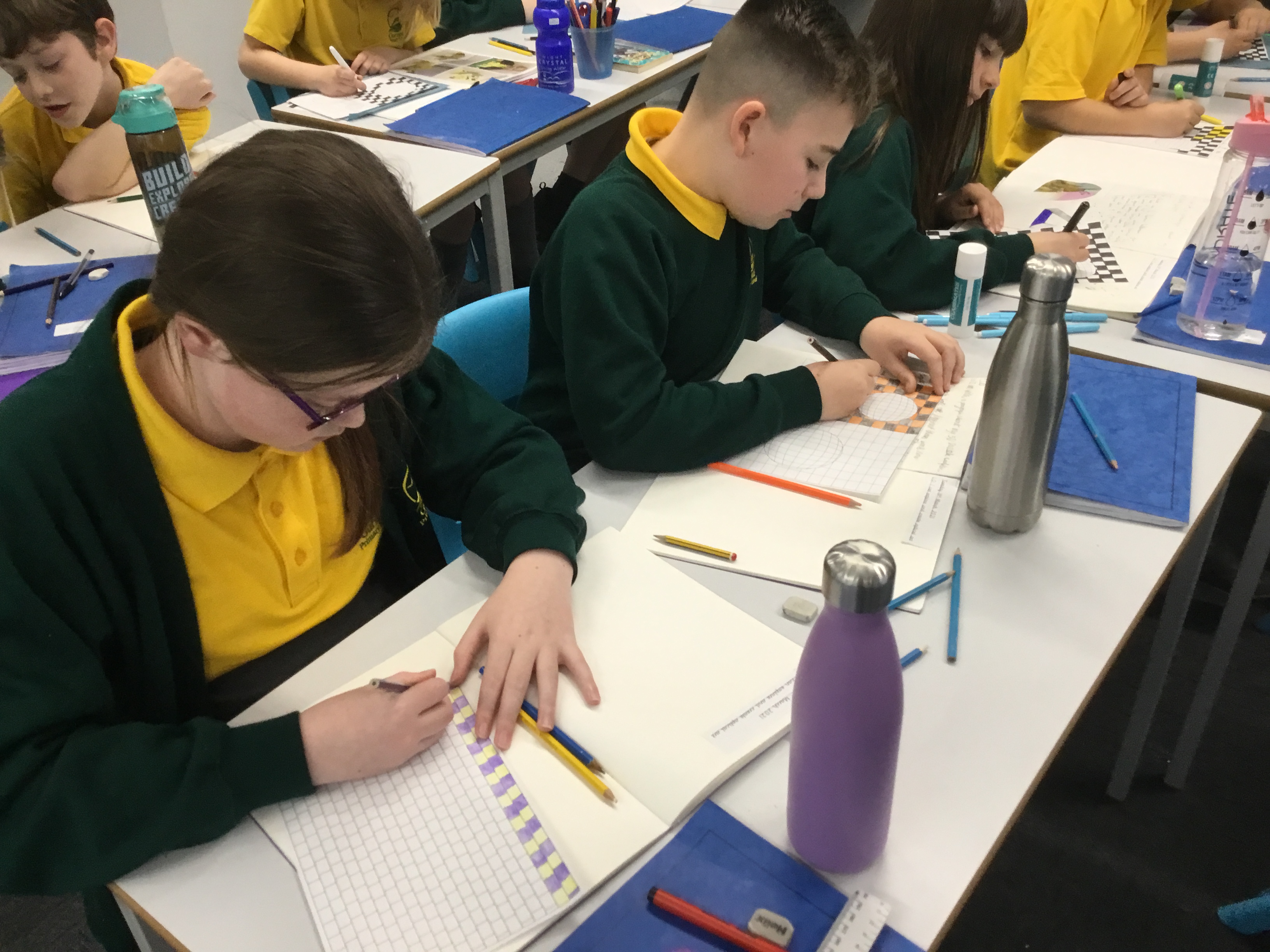 Year 5 enjoyed creating an optical illusion. They chose two different colours, a darker colour and lighter colour to create an effective illusion.