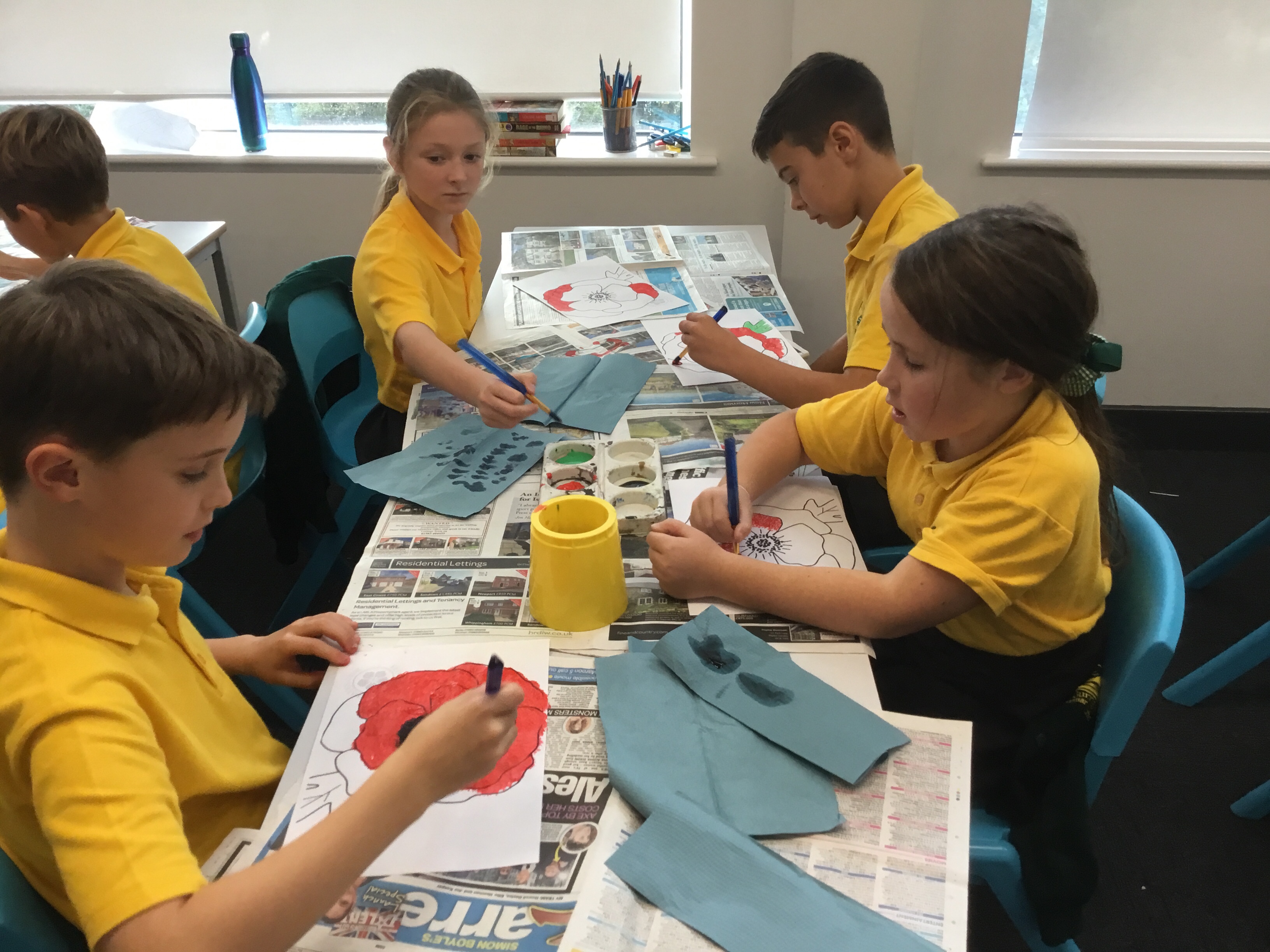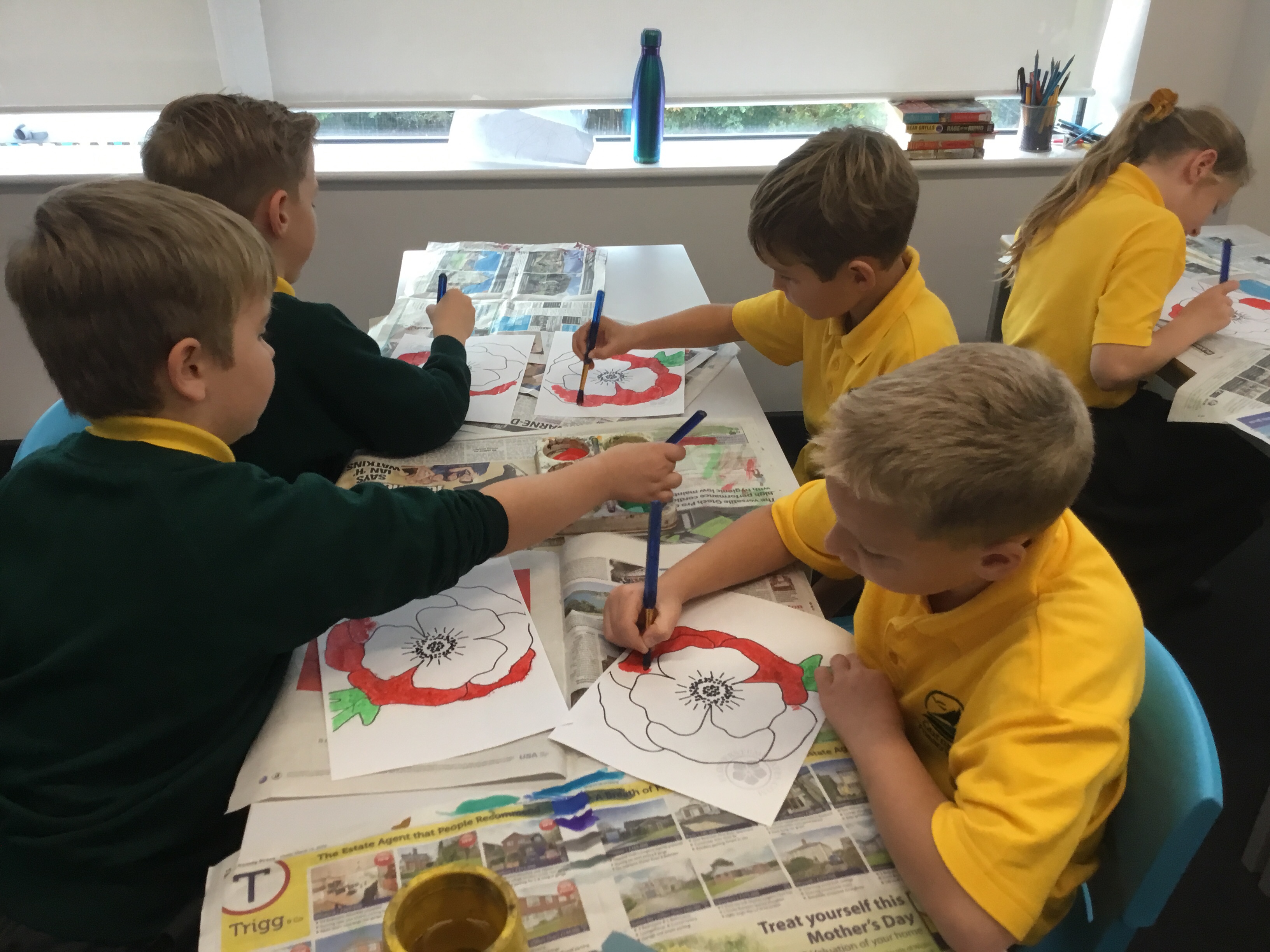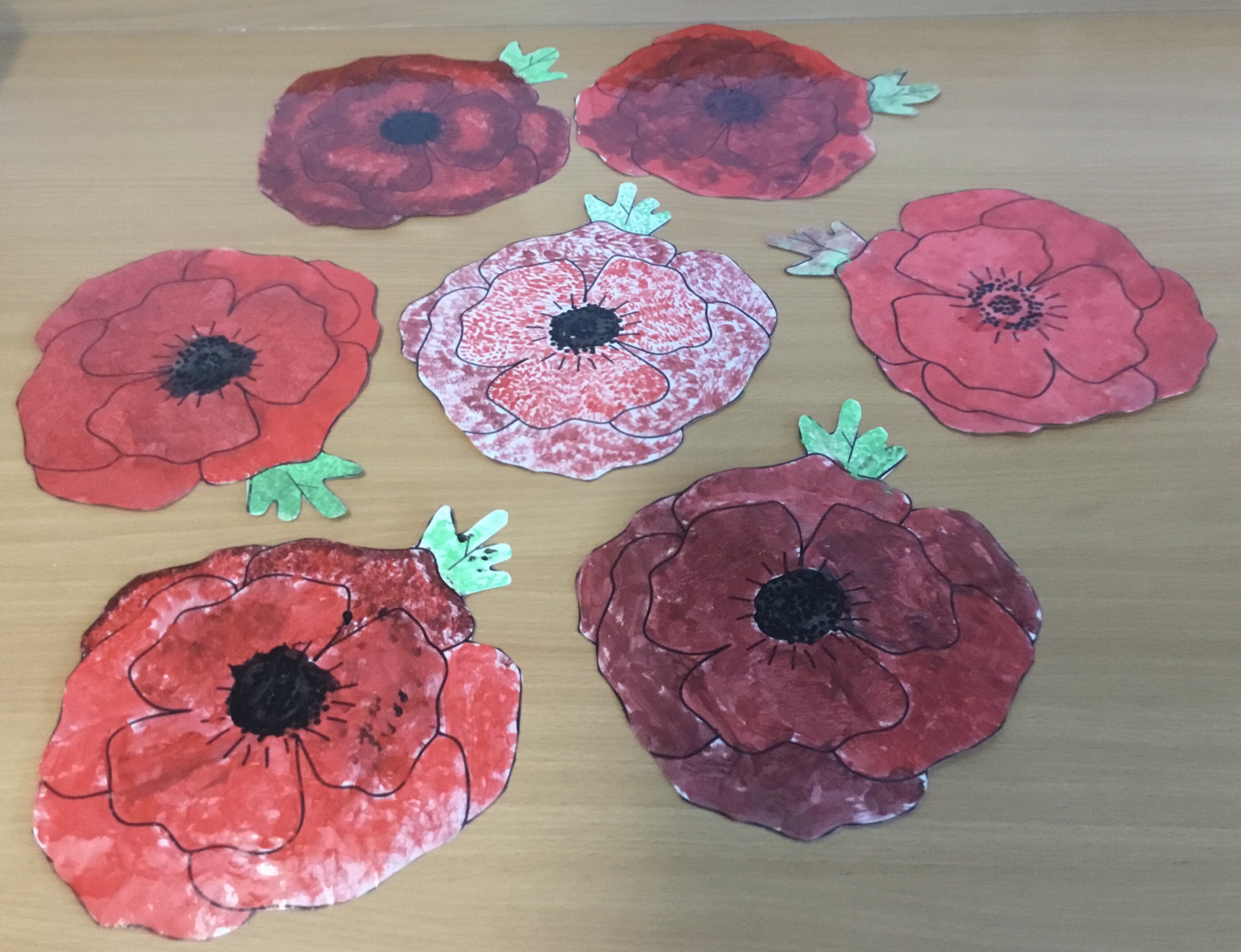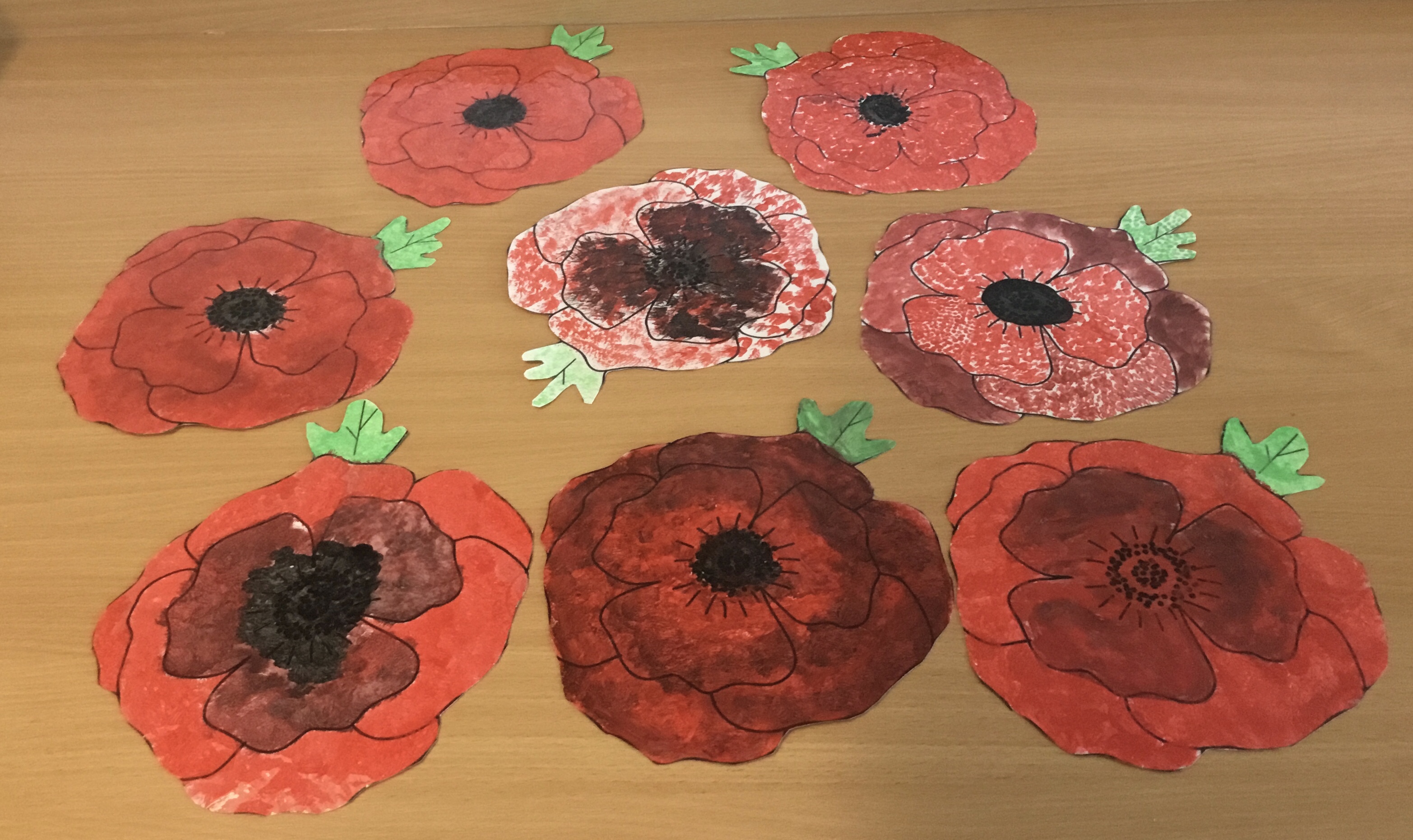 Year 5 enjoyed using pointillist techniques and colouring create their Remembrance Day art.Paint brushes were used to make tiny dots. They mixed black with red to create a different shade of red to create different textures. Their poppies will be on display at the COVID test centre next week.