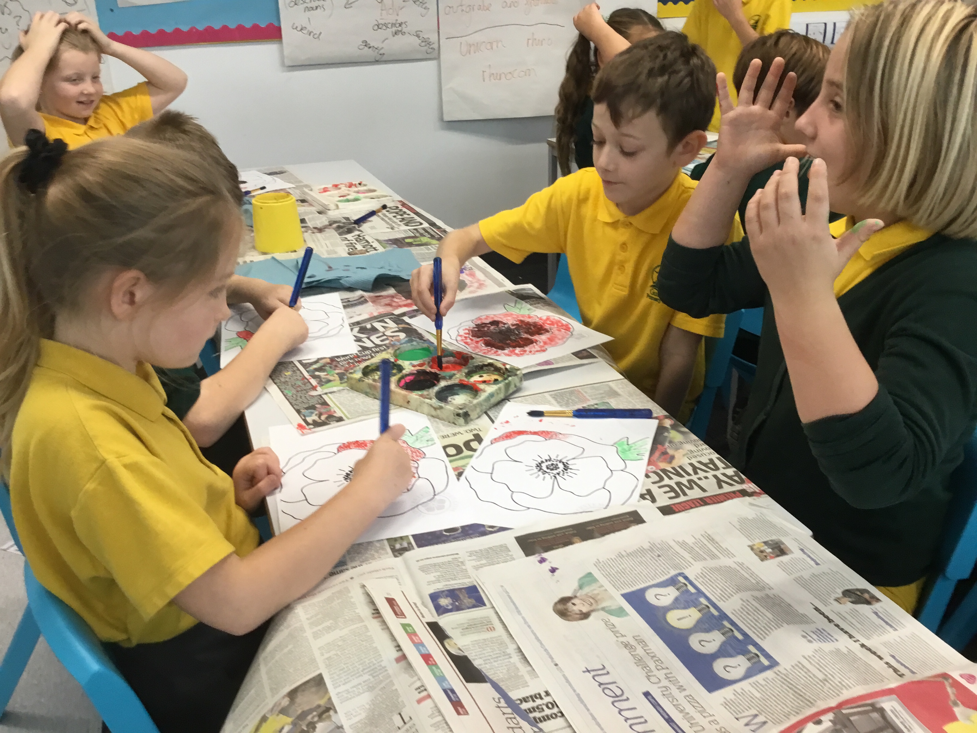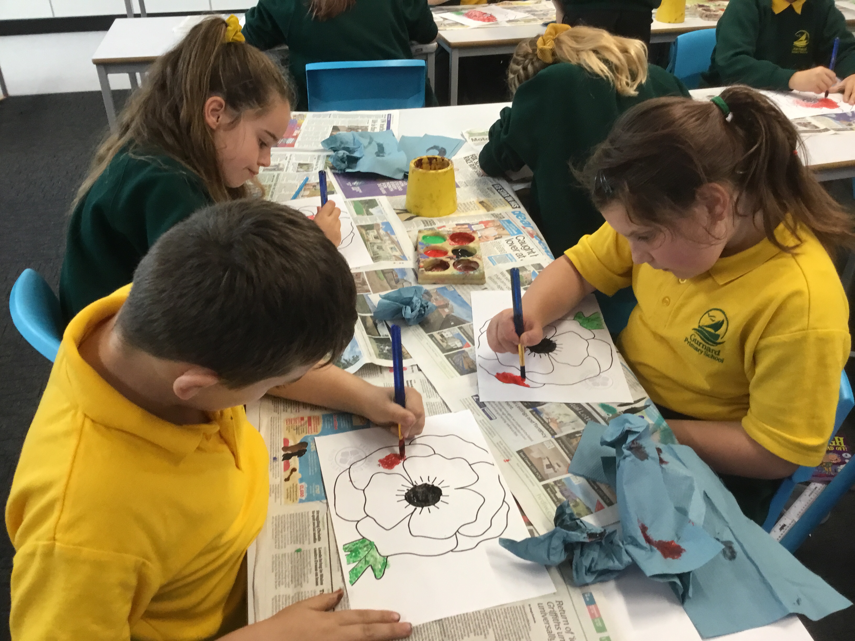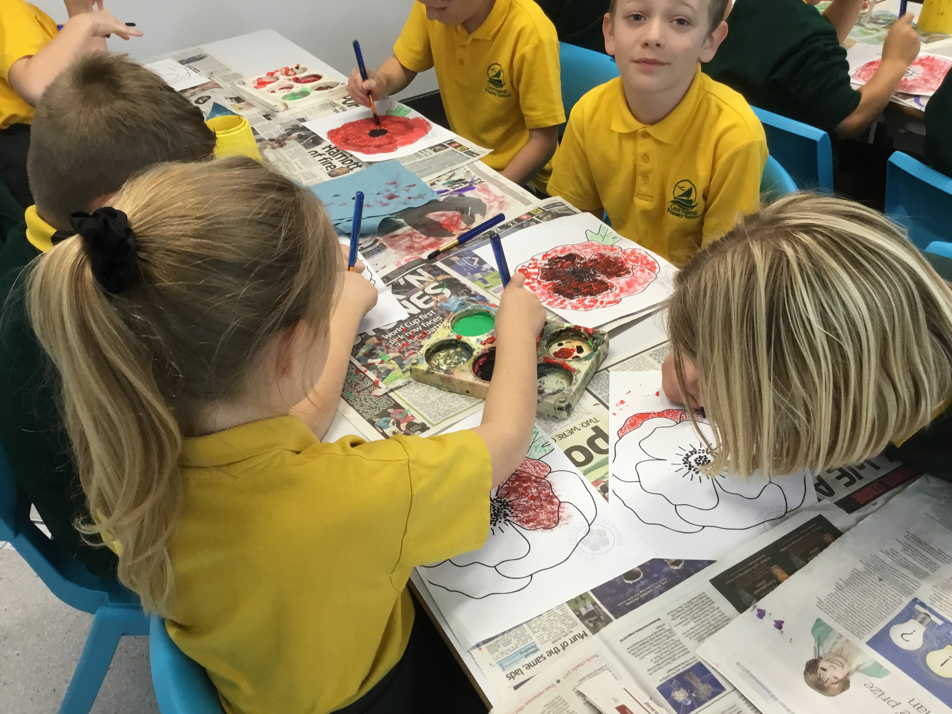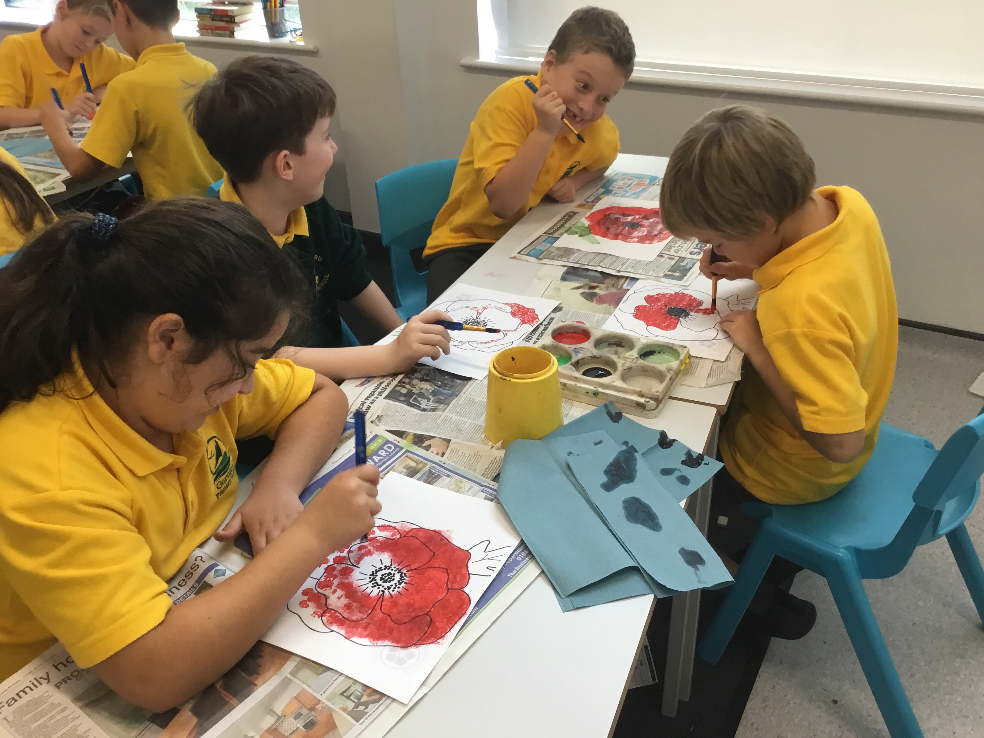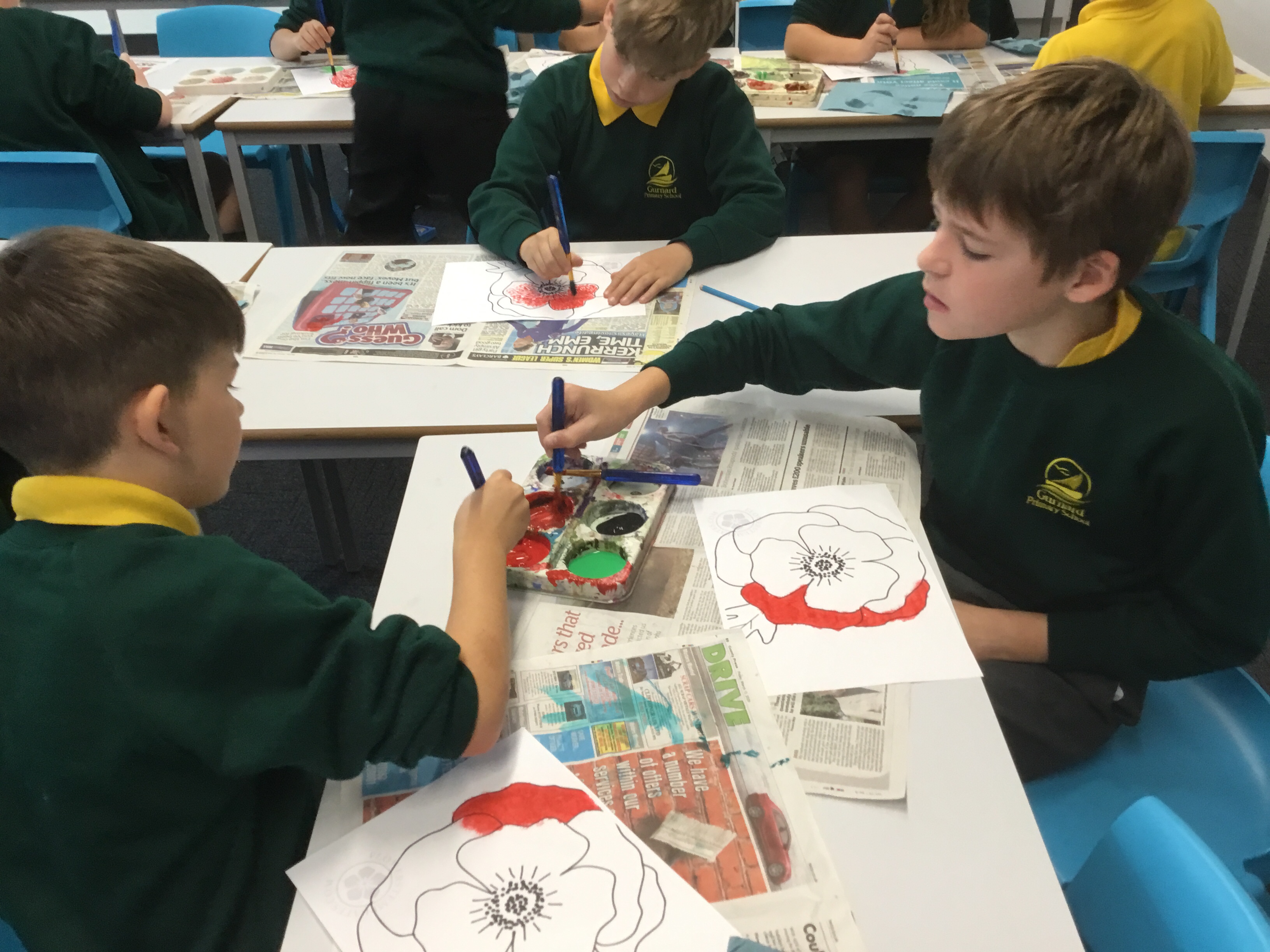Year 5 enjoyed using pointillist techniques and colouring create their Remembrance Day art.Paint brushes were used to make tiny dots. They mixed black with red to create a different shade of red to create different textures. Their poppies will be on display at the COVID test centre next week.