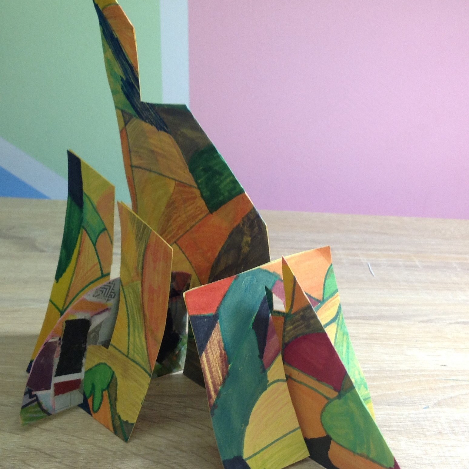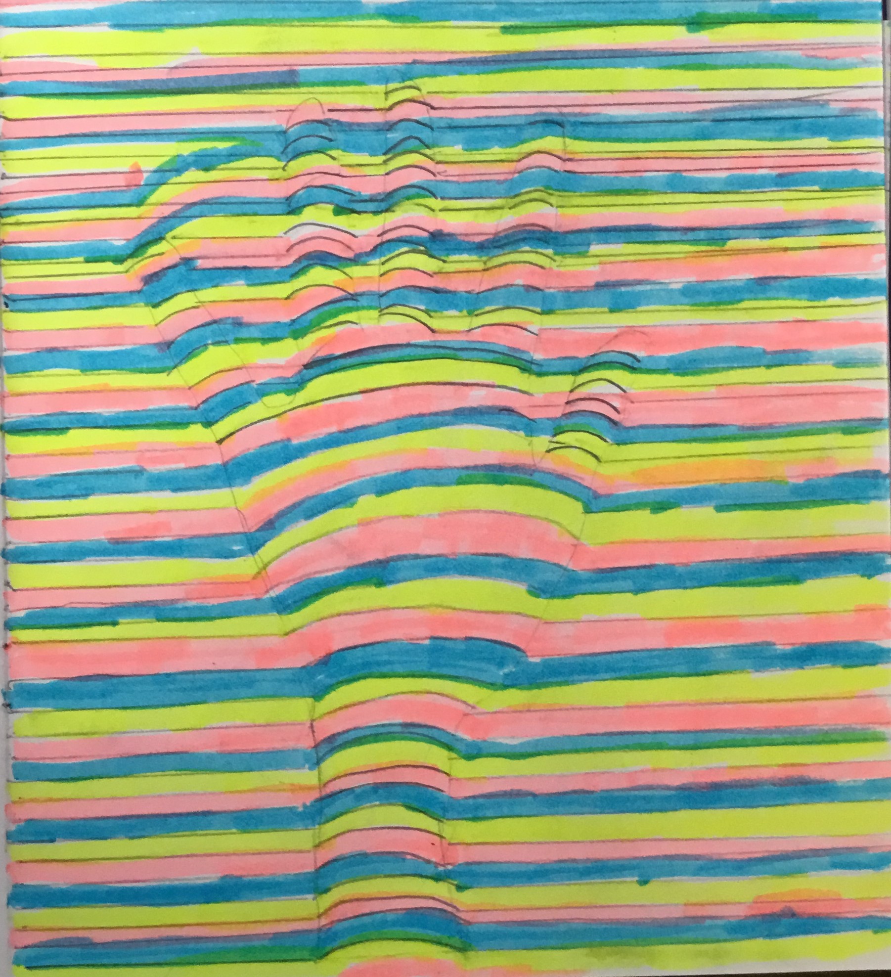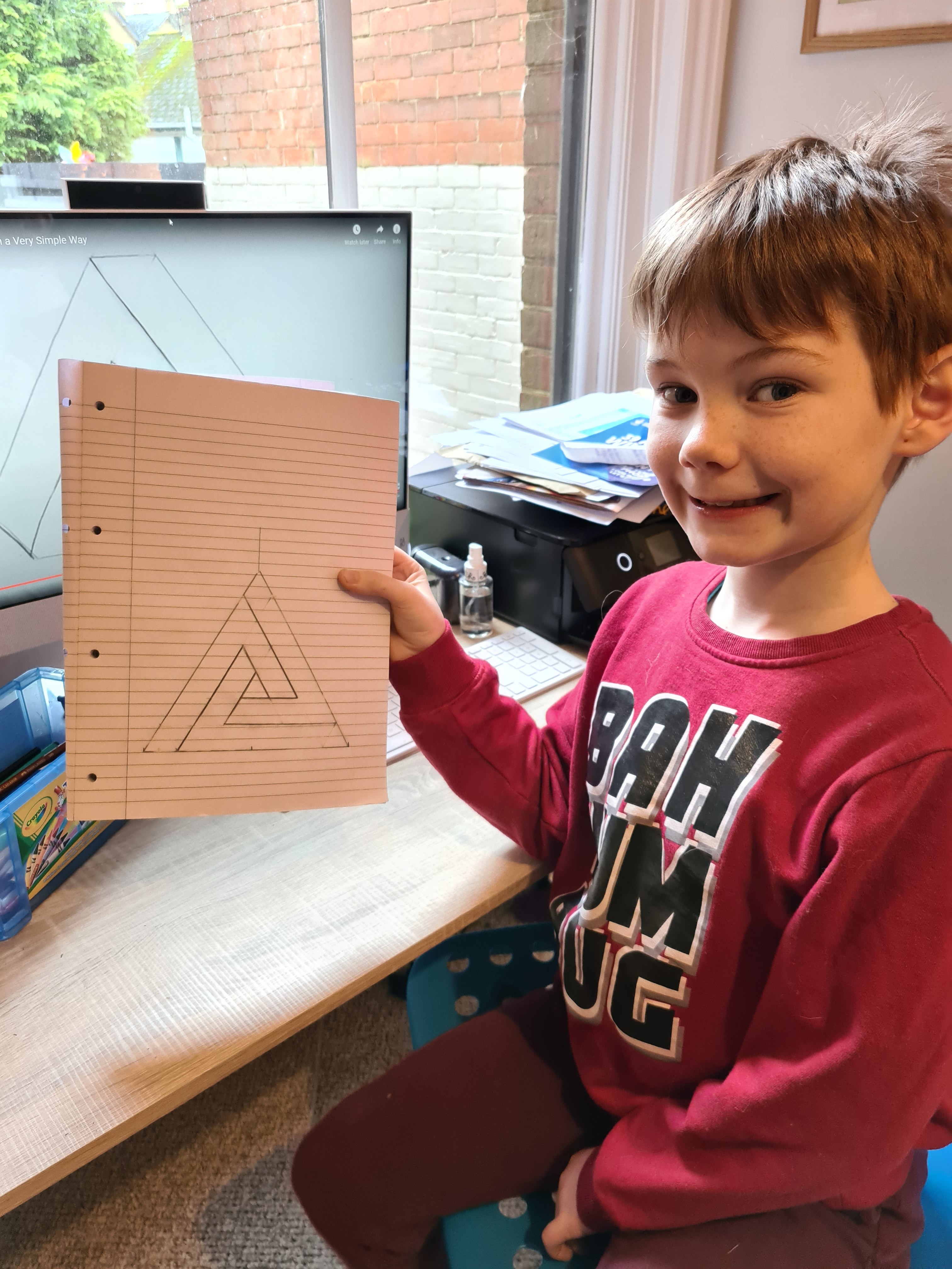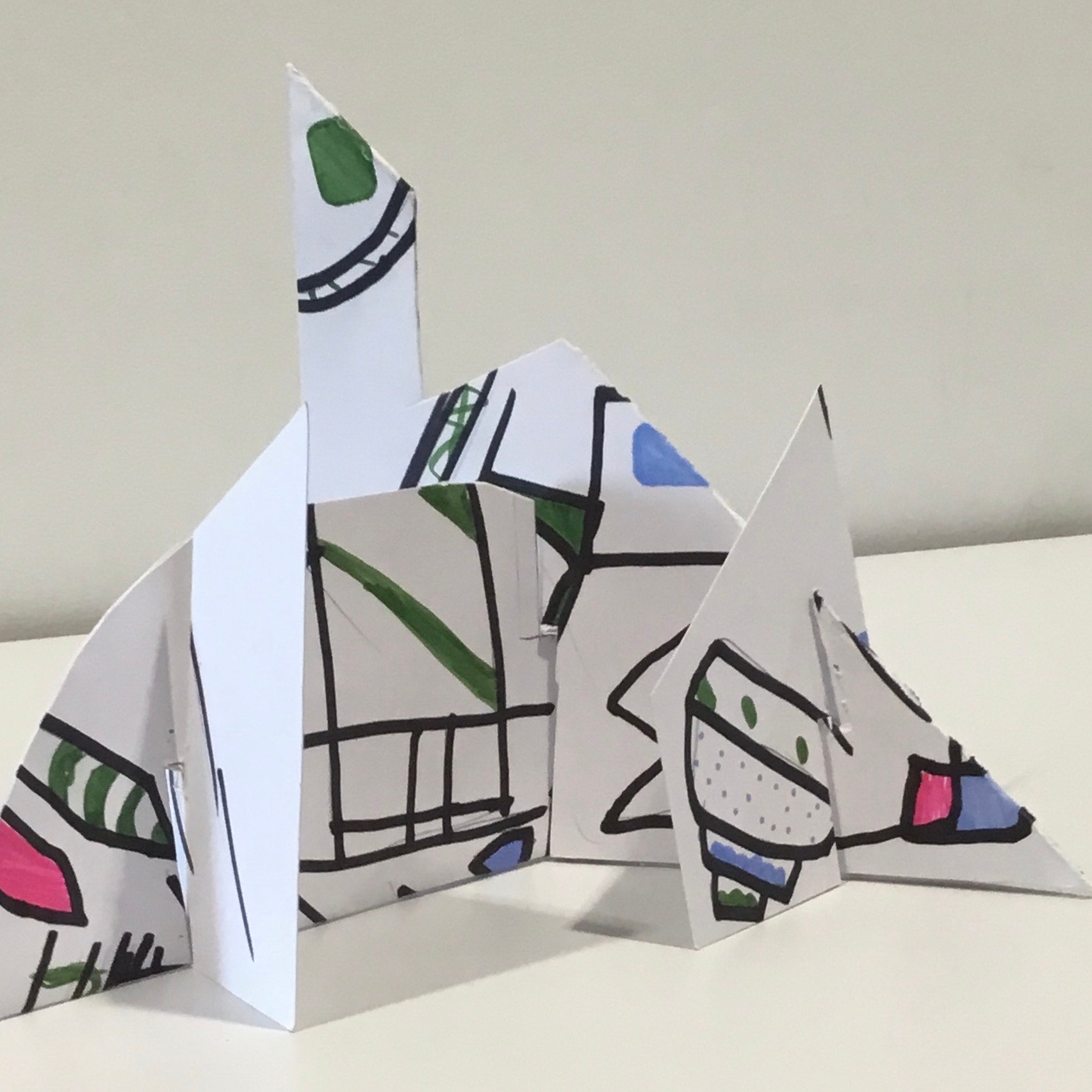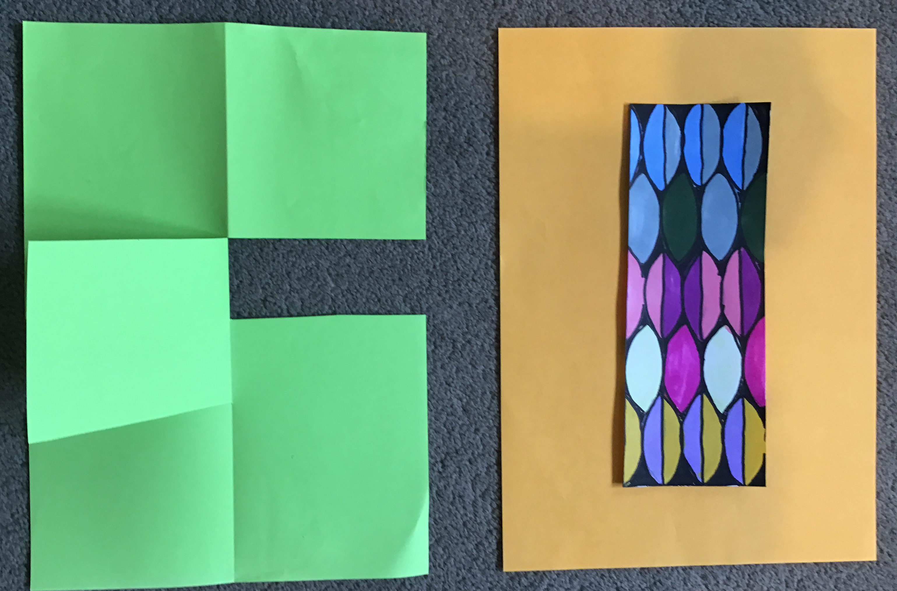 The children traced around their hands, then they drew lines, joining them up inside the hand. They then chose at least 3 colours which they then alternated to create some very effective illusions.