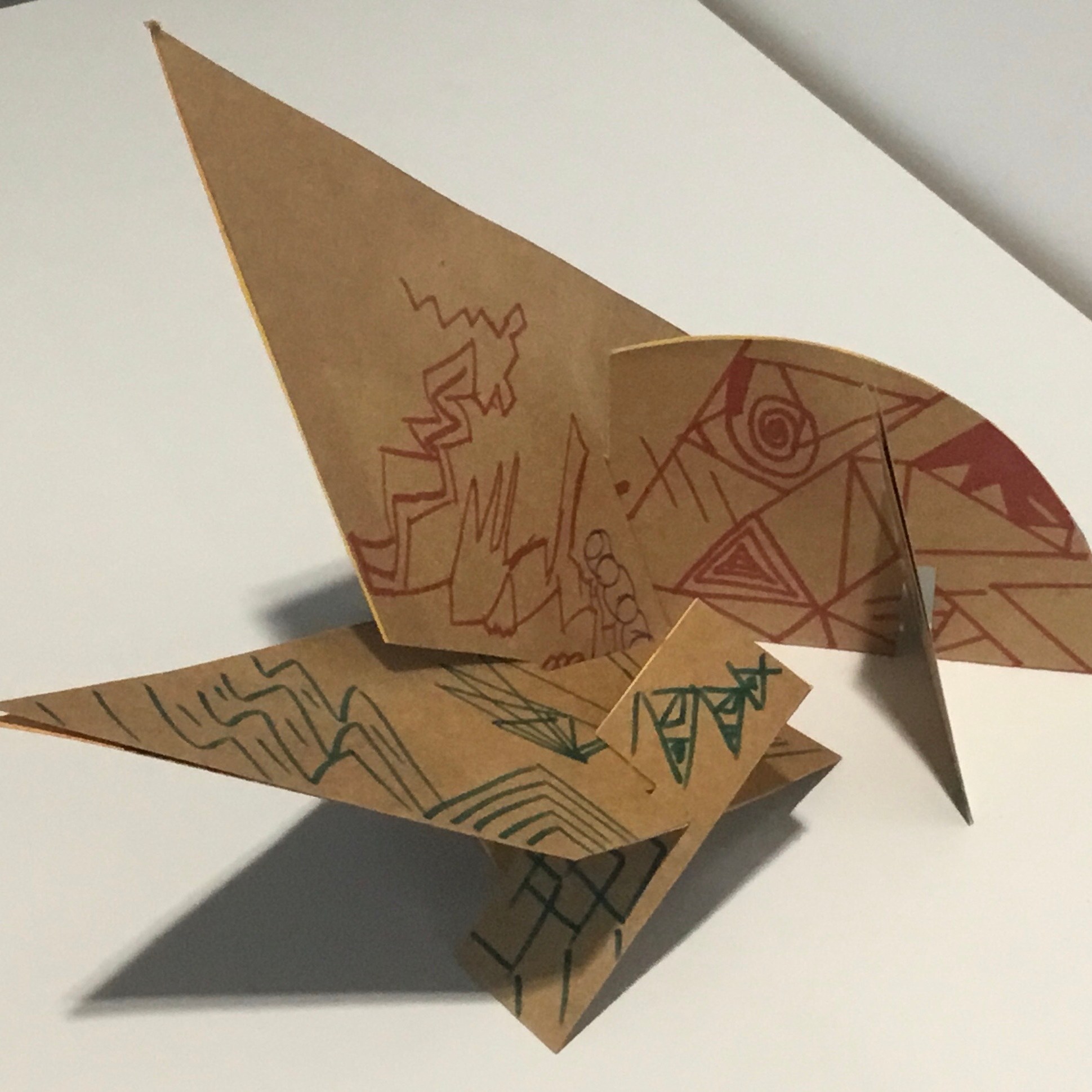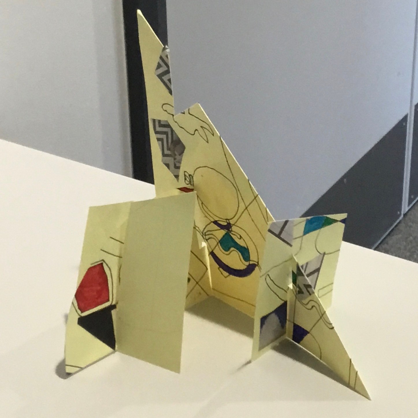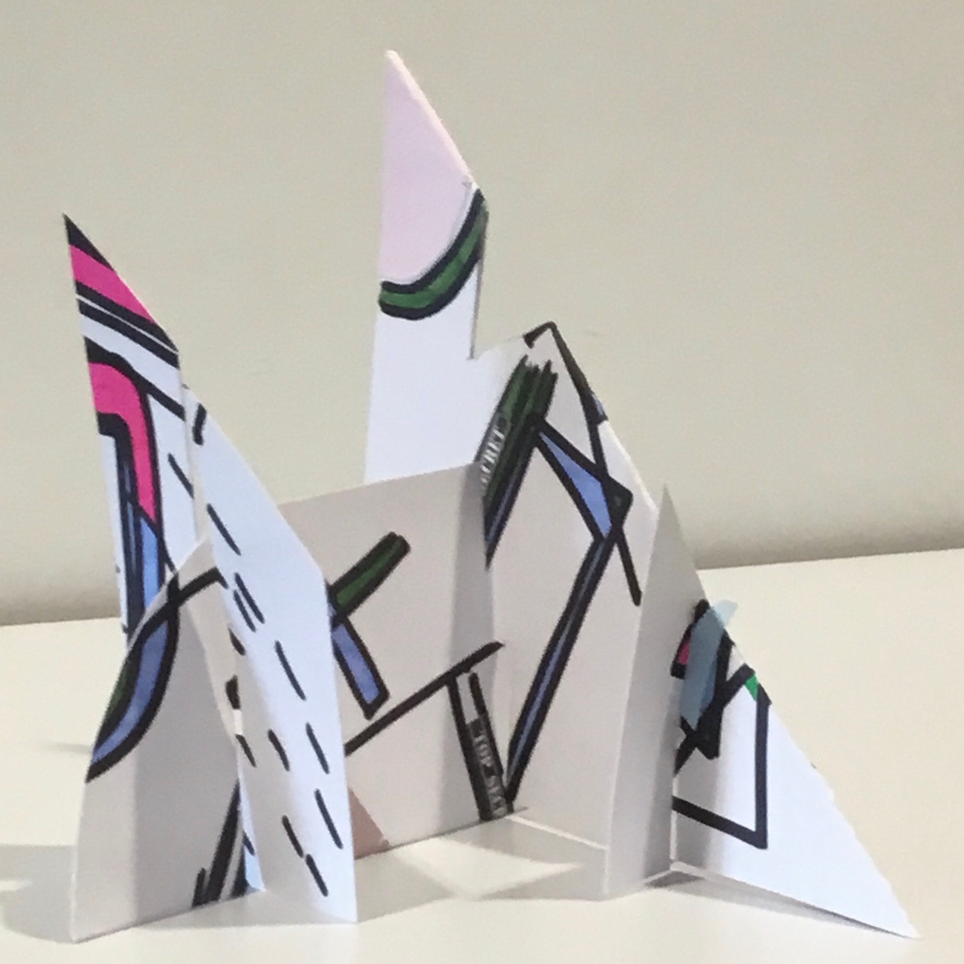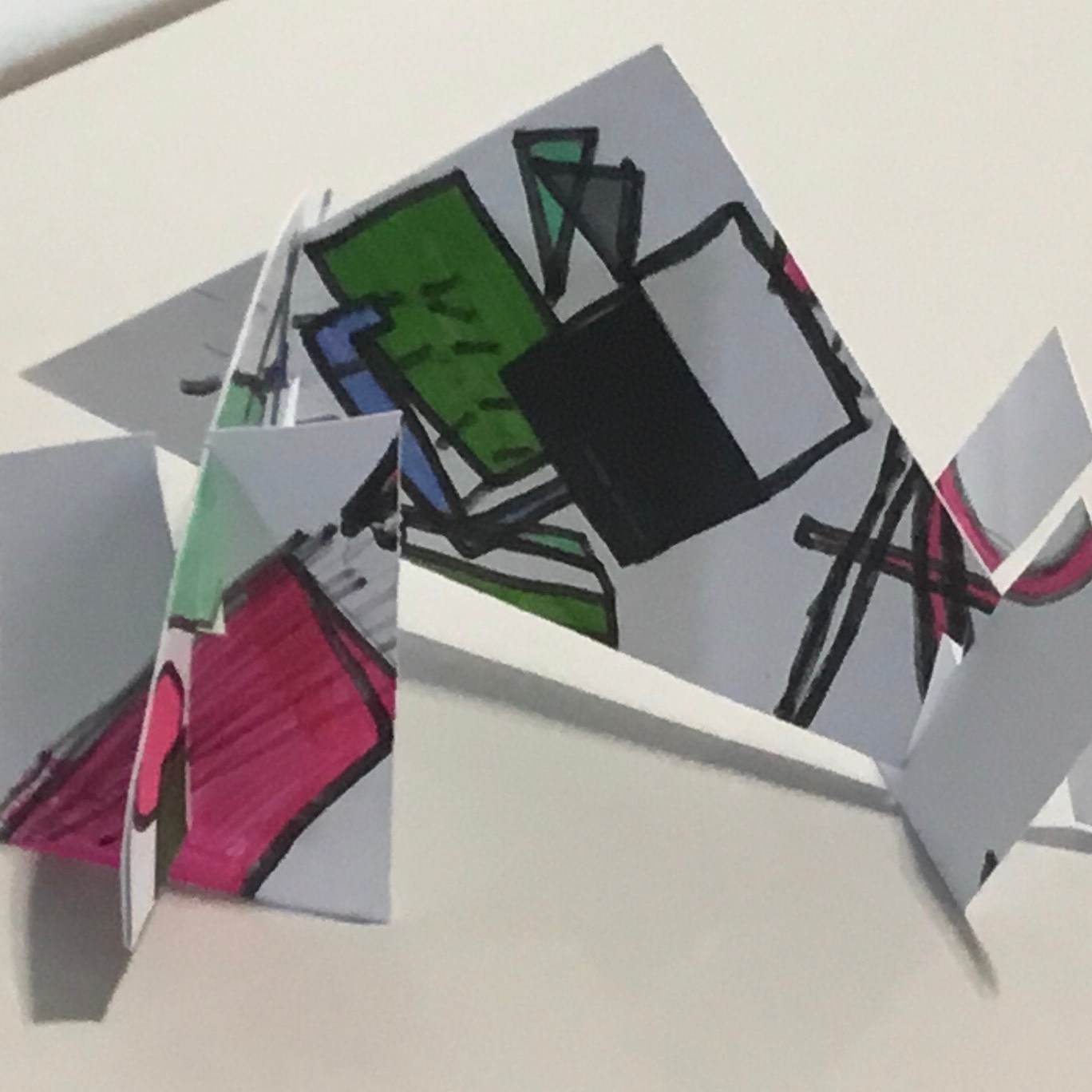 The children traced around their hands, then they drew lines, joining them up inside the hand. They then chose at least 3 colours which they then alternated to create some very effective illusions.