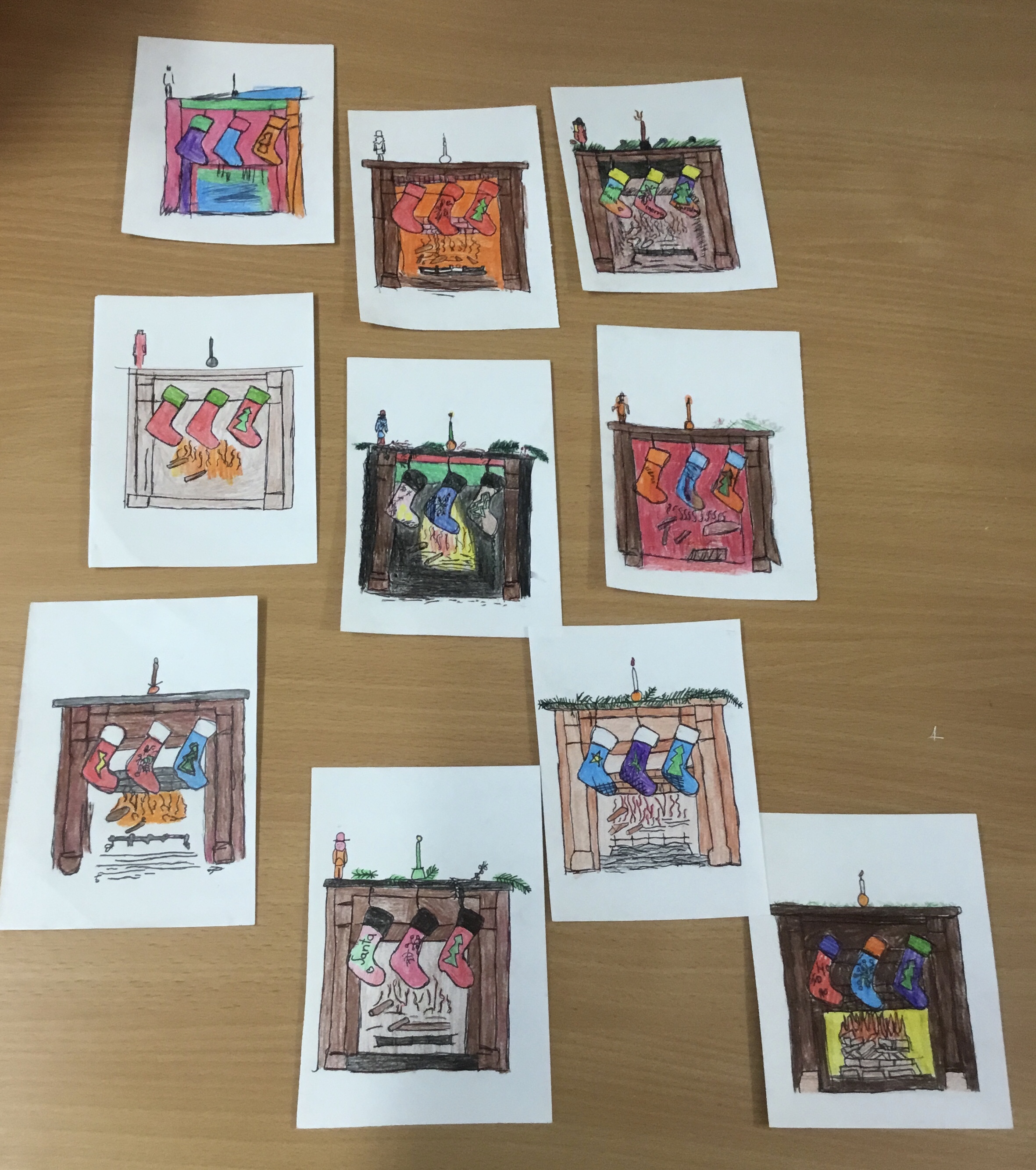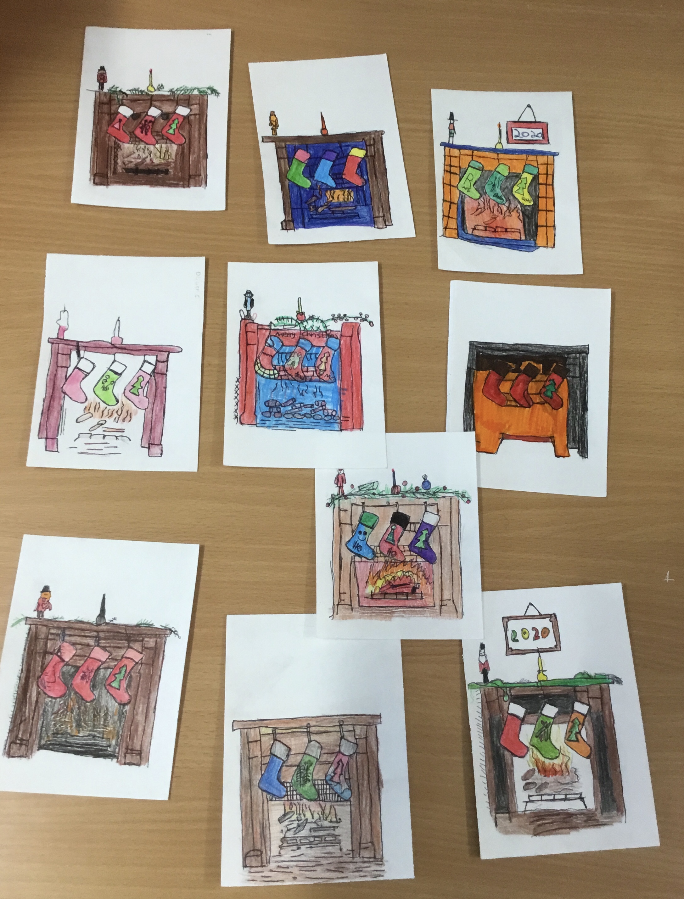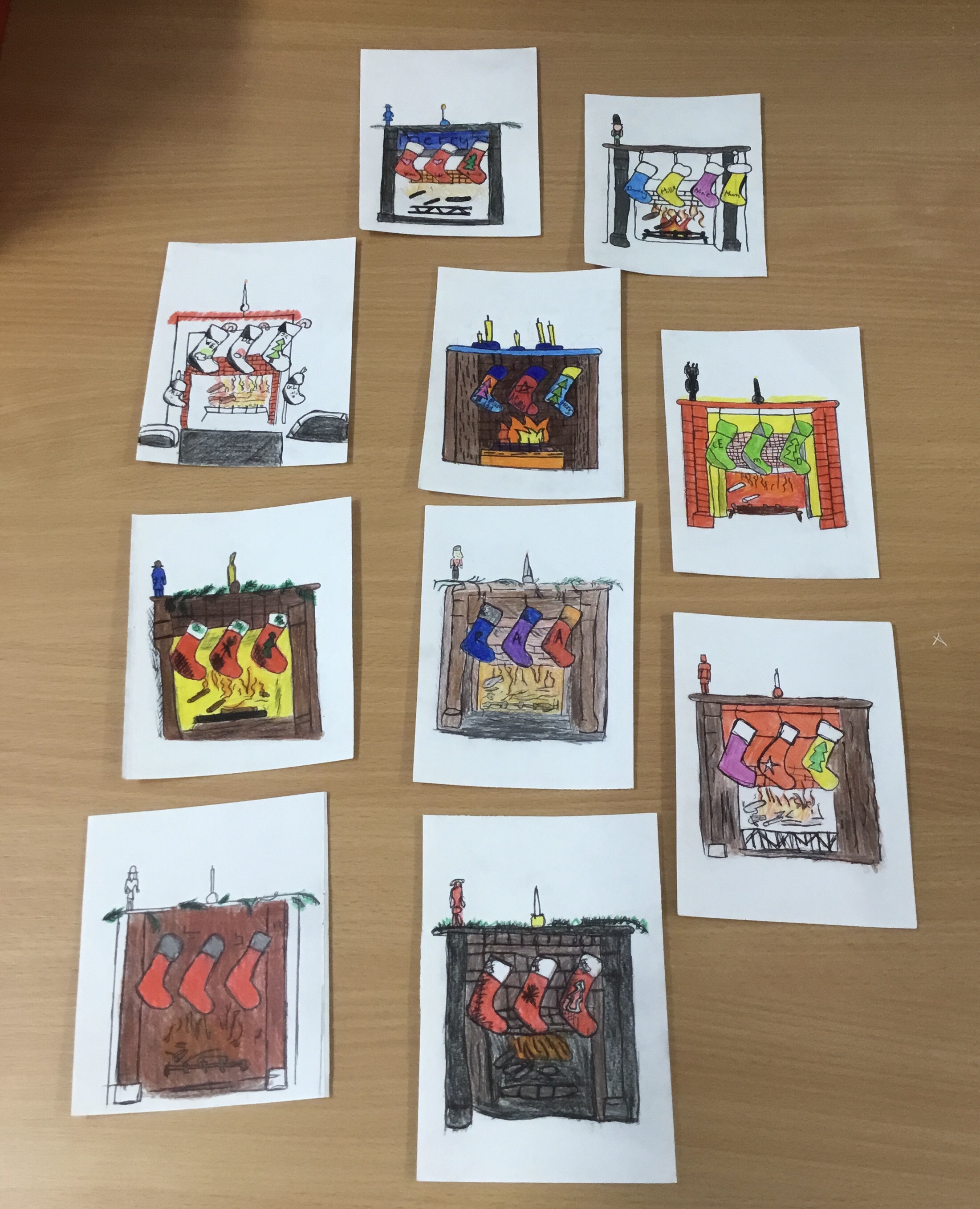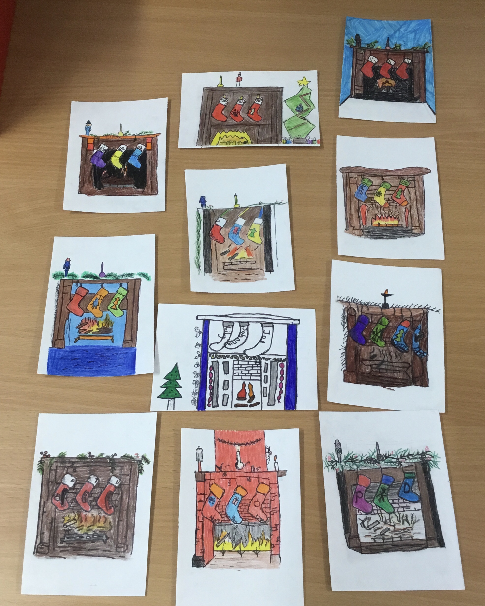 Year 5, learnt how to transfer an image of a fireplace scene onto another piece of paper. They then outlined their transfer and coloured it in. Some children chose to design their own picture. These images will be copied onto card, making a special Christmas card to take home.