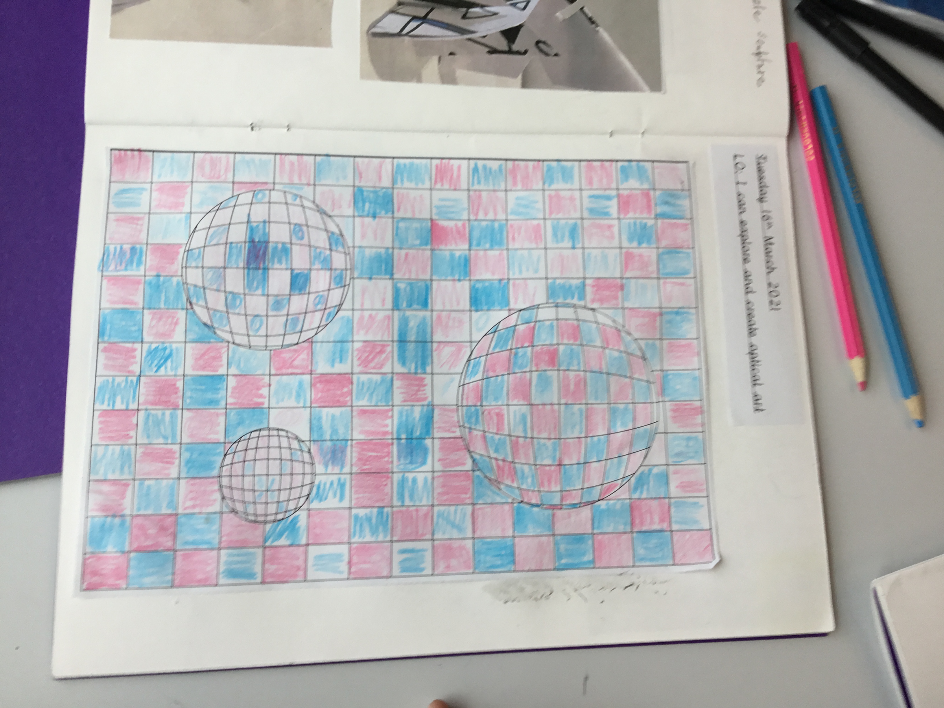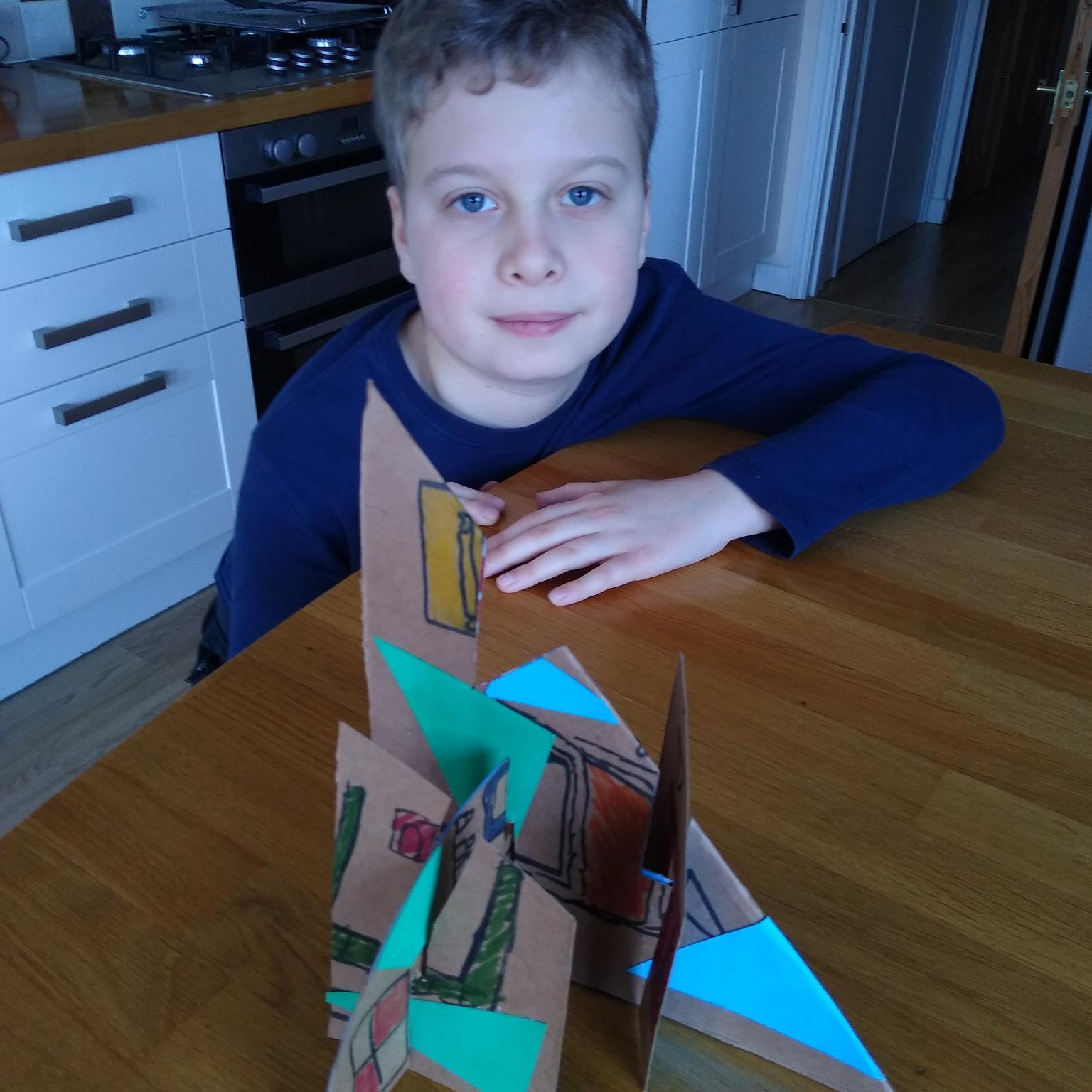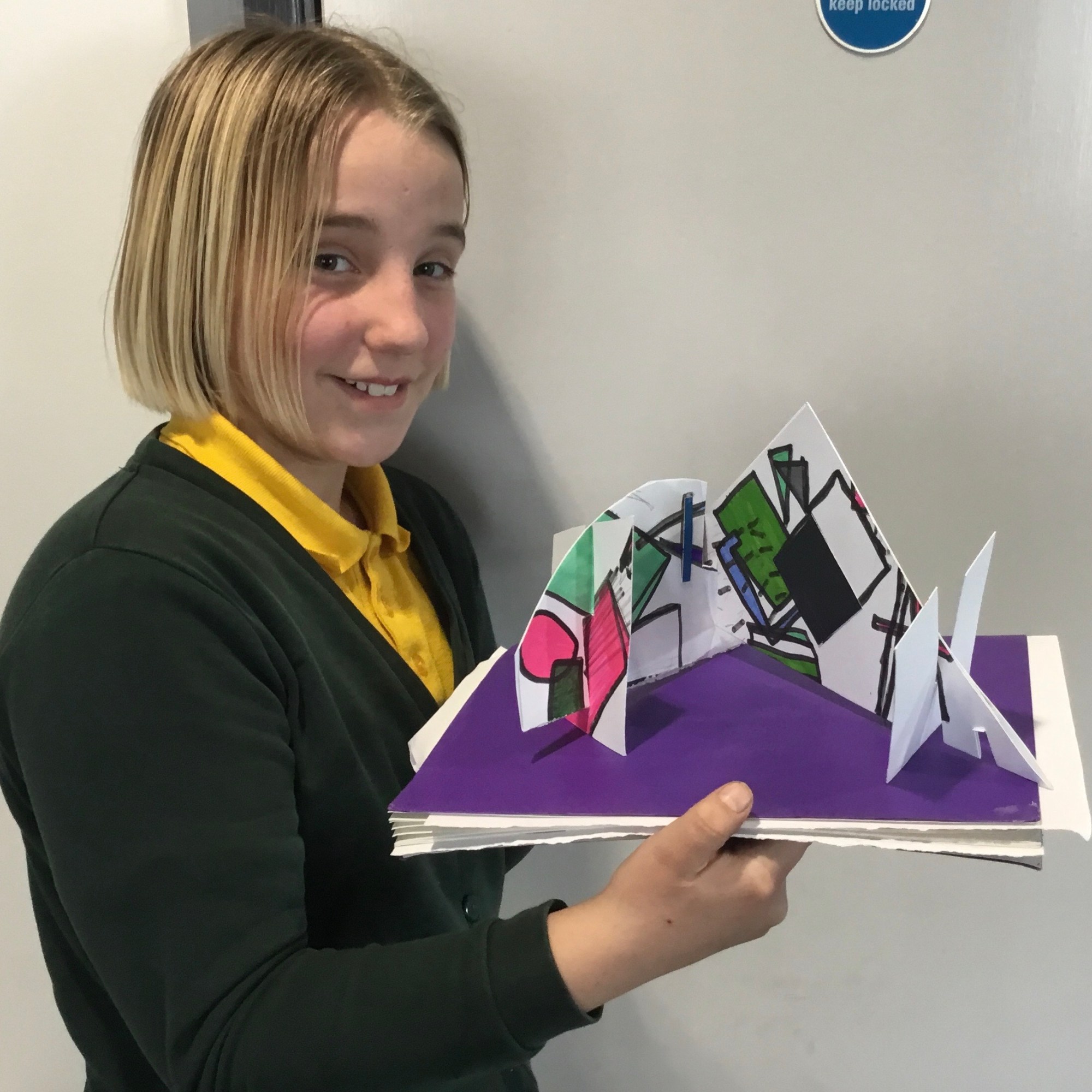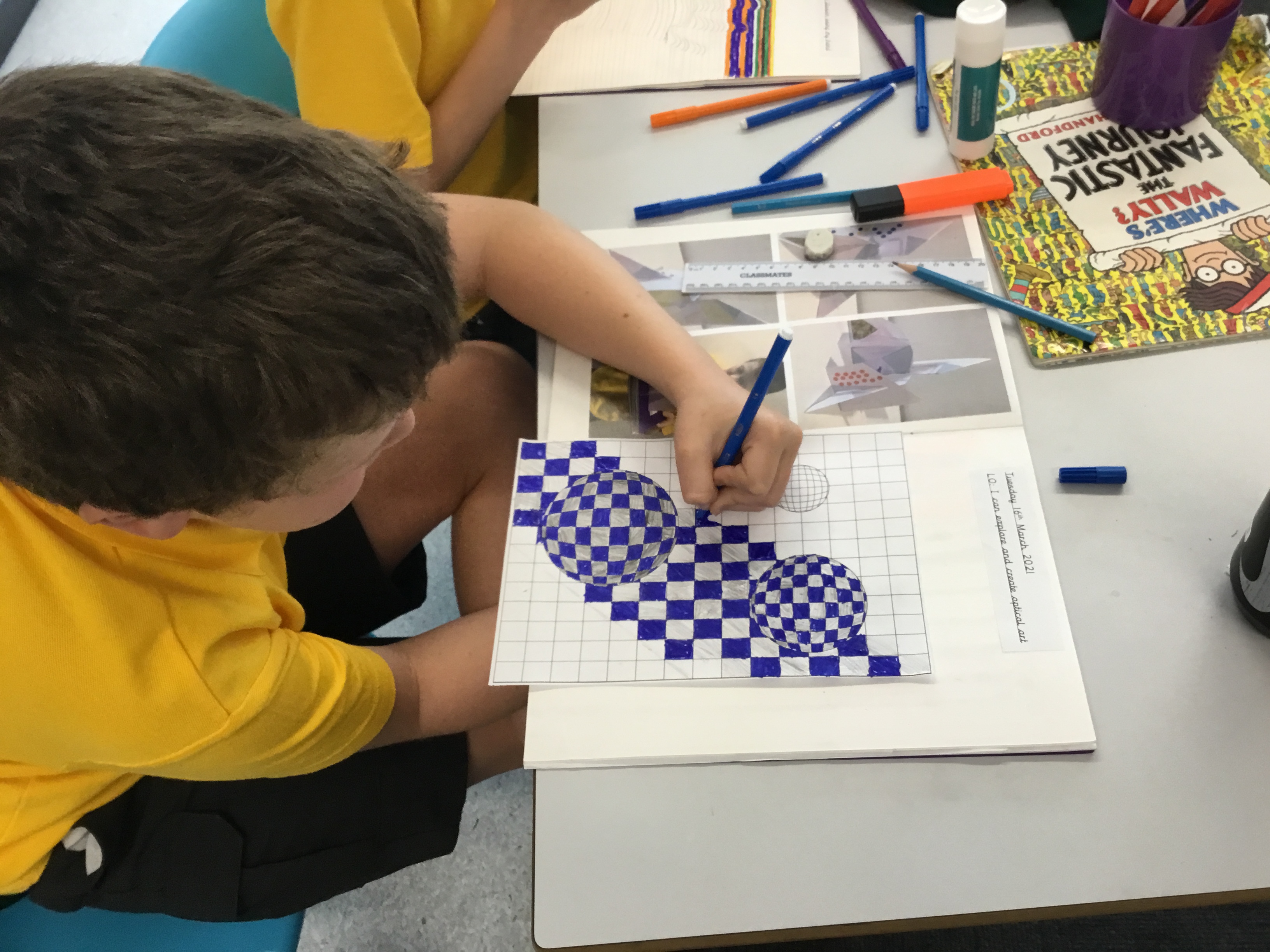 During lockdown, year 5 continued with their work on illusions and how artists use illusion. They explored foreshortening, the impossible trident and the Penrose or impossible triangle, hyperrealism and Scott Mills work. The also took part in the Dazzle project. Some of the children’s work is on exhibition at the Clayden Gallery, Quay Arts alongside the artist Lisa Traxler, who provided the online video so the children could take part. The exhibition will be open for visiting soon. The exhibition is live on line now, running from 27th March to 13th June. More information can be found here: https://www.quayarts.org/event/dazzleanddisrupt/
