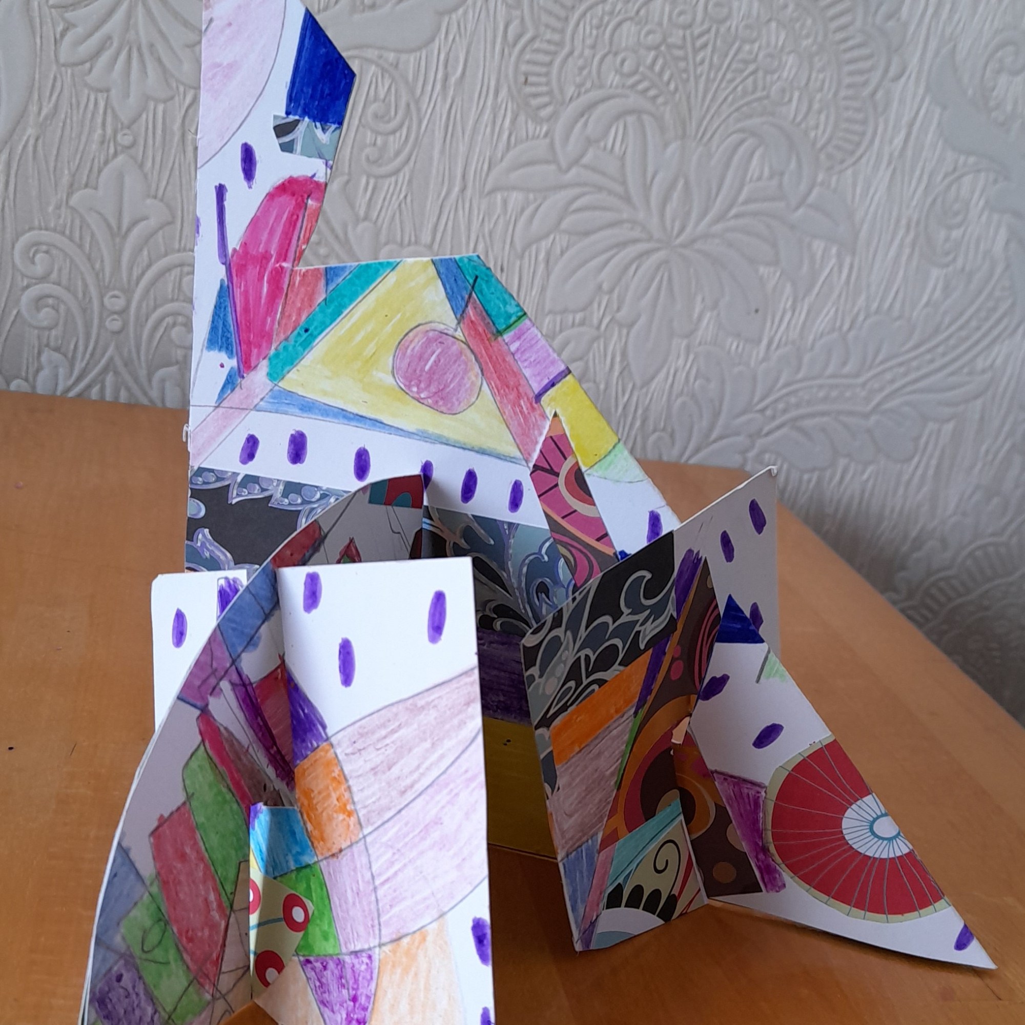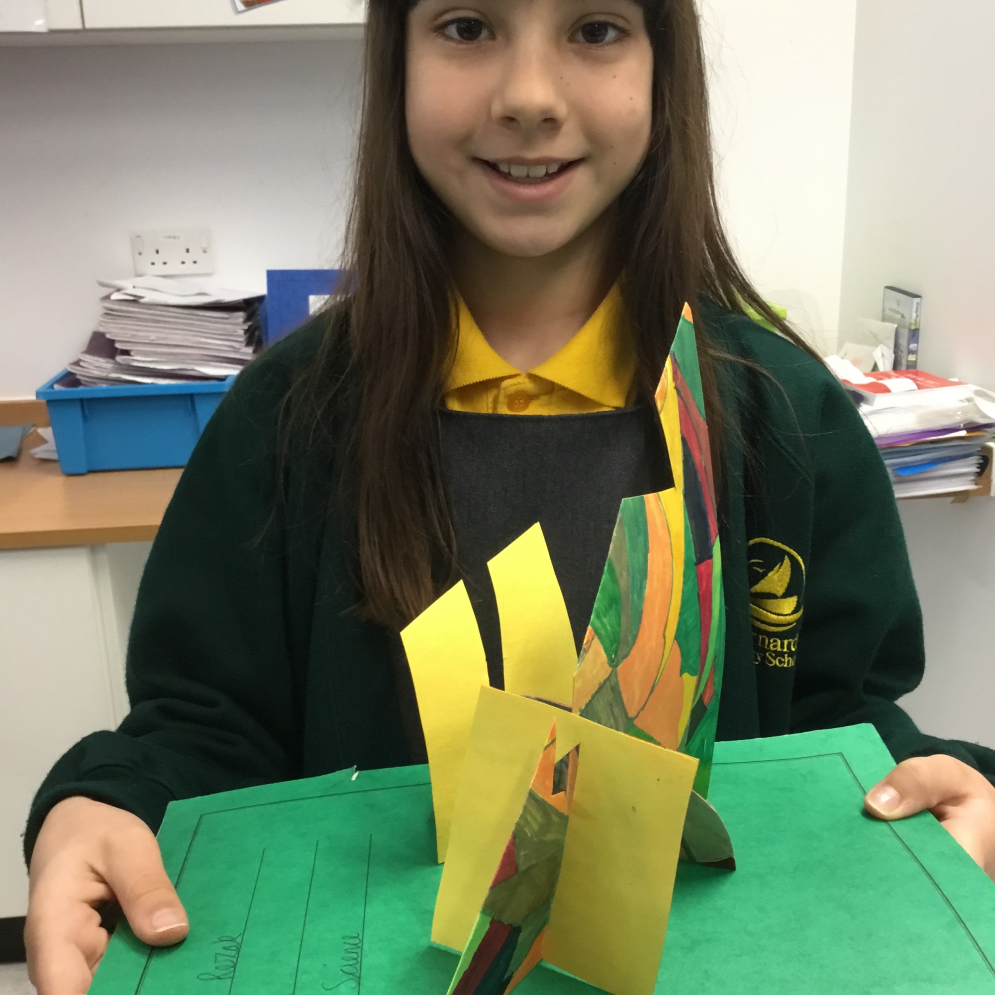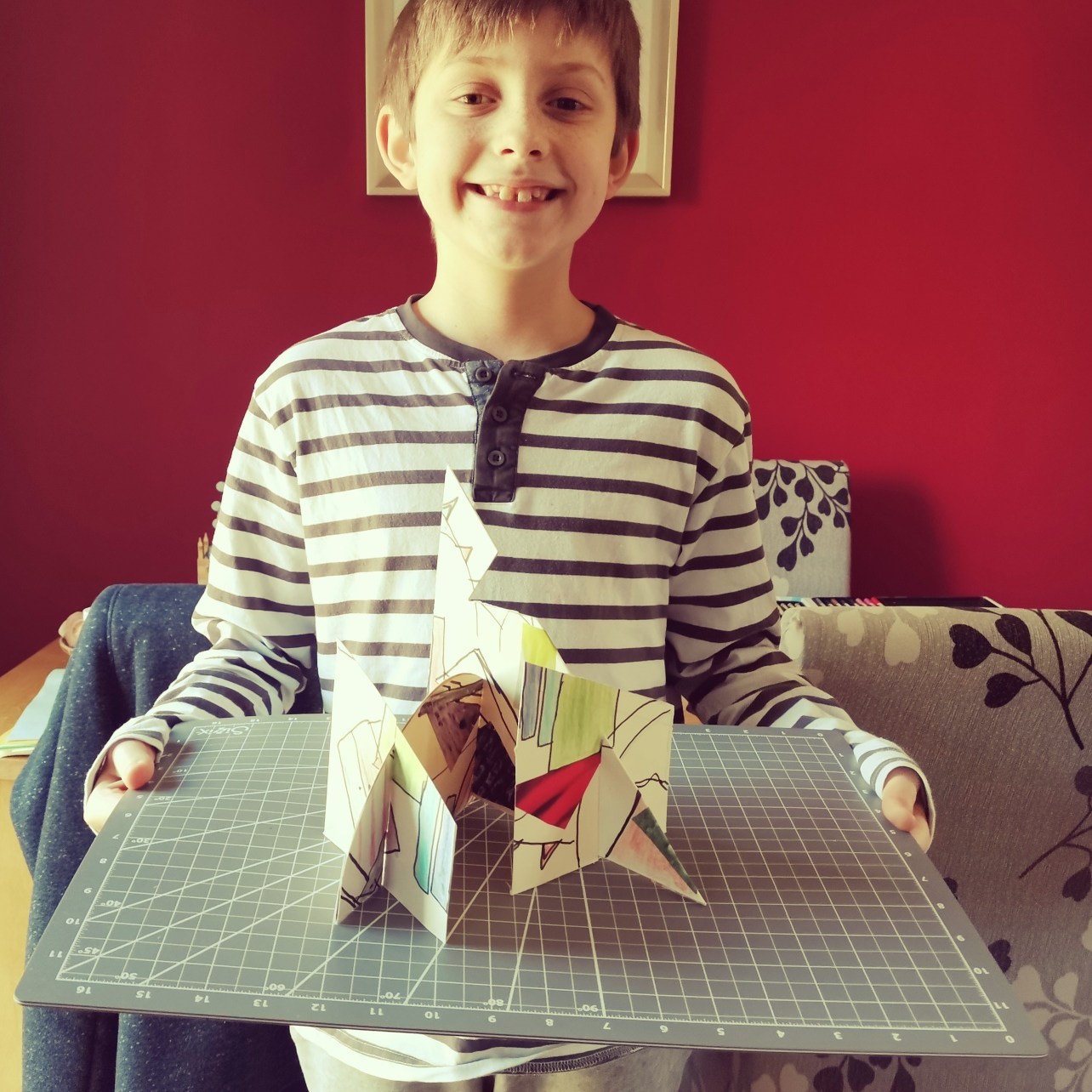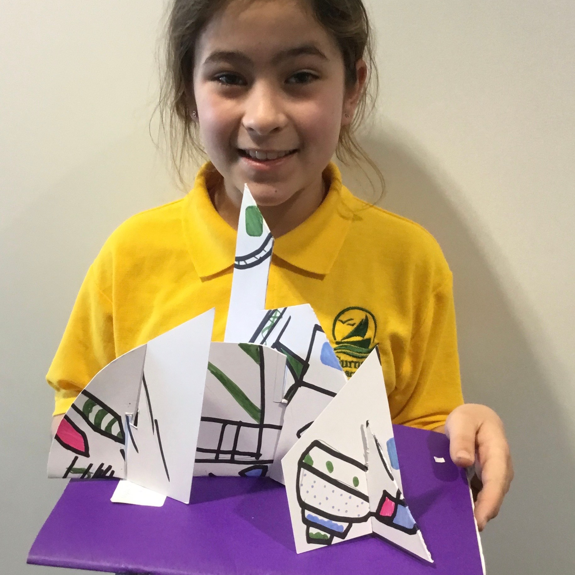 During lockdown, year 5 continued with their work on illusions and how artists use illusion. They explored foreshortening, the impossible trident and the Penrose or impossible triangle, hyperrealism and Scott Mills work. The also took part in the Dazzle project. Some of the children’s work is on exhibition at the Clayden Gallery, Quay Arts alongside the artist Lisa Traxler, who provided the online video so the children could take part. The exhibition will be open for visiting soon. The exhibition is live on line now, running from 27th March to 13th June. More information can be found here: https://www.quayarts.org/event/dazzleanddisrupt/