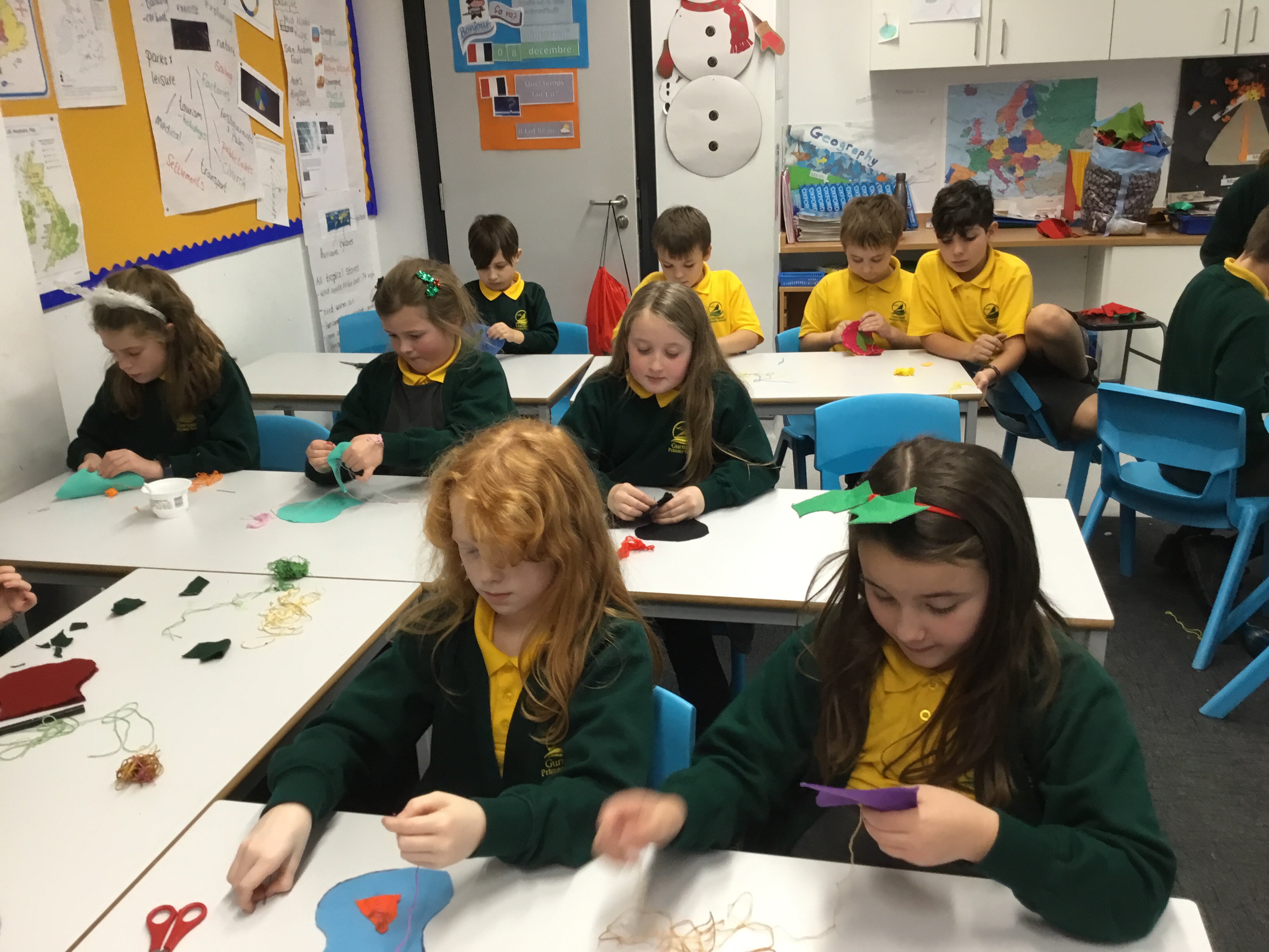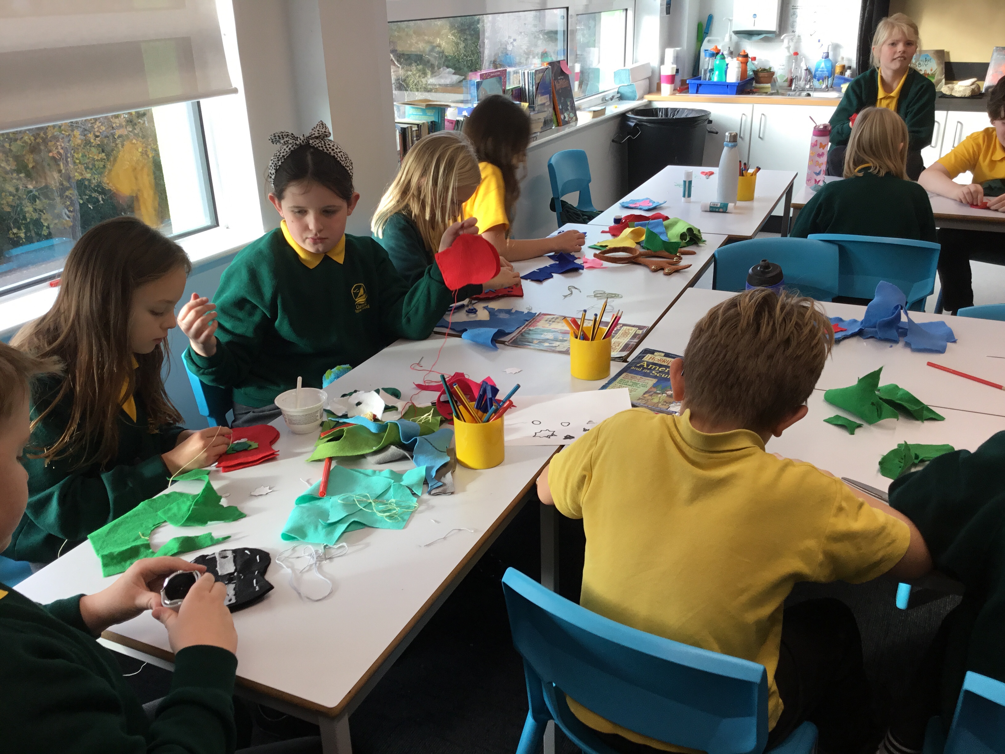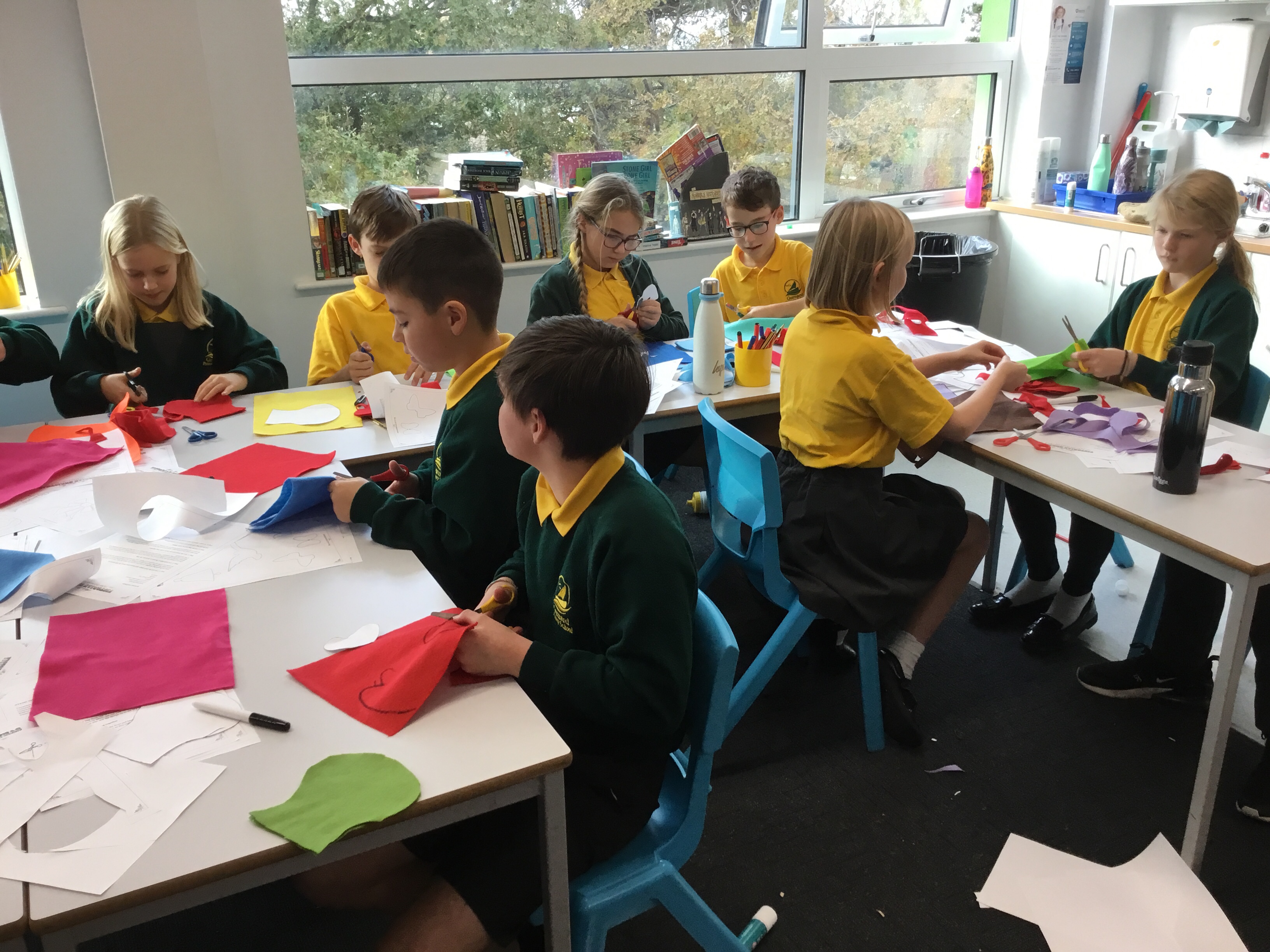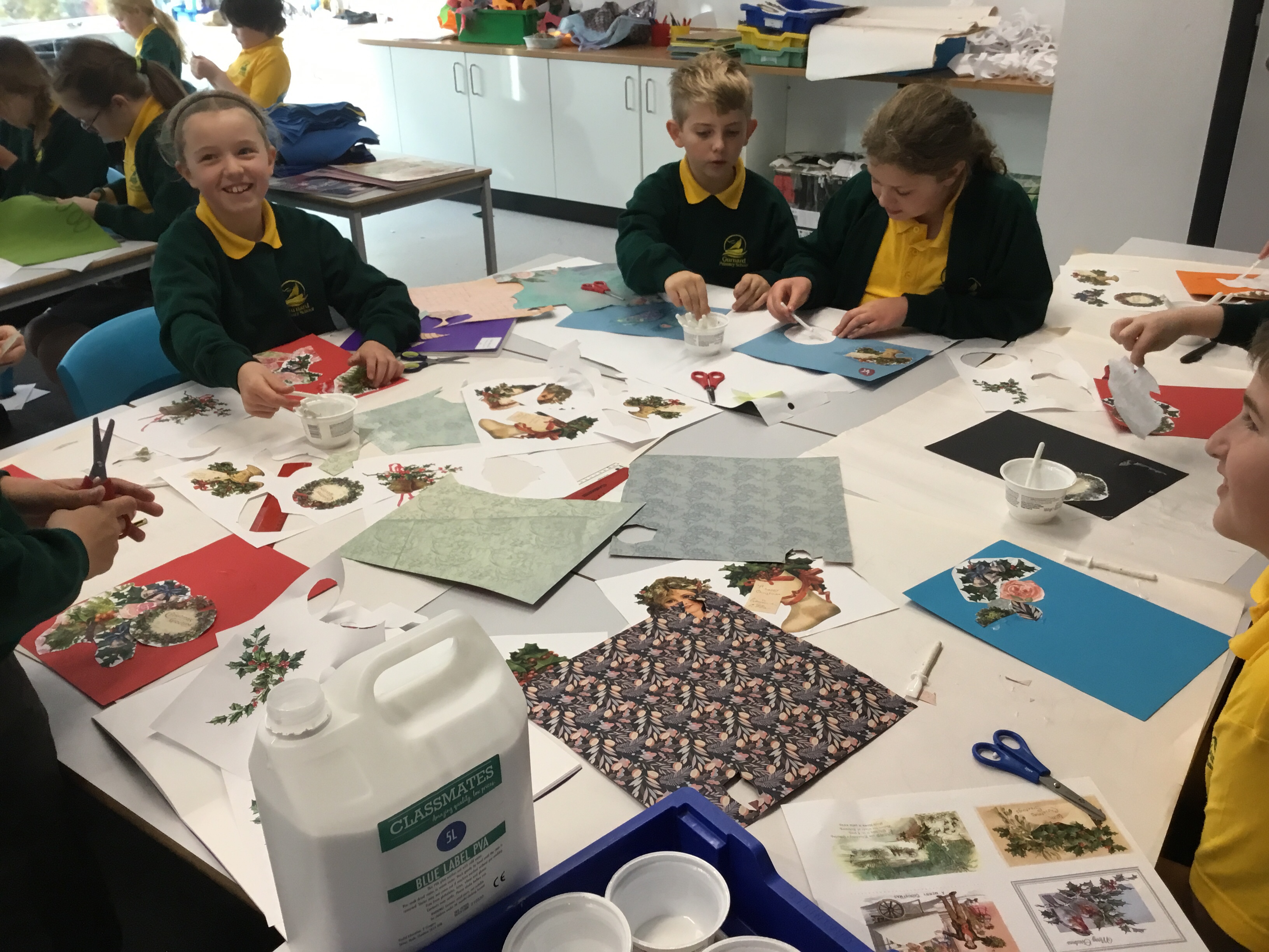 Year 5 started their Victorian gift creations. Some children started choosing card and designs to decoupage a design to make the cover of a scrapbook. The other group of children, cut out gift bag templates. they then used the template to cut out their felt gift bag. They also chose a pattern as decoration and cut that out too.