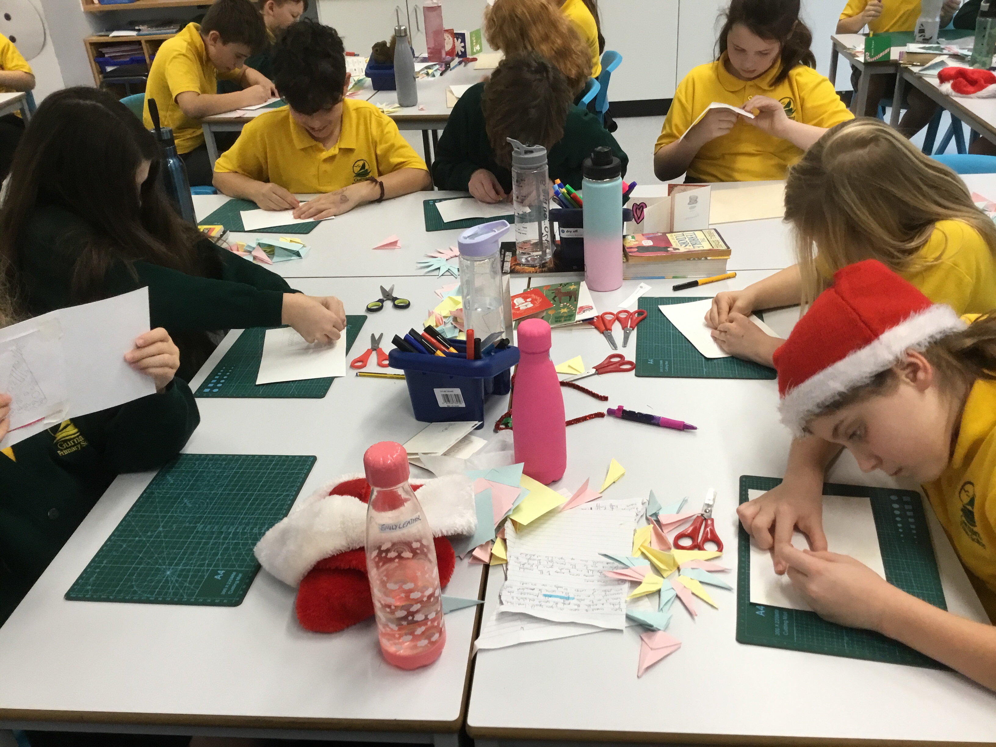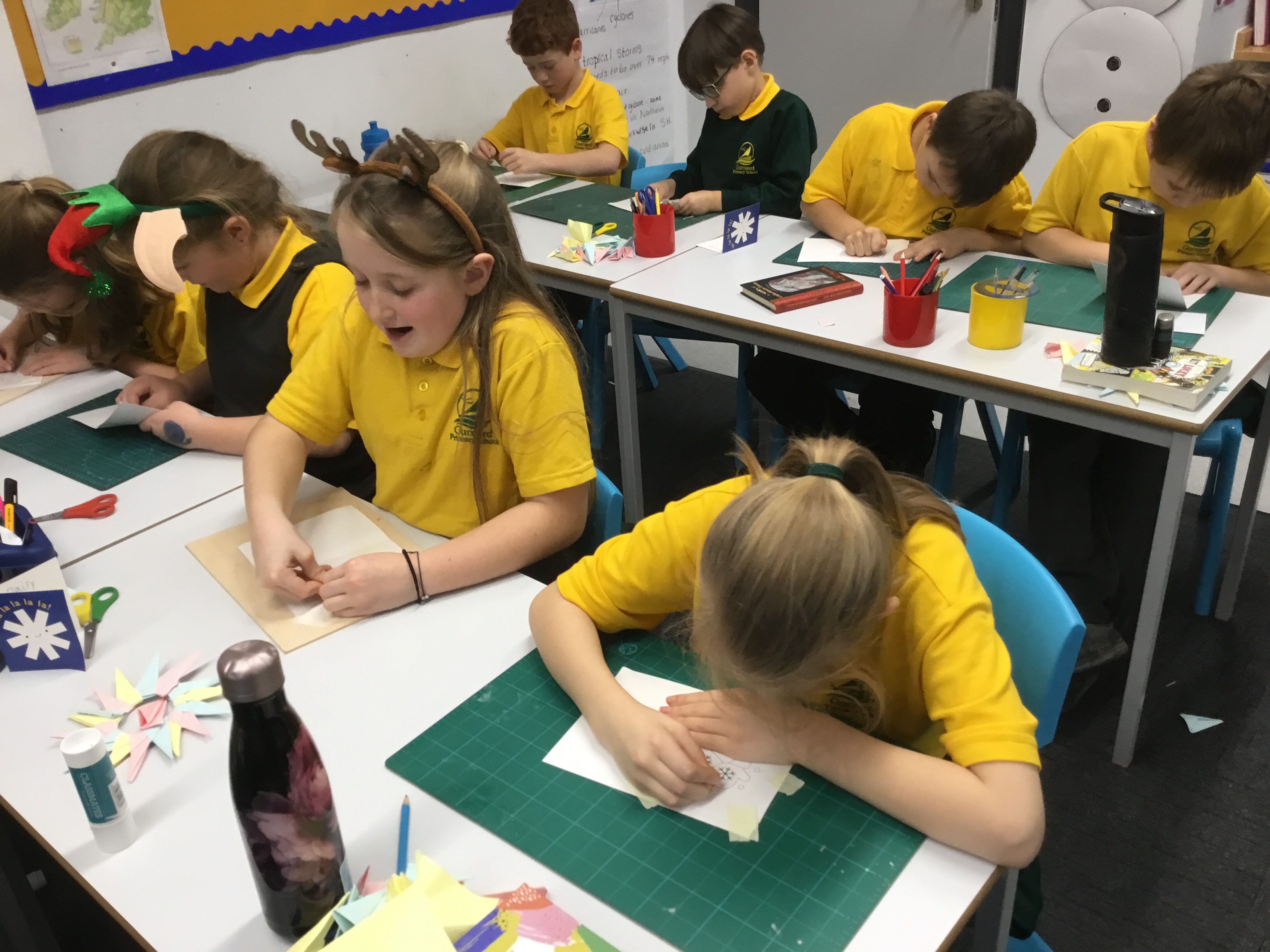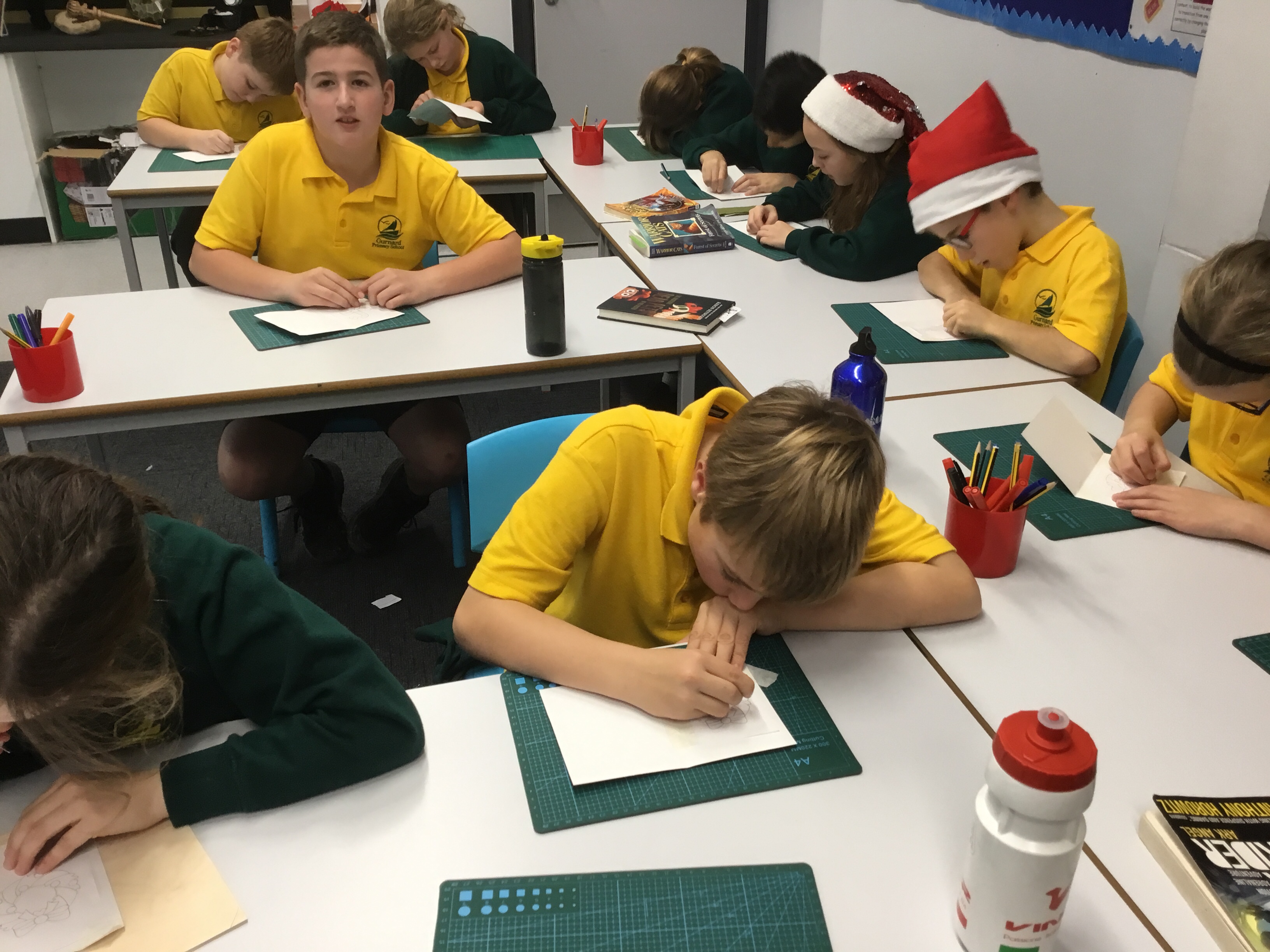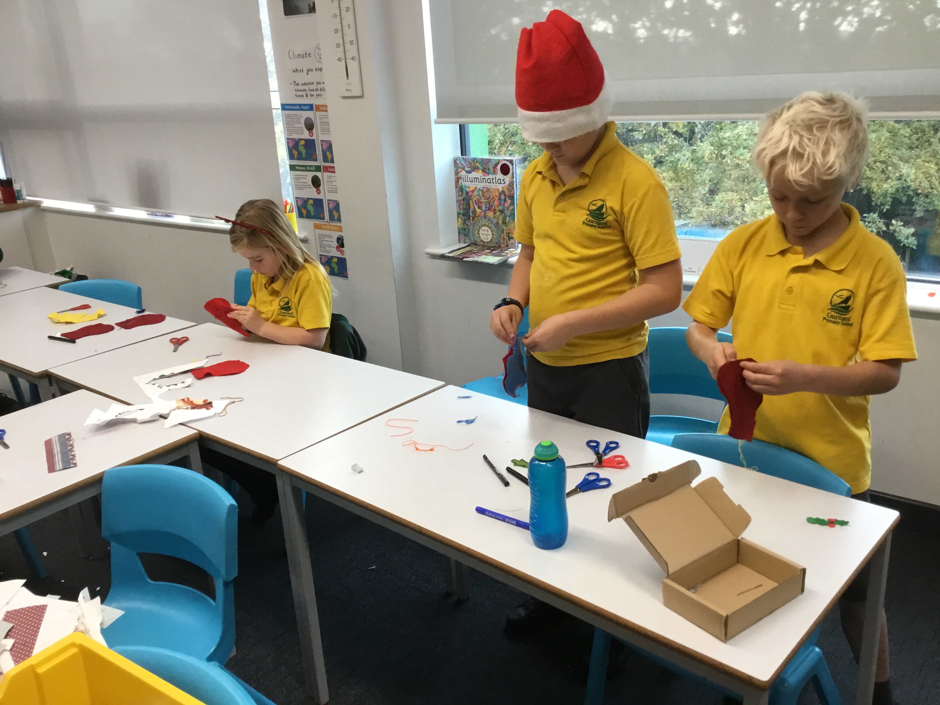 Year 5 started their Victorian gift creations. Some children started choosing card and designs to decoupage a design to make the cover of a scrapbook. The other group of children, cut out gift bag templates. they then used the template to cut out their felt gift bag. They also chose a pattern as decoration and cut that out too.
