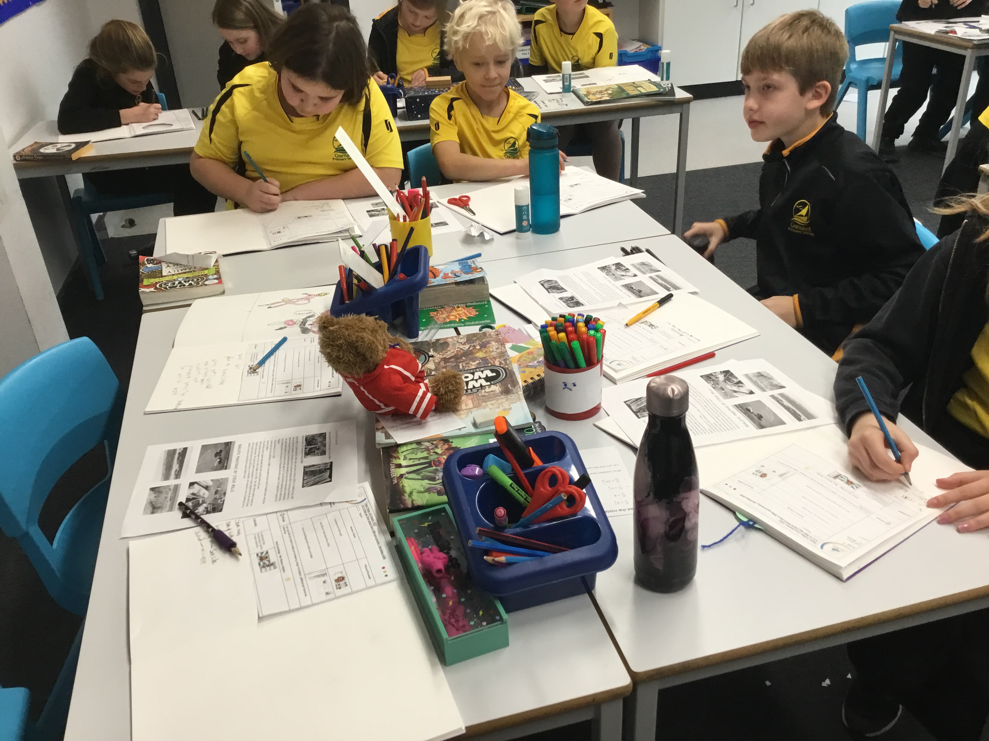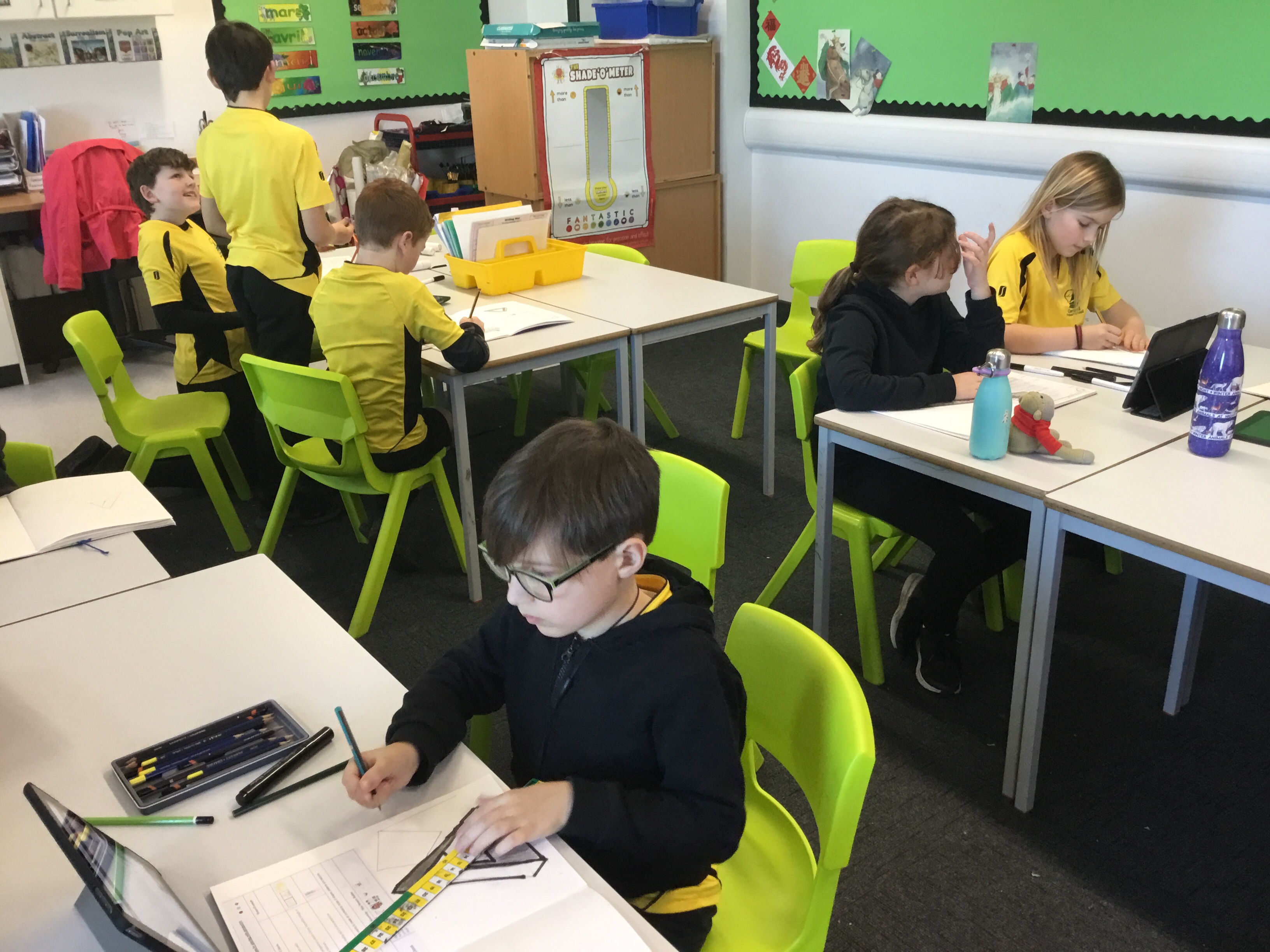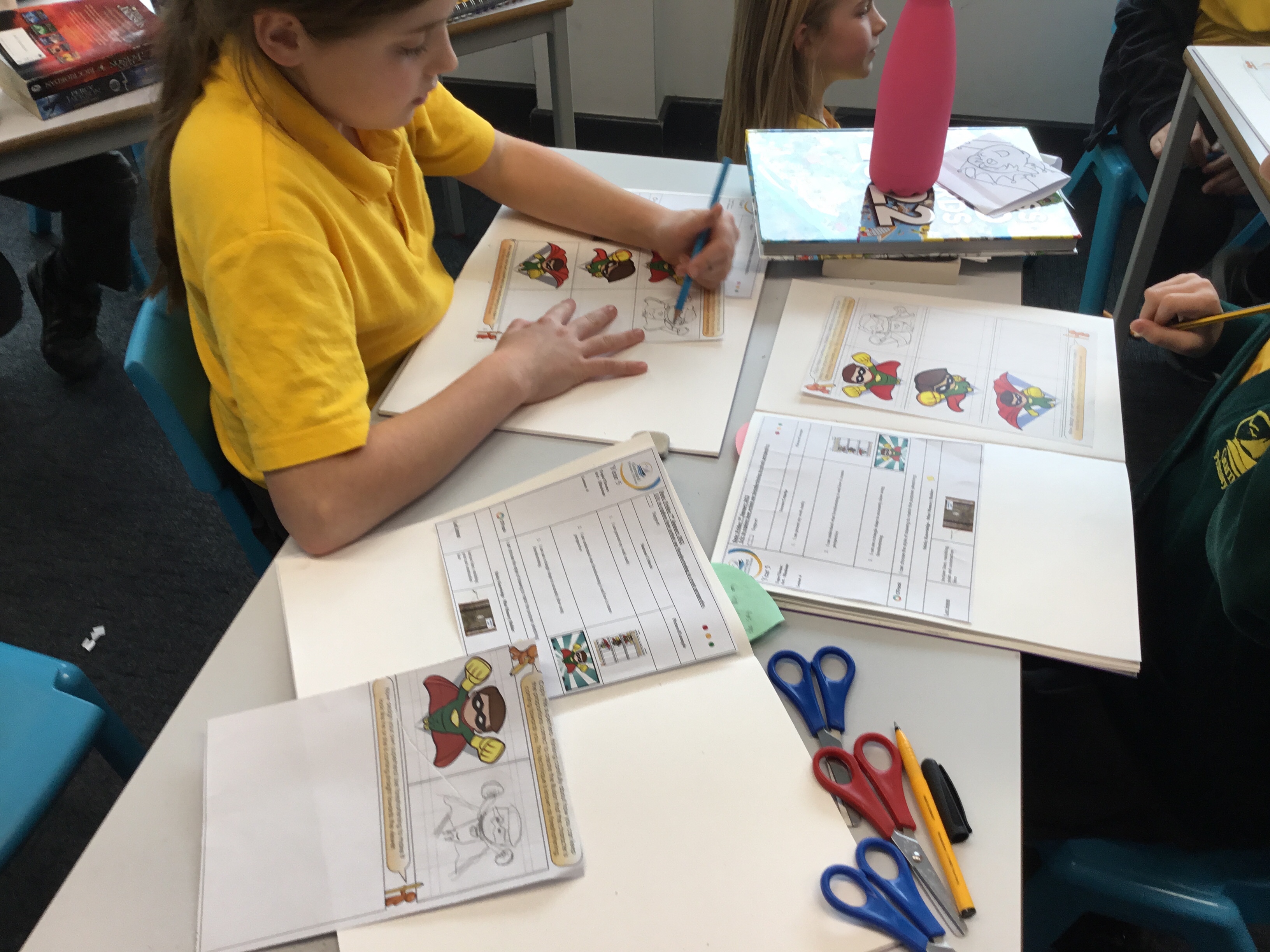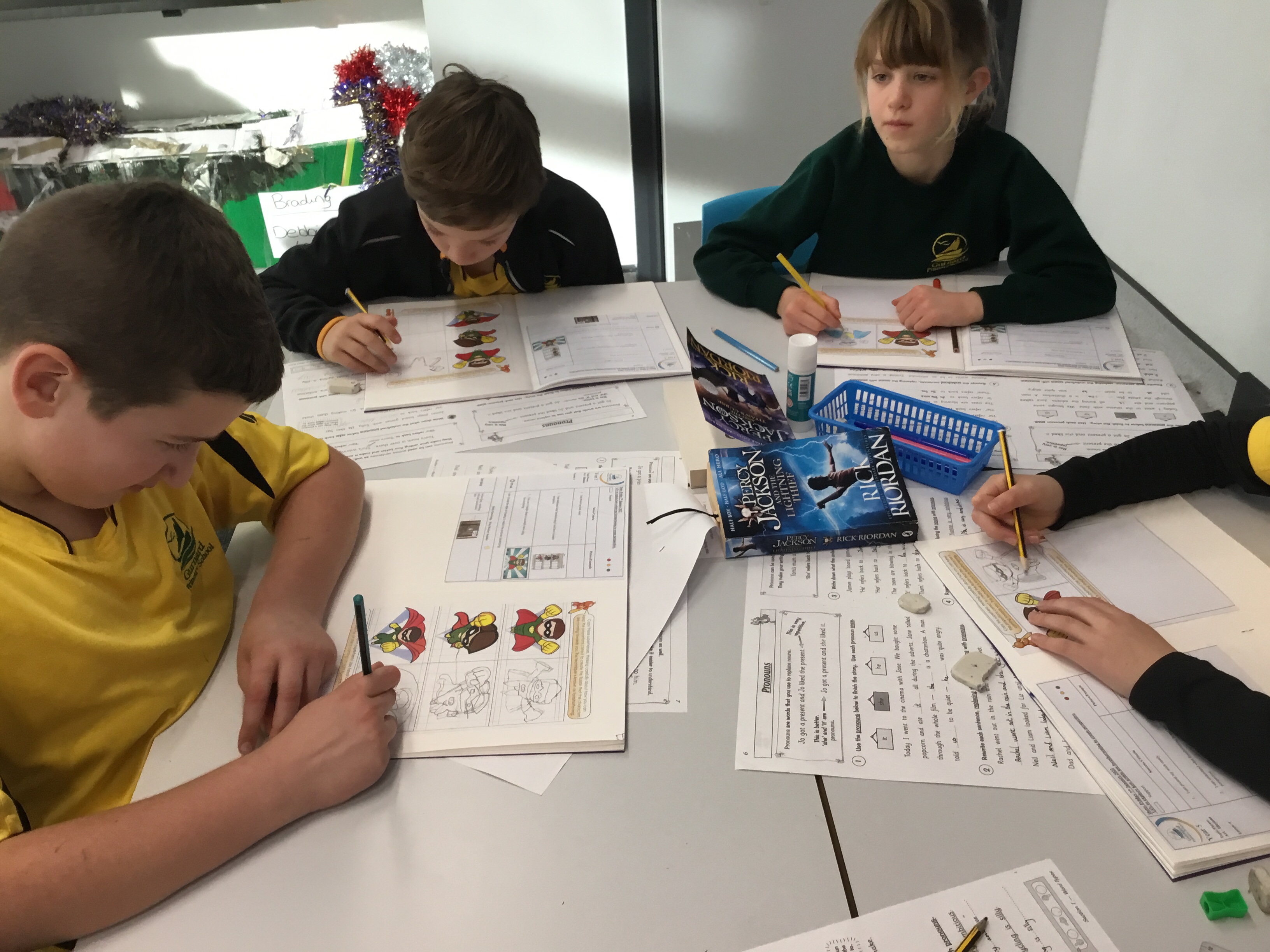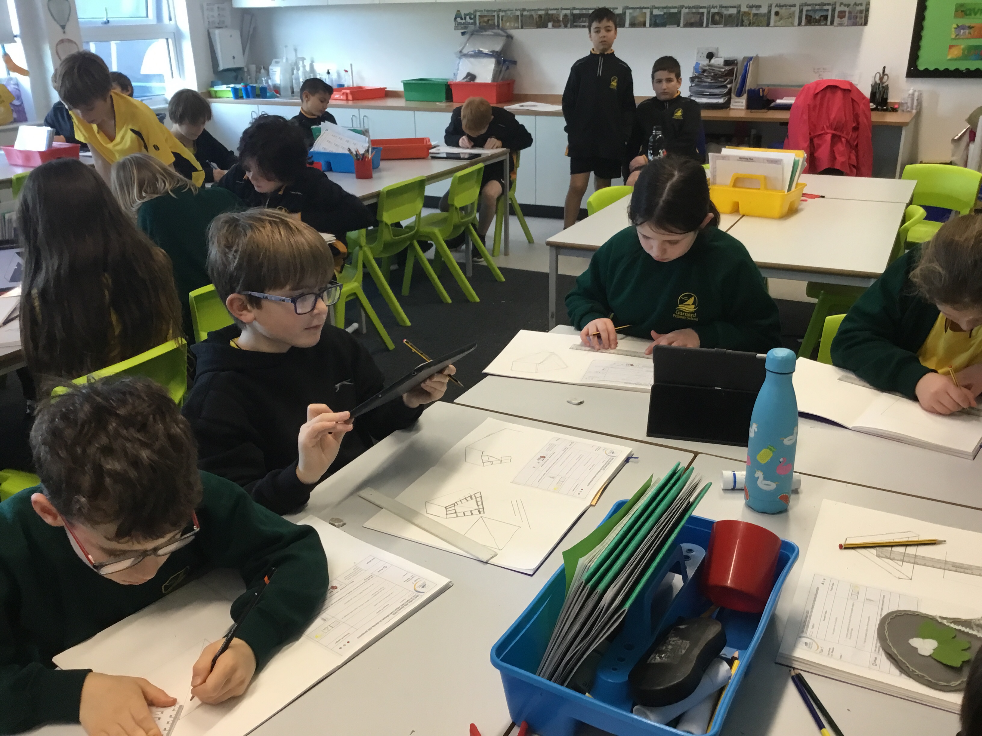 Year 5 started their Victorian gift creations. Some children started choosing card and designs to decoupage a design to make the cover of a scrapbook. The other group of children, cut out gift bag templates. they then used the template to cut out their felt gift bag. They also chose a pattern as decoration and cut that out too.