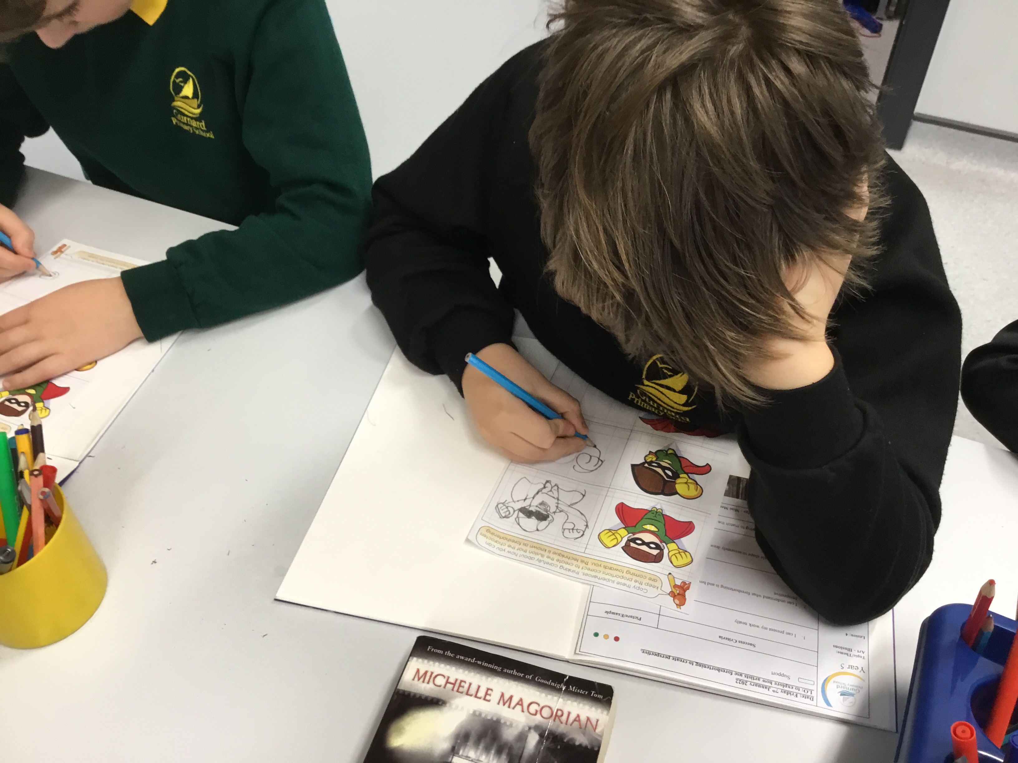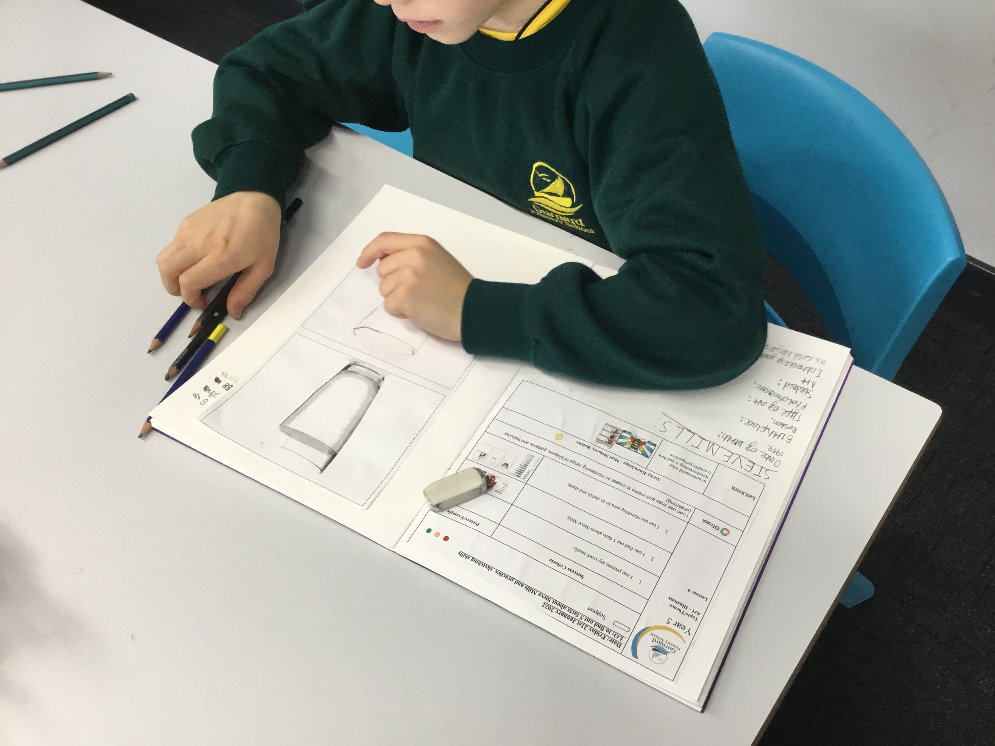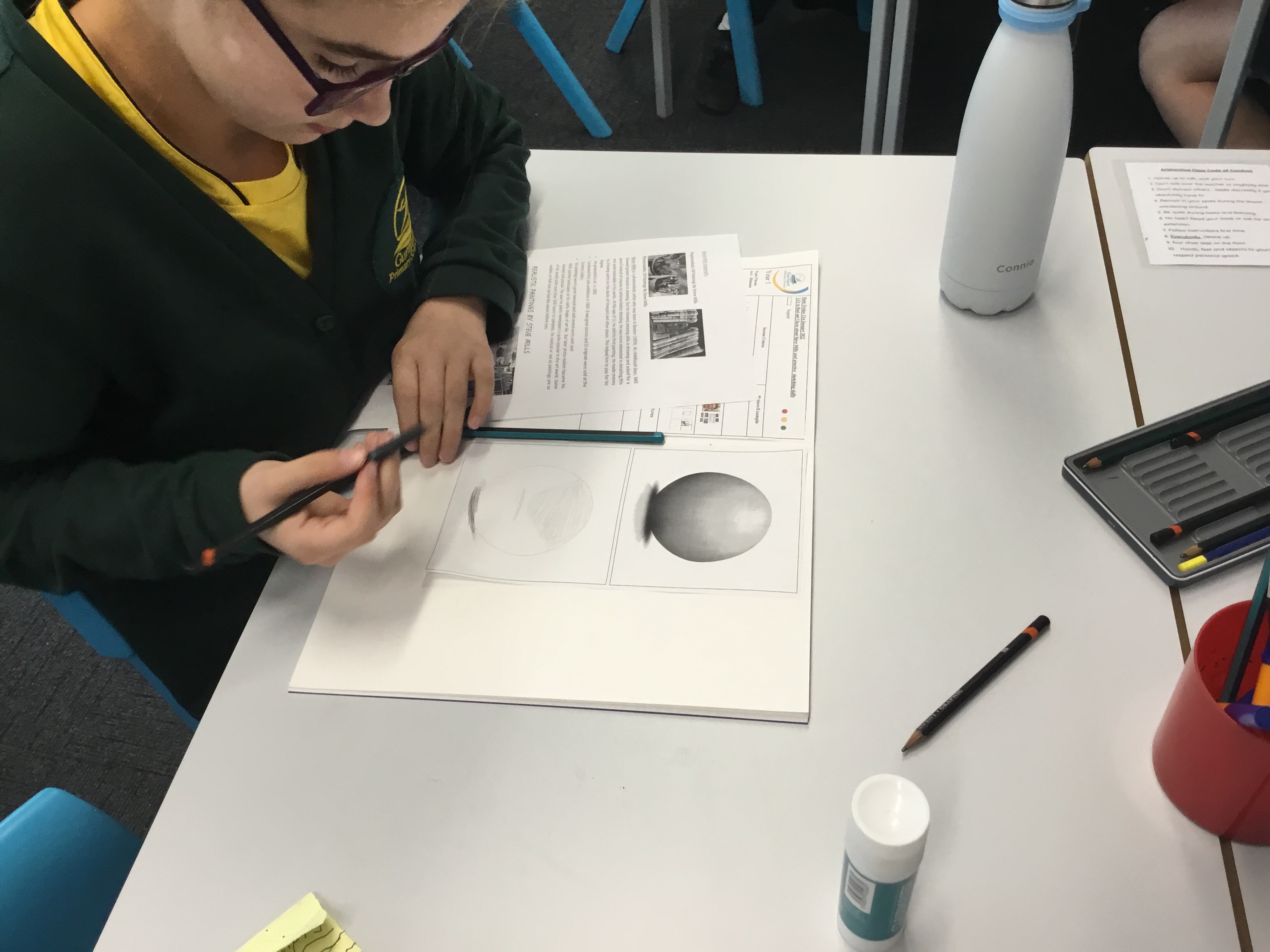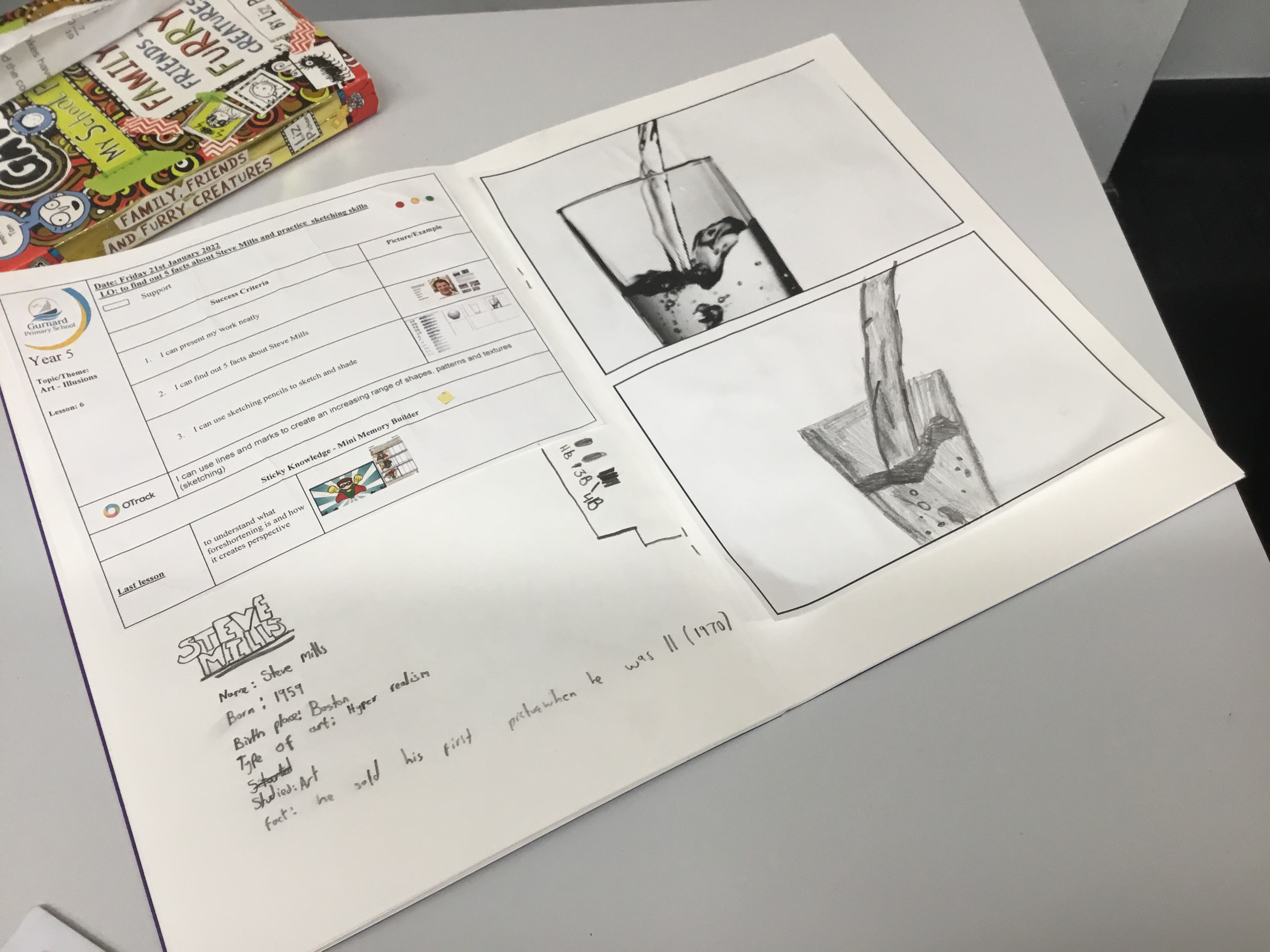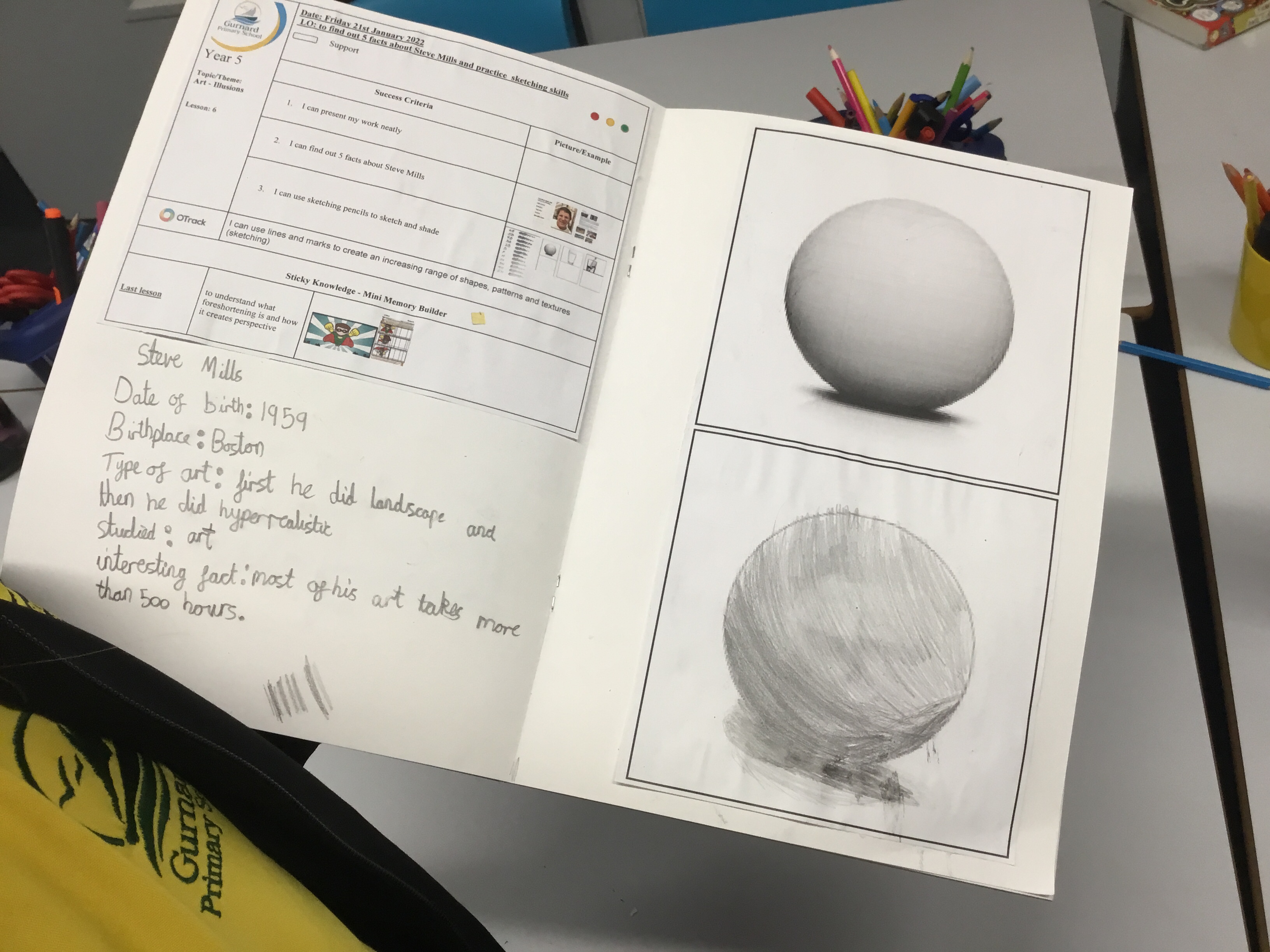 Year 5 looked a photorealism, in particular the art of Steve Mills. They found out 5 facts about him, including that he sold his first painting at the age of 11. They found it interesting to see that paintingsd could look so realistic – were they photographs or were they paintings? They then had a go at practising their sketching and shading skills.
